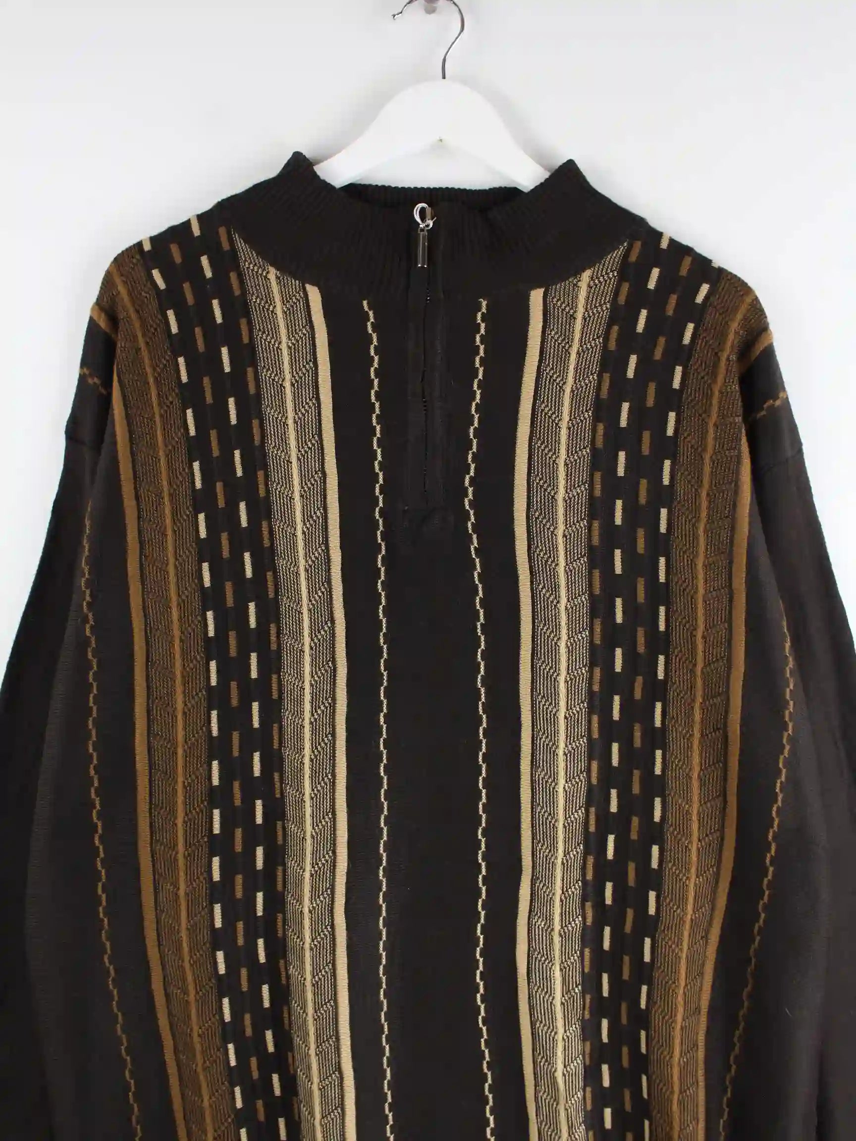 Vintage 3D Pattern Half Zip Pullover Braun 3XL