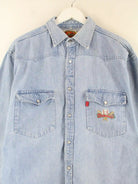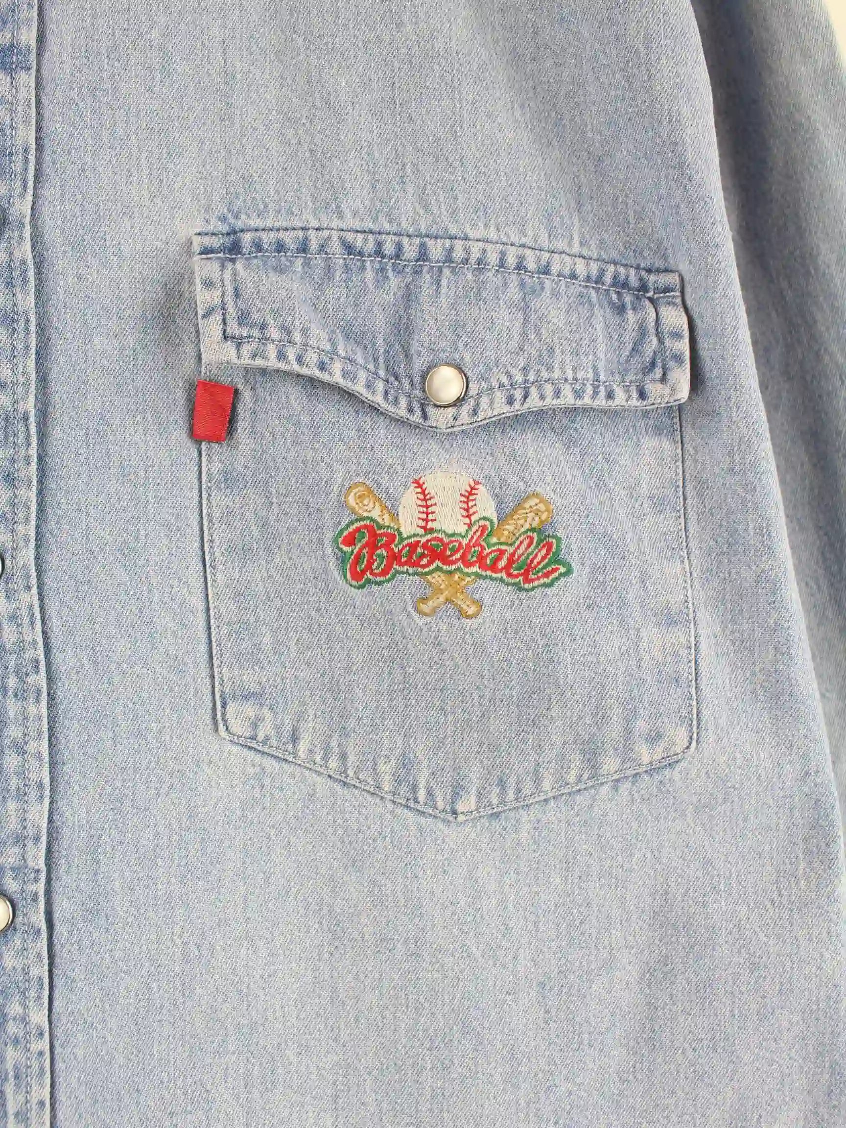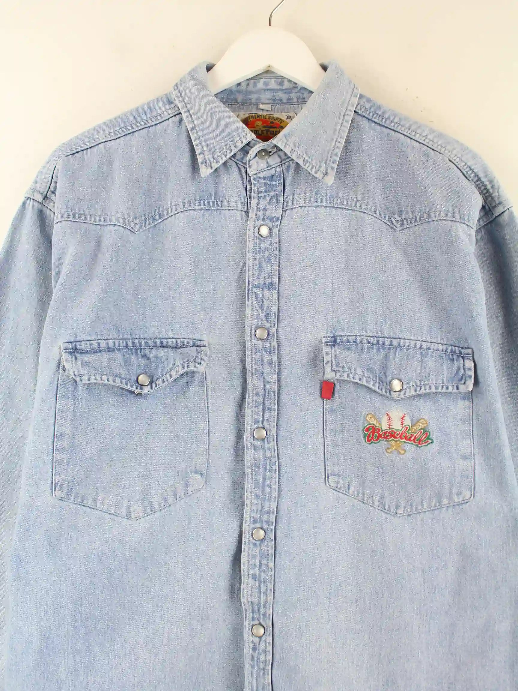 Vintage 80s Baseball Embroidered Jeans Hemd Blau XL
