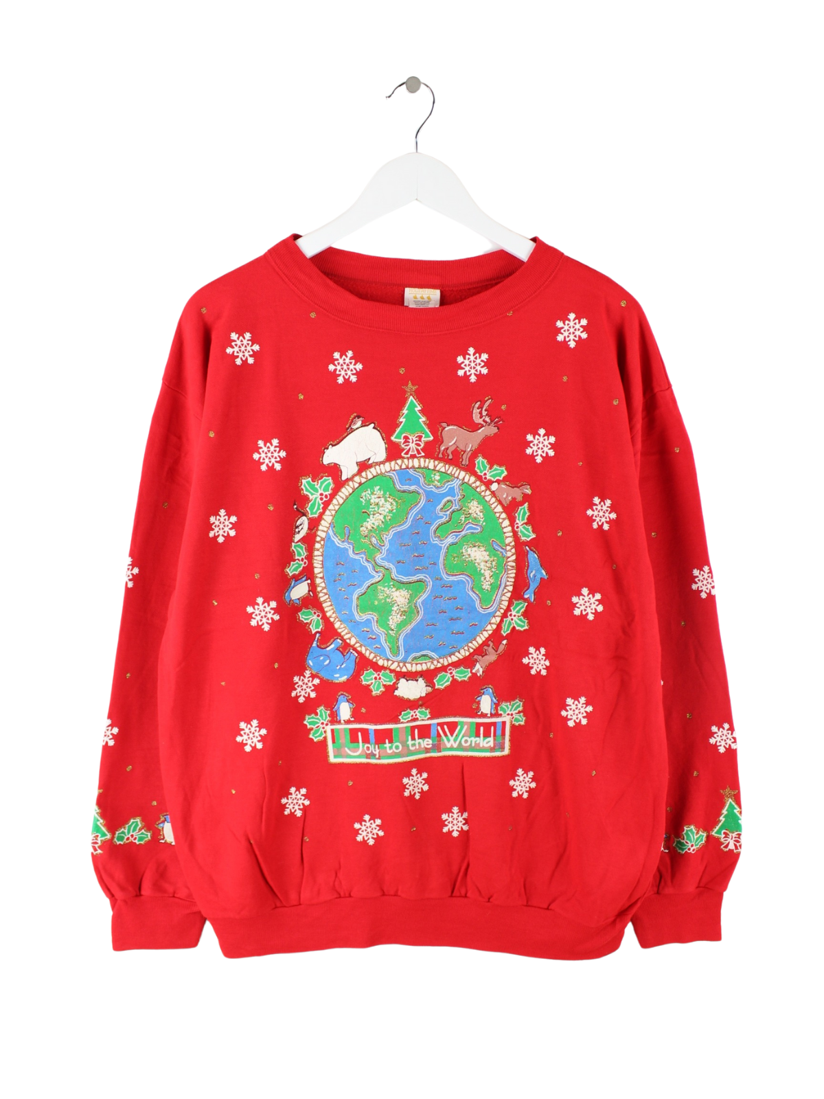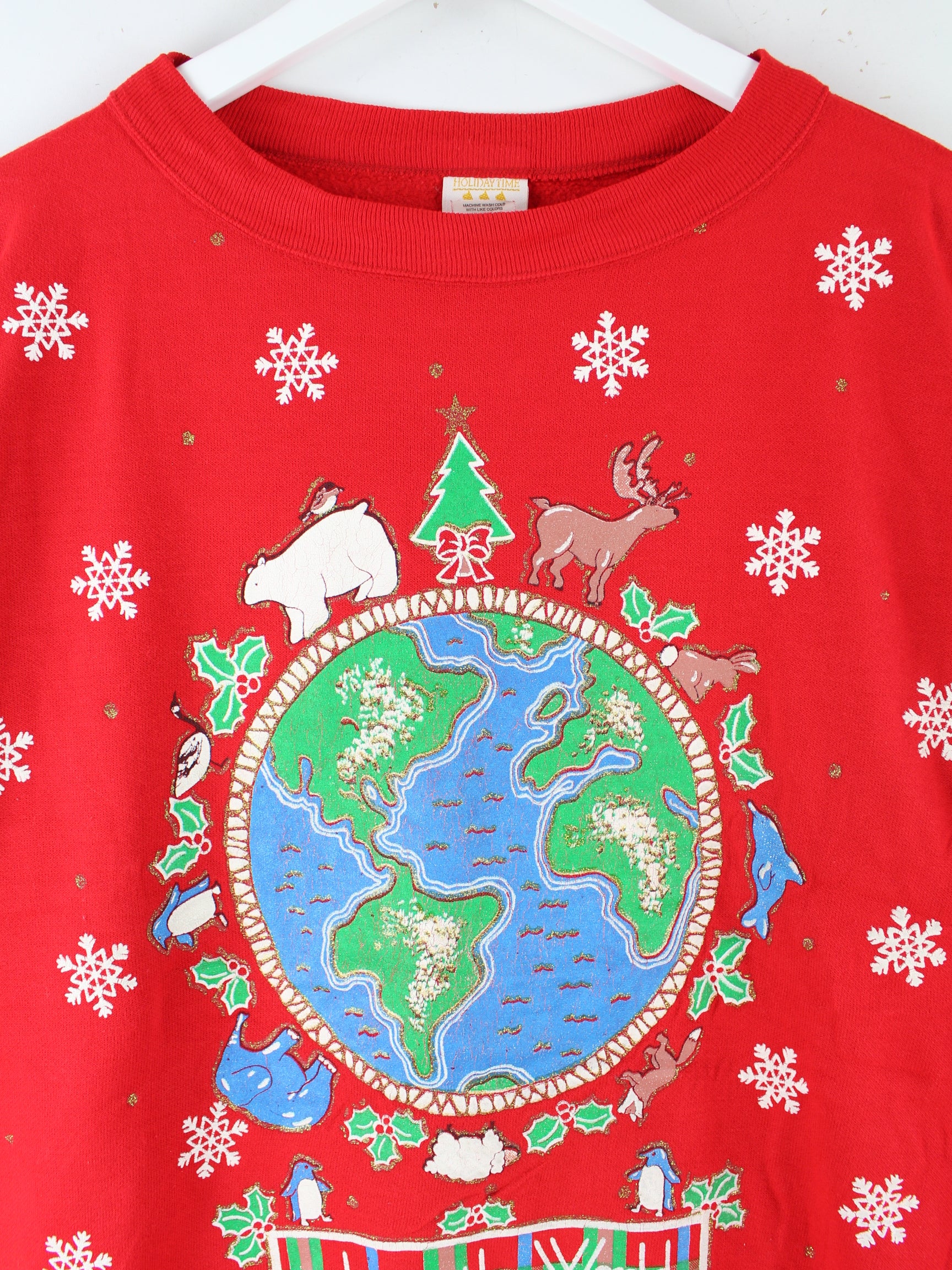 Vintage Sweater in Größe L aus den 80'ern. Er ist aus einer Baumwollmischung und in Rot zu bekommen. Mit seltenem Christmas Print.
