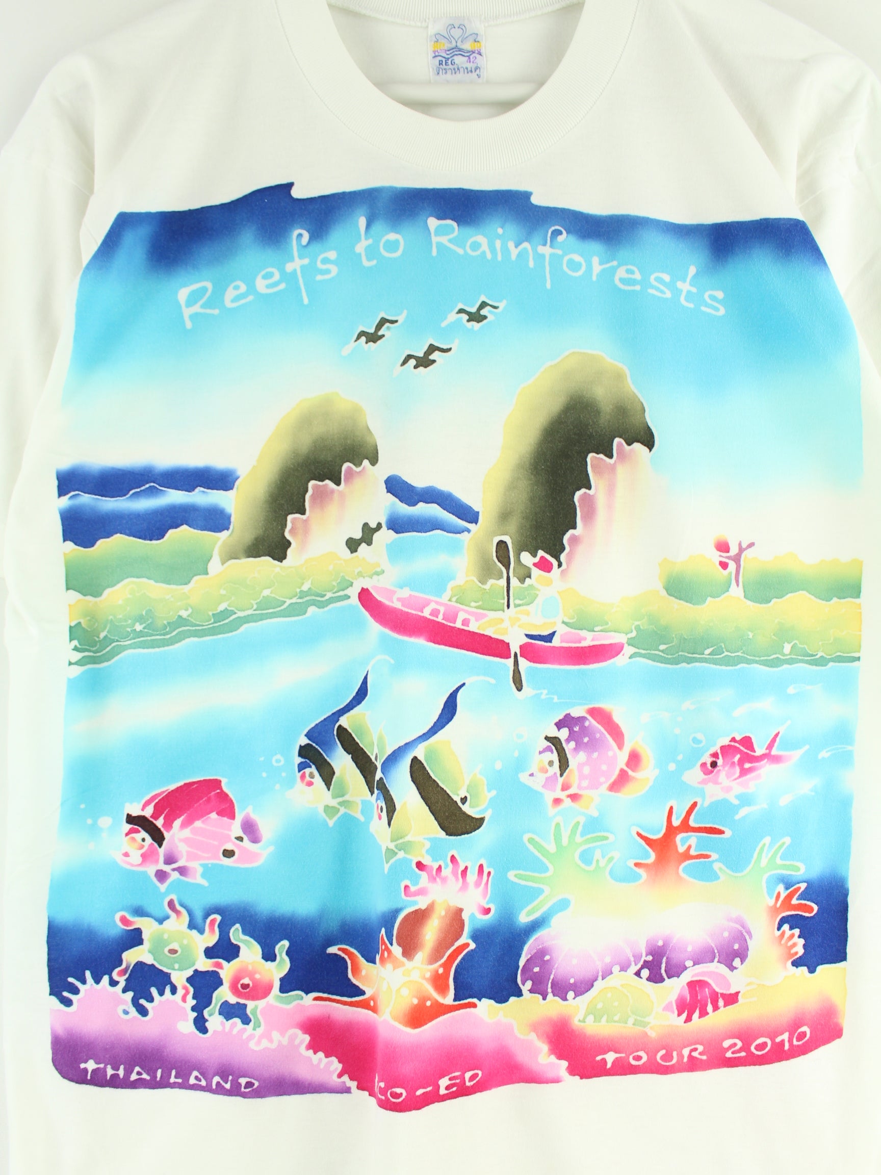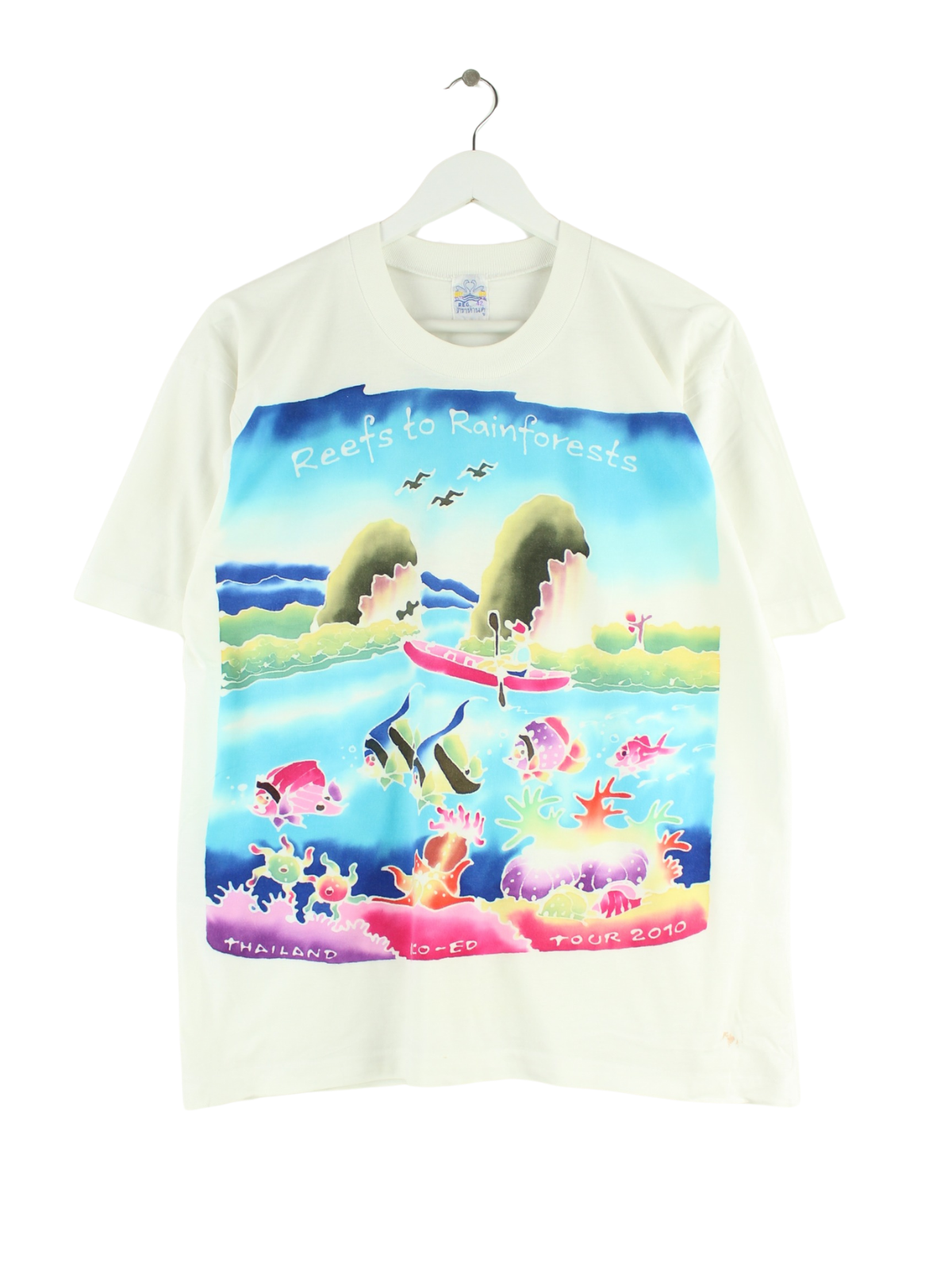 Vintage 80s Rainforest Print Single Stitched T-Shirt White M