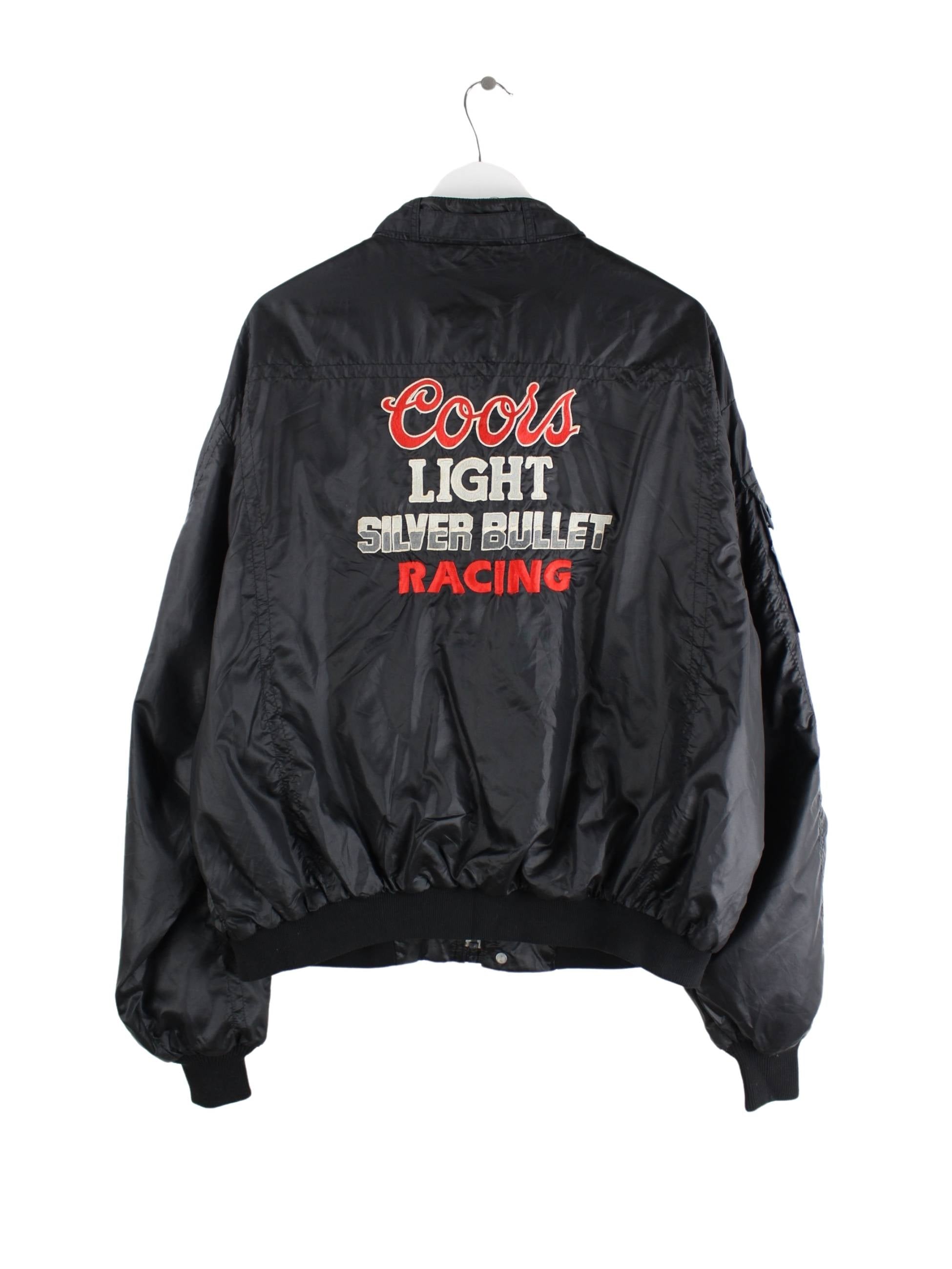 Vintage 80s Silver Bullet Racing Embroidered Bomber Jacke Schwarz XXL
