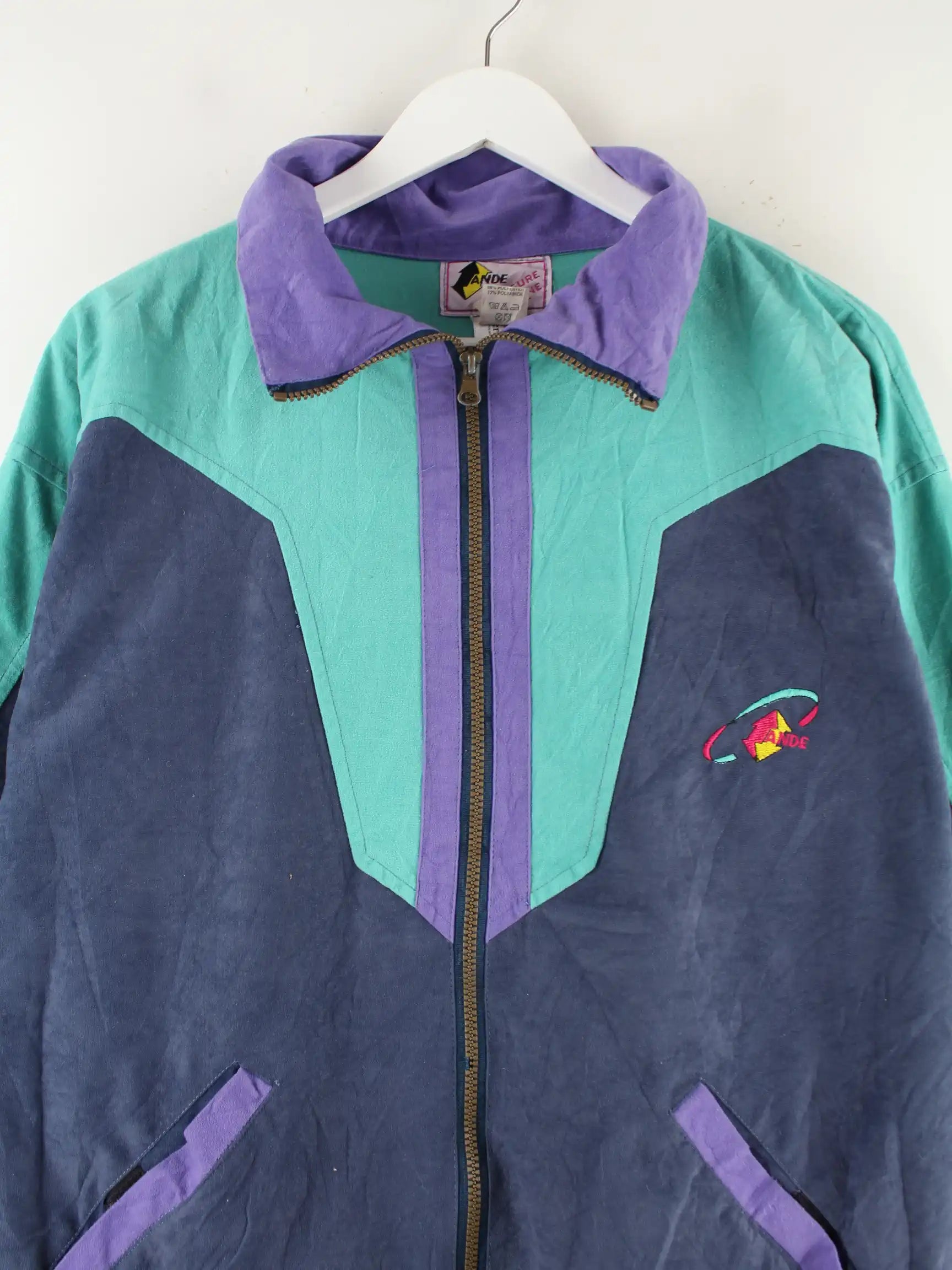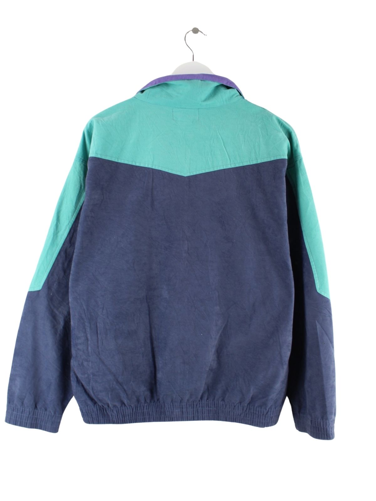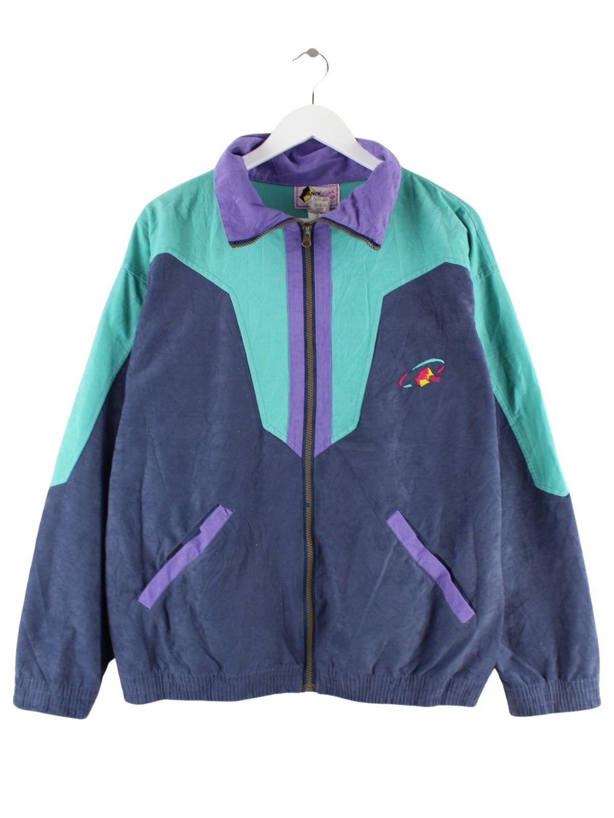 Vintage Trainingsjacke in Größe L aus den 80'ern. Sie ist aus Synthetik angefertigt und in Blau in Stock.