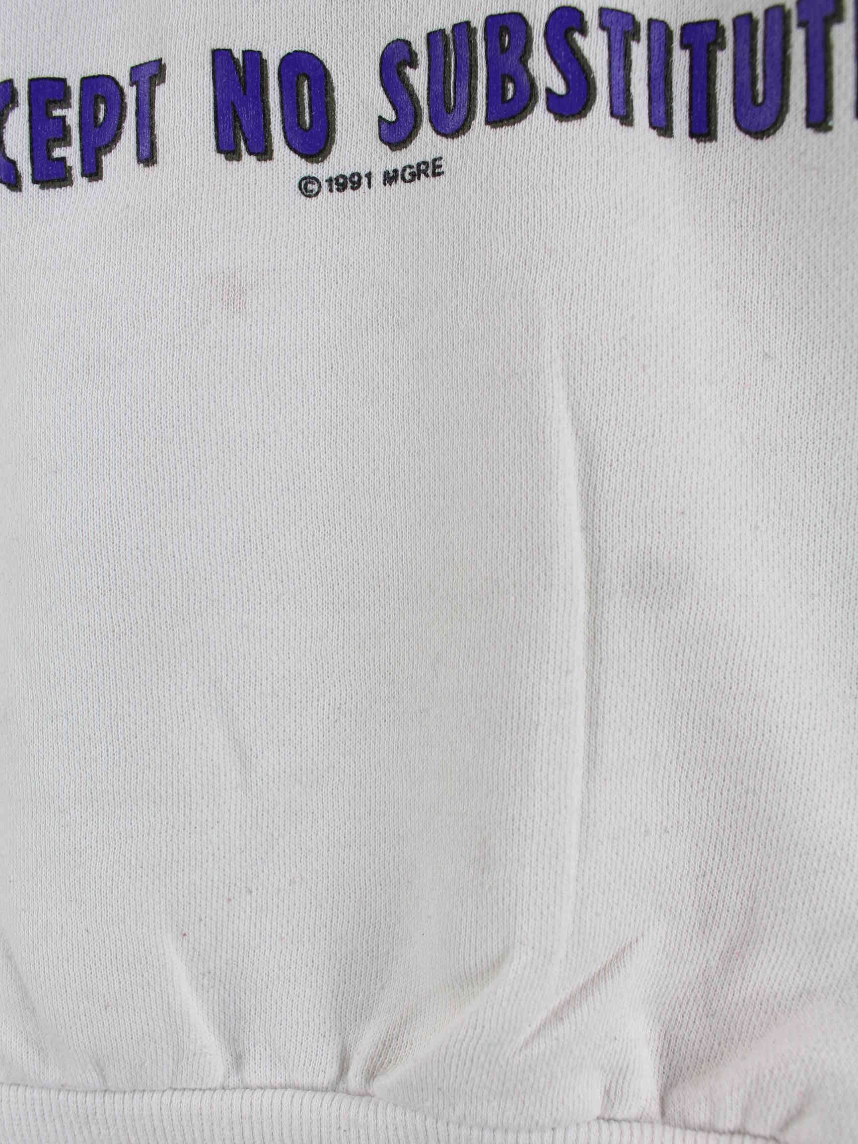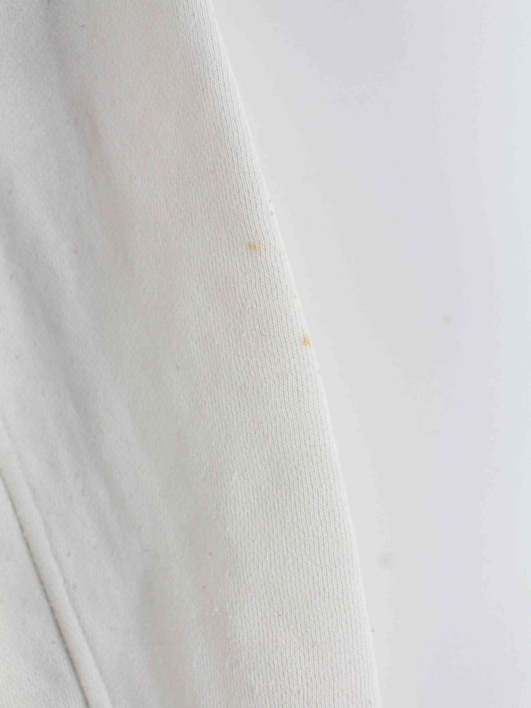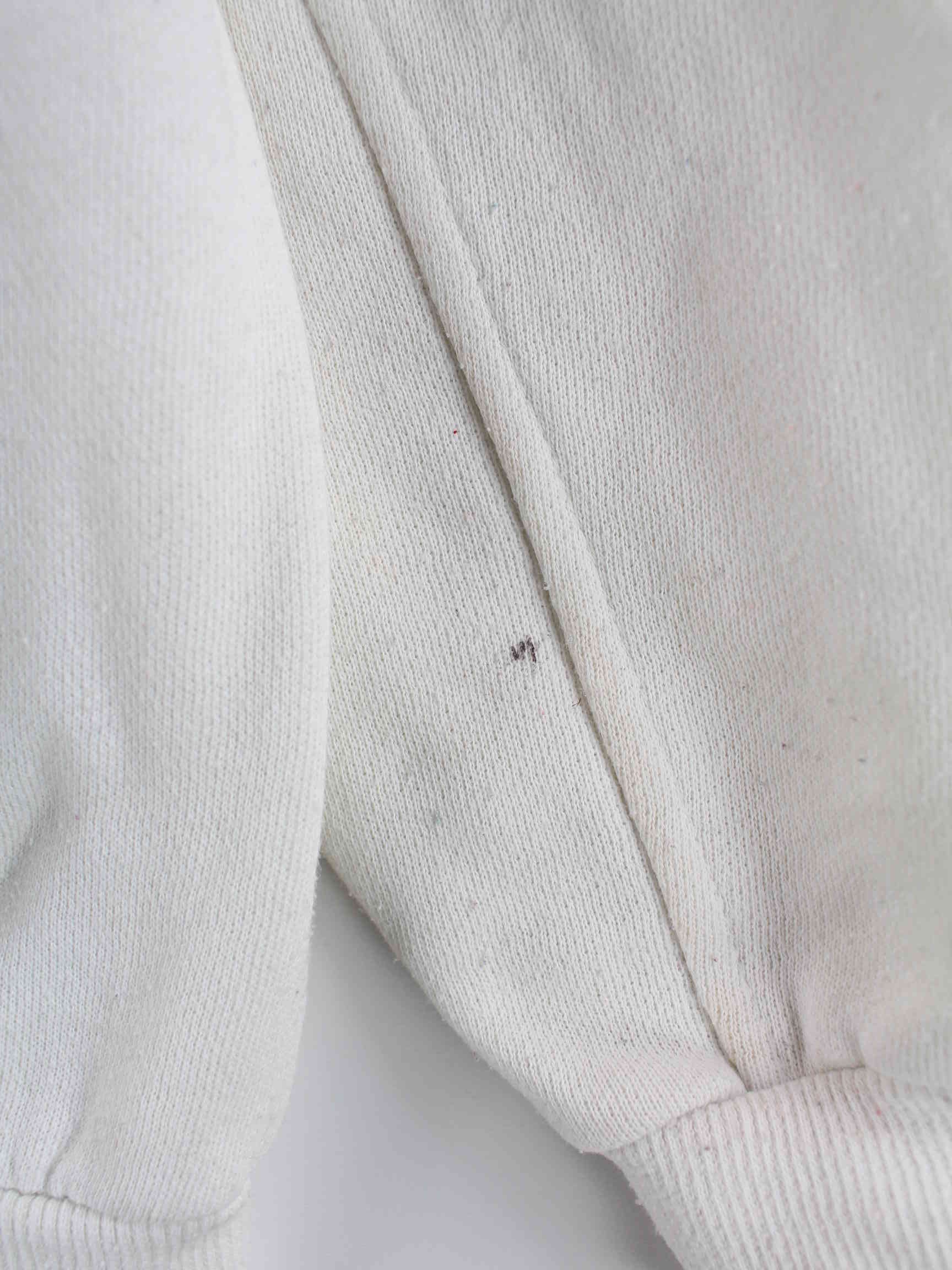 Vintage sweater in size M from the 80's. It is made from a cotton blend and is available from us in white. With a great America print.