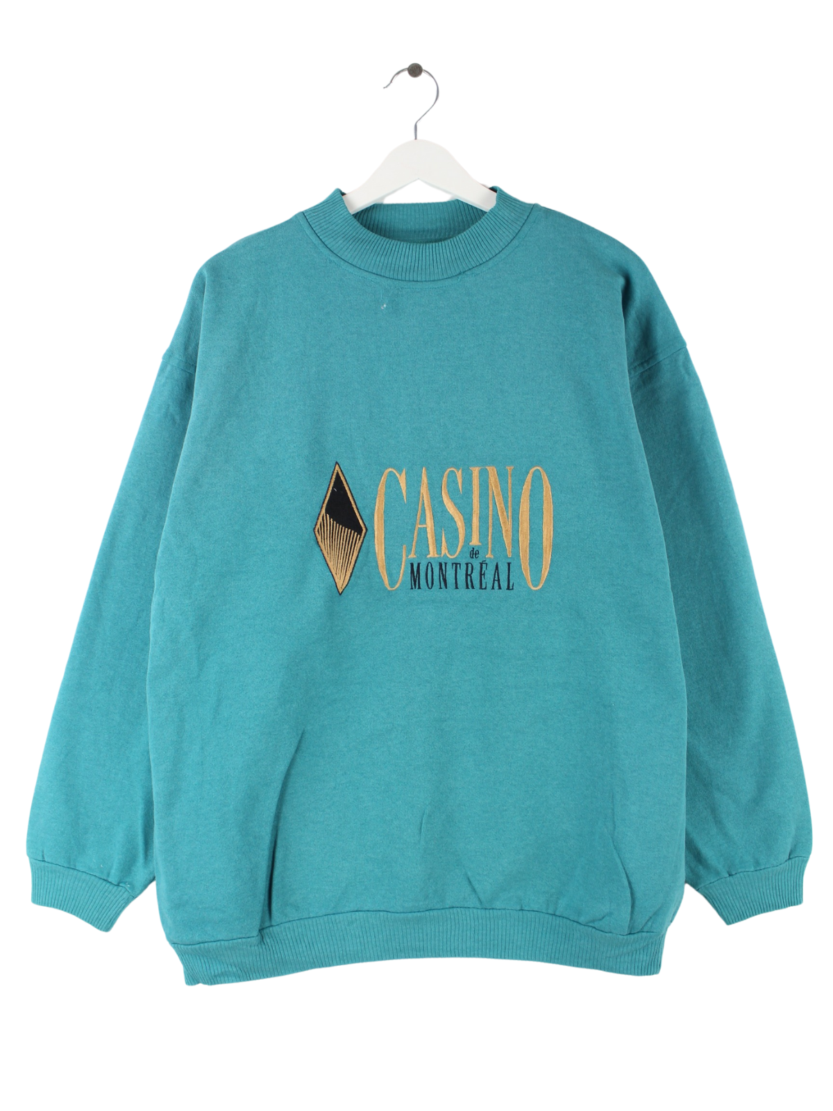 Vintage 80s Vintage Casino Montreal Embroidered Sweater Türkis M