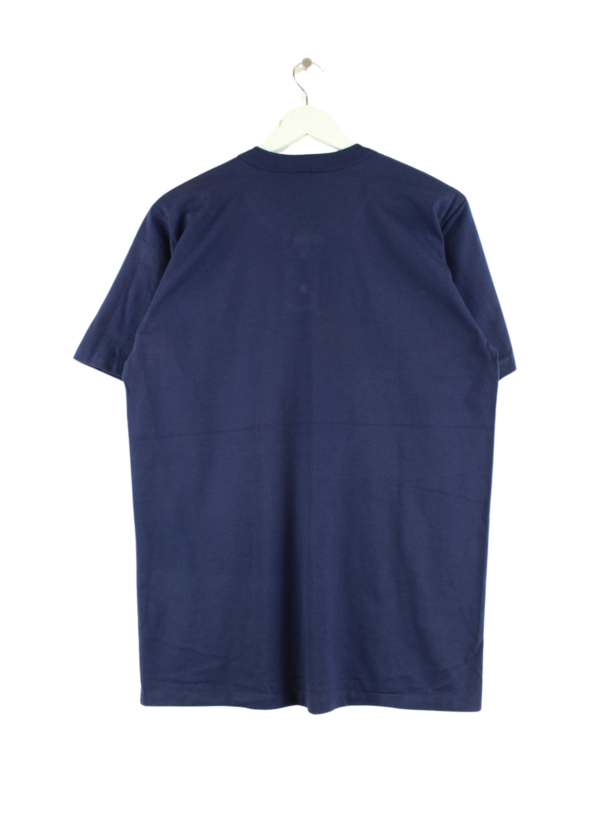 Blue vintage single stitch t-shirt from the 80's in size L. It is made of cotton and is in very good condition.