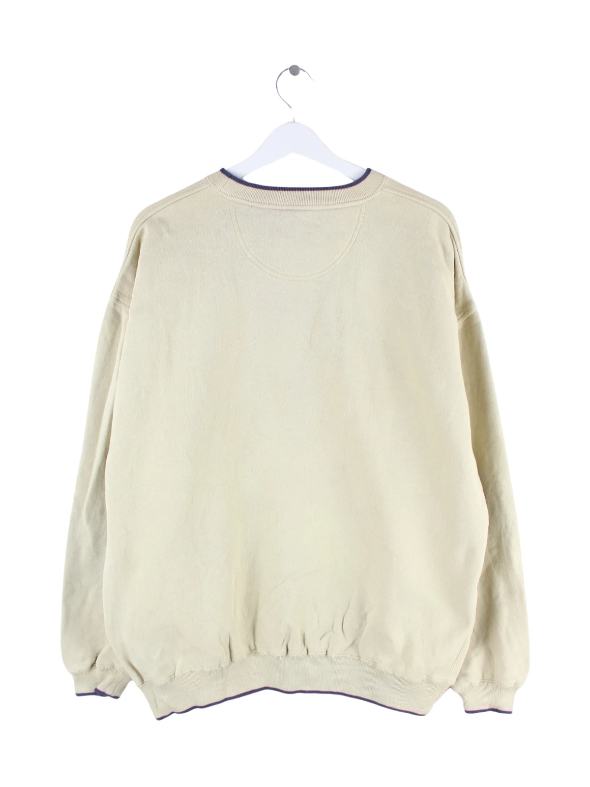 Beigefarbener Vintage Sweater mit gestickten Motiven aus den 90'ern in Größe L. Er ist aus einer Baumwollmischung angefertigt und in sehr gutem Zustand in Stock.