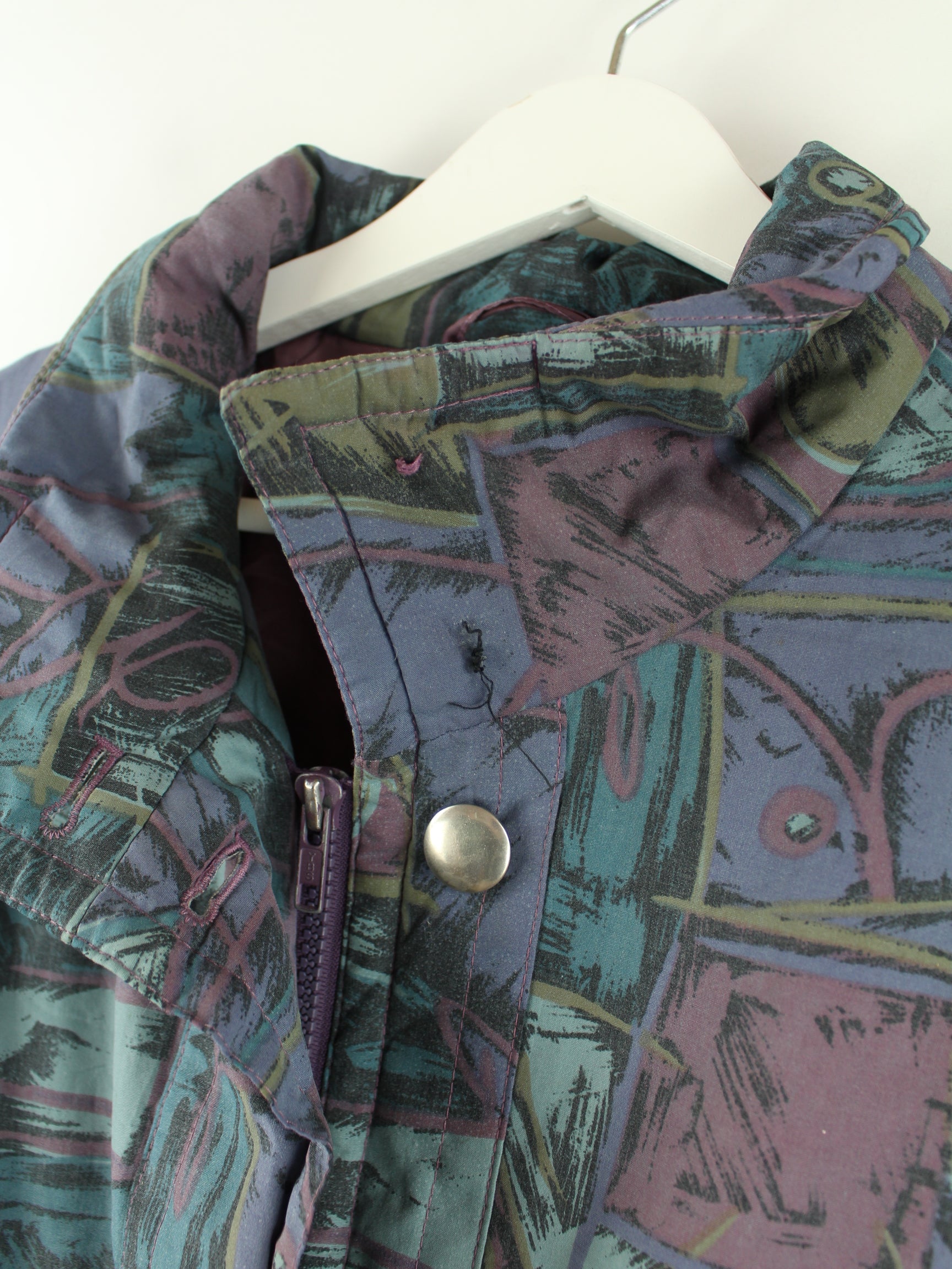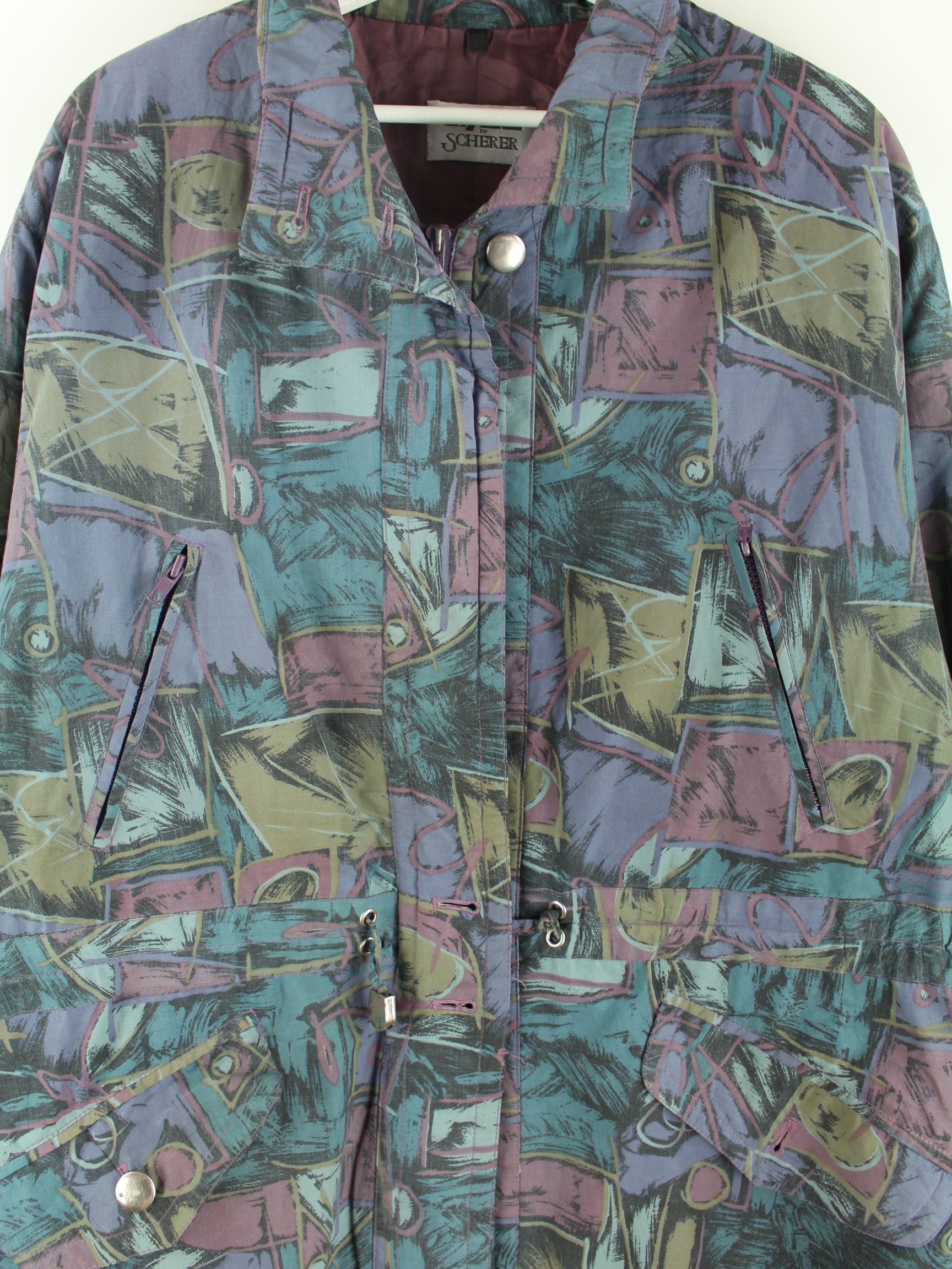 Vintage light jacket in size L from the 90's. It is made of synthetic material and comes in bright colors.