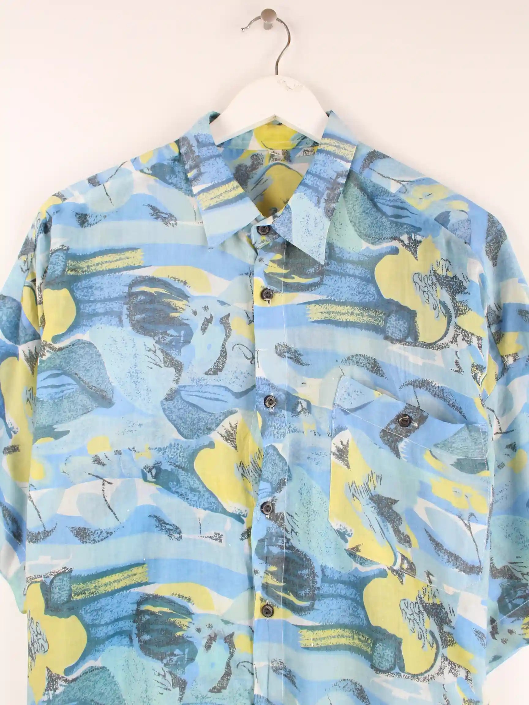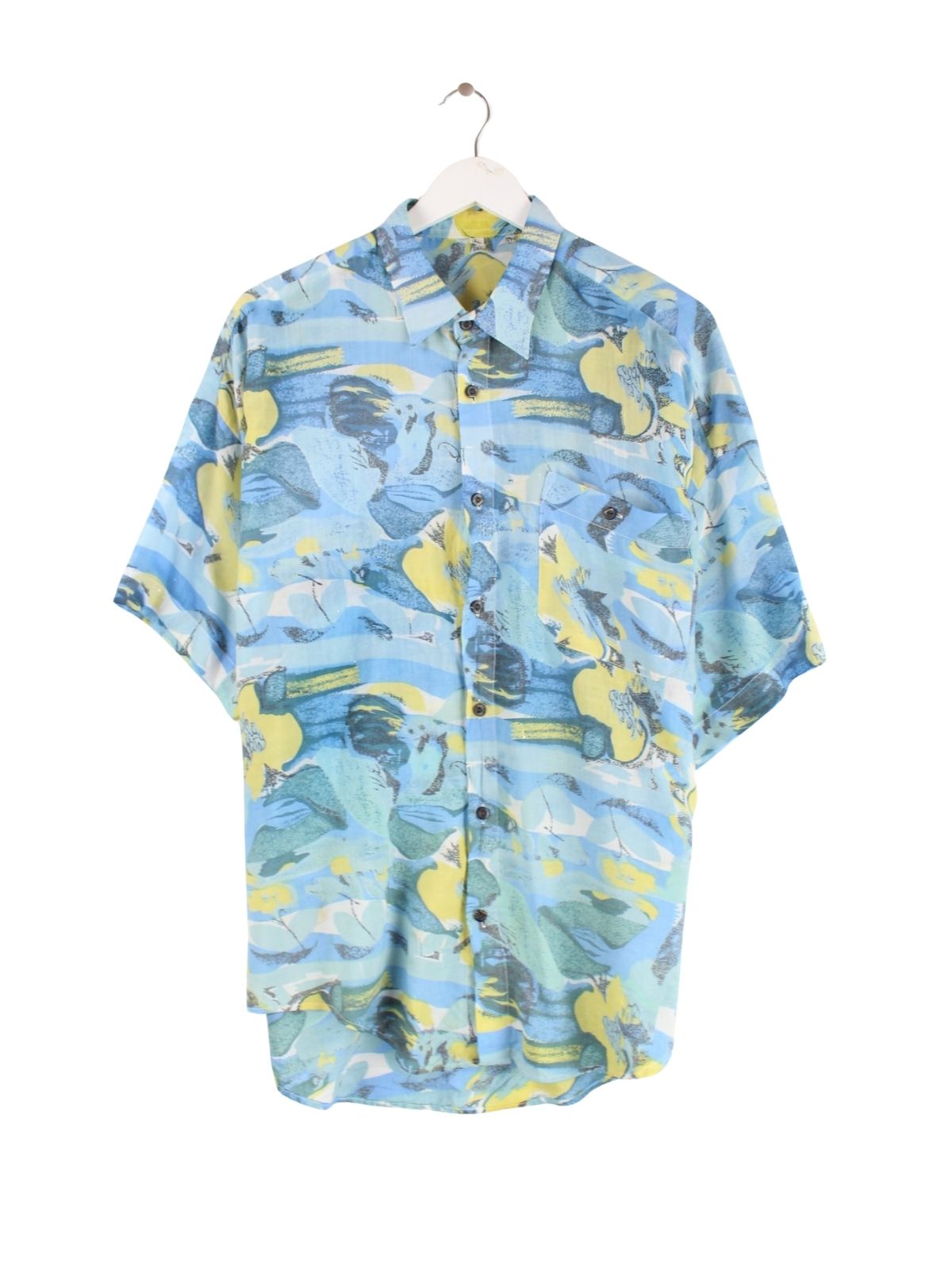 Vintage 90s Crazy Pattern Kurzarm Hemd Blau L