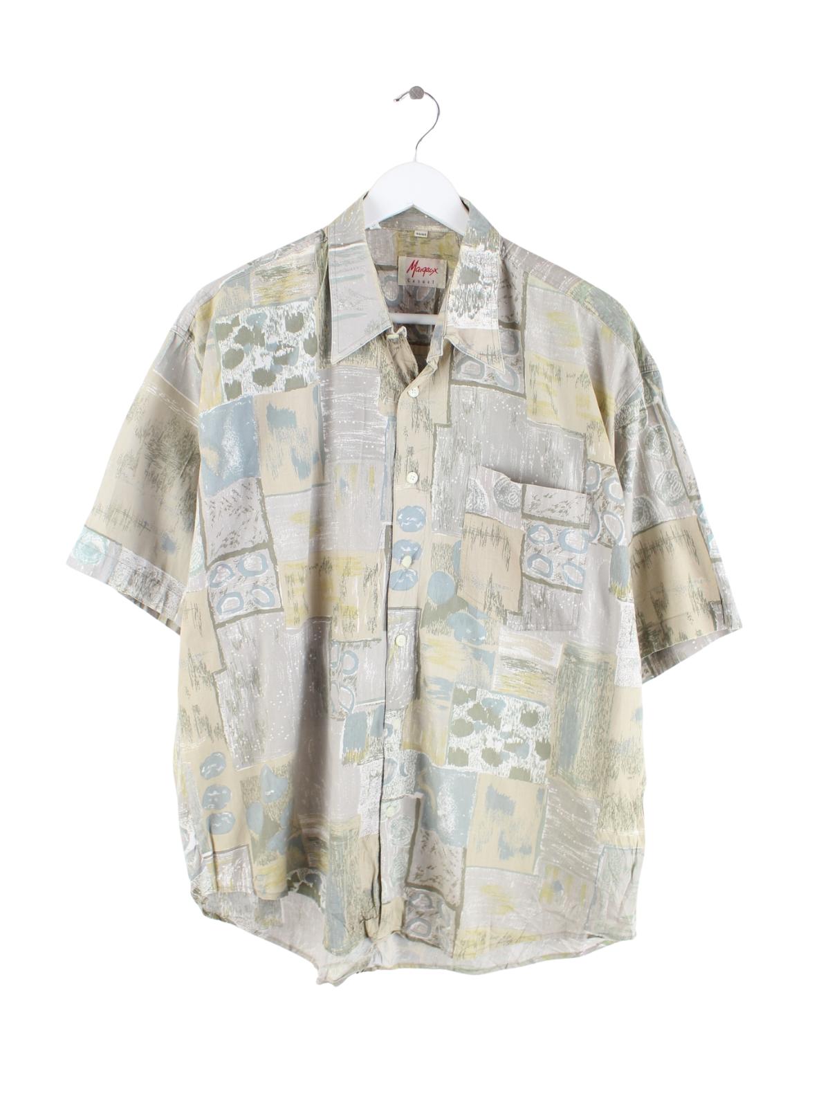 Vintage 90s Crazy Pattern Kurzarm Hemd Grau L
