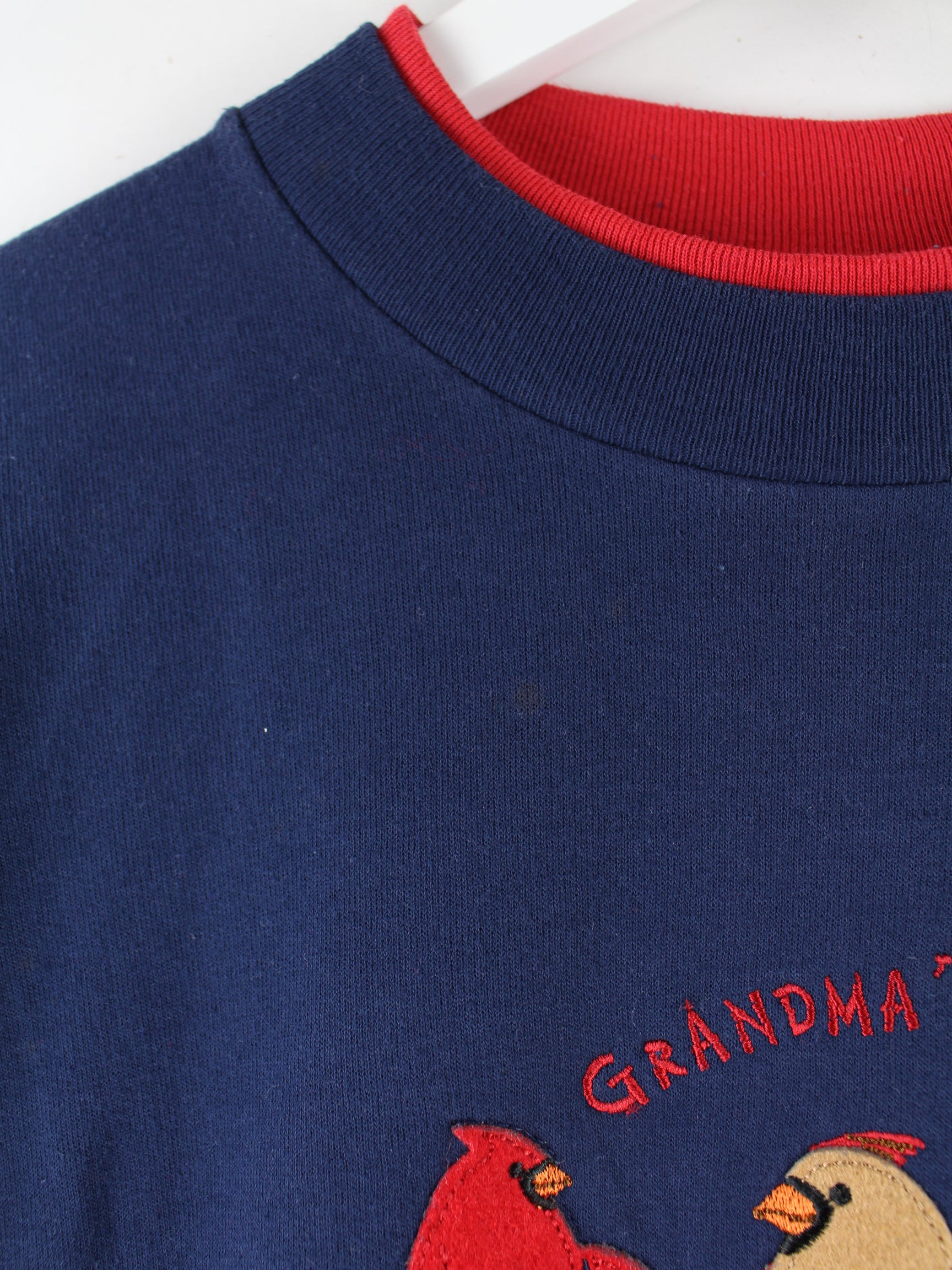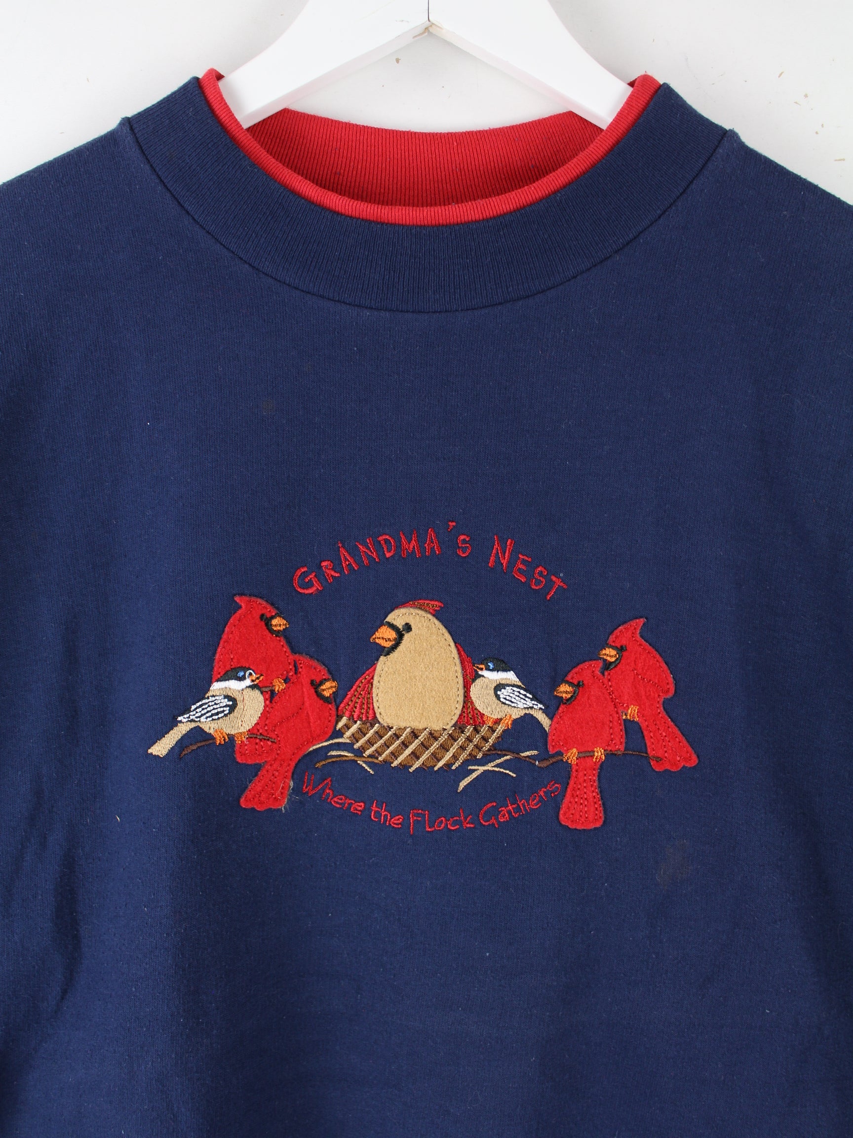 Vintage 90s Embroidered Christmas Sweater Blau L