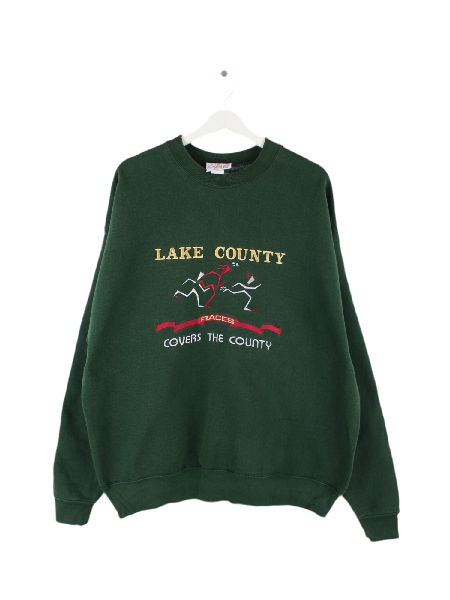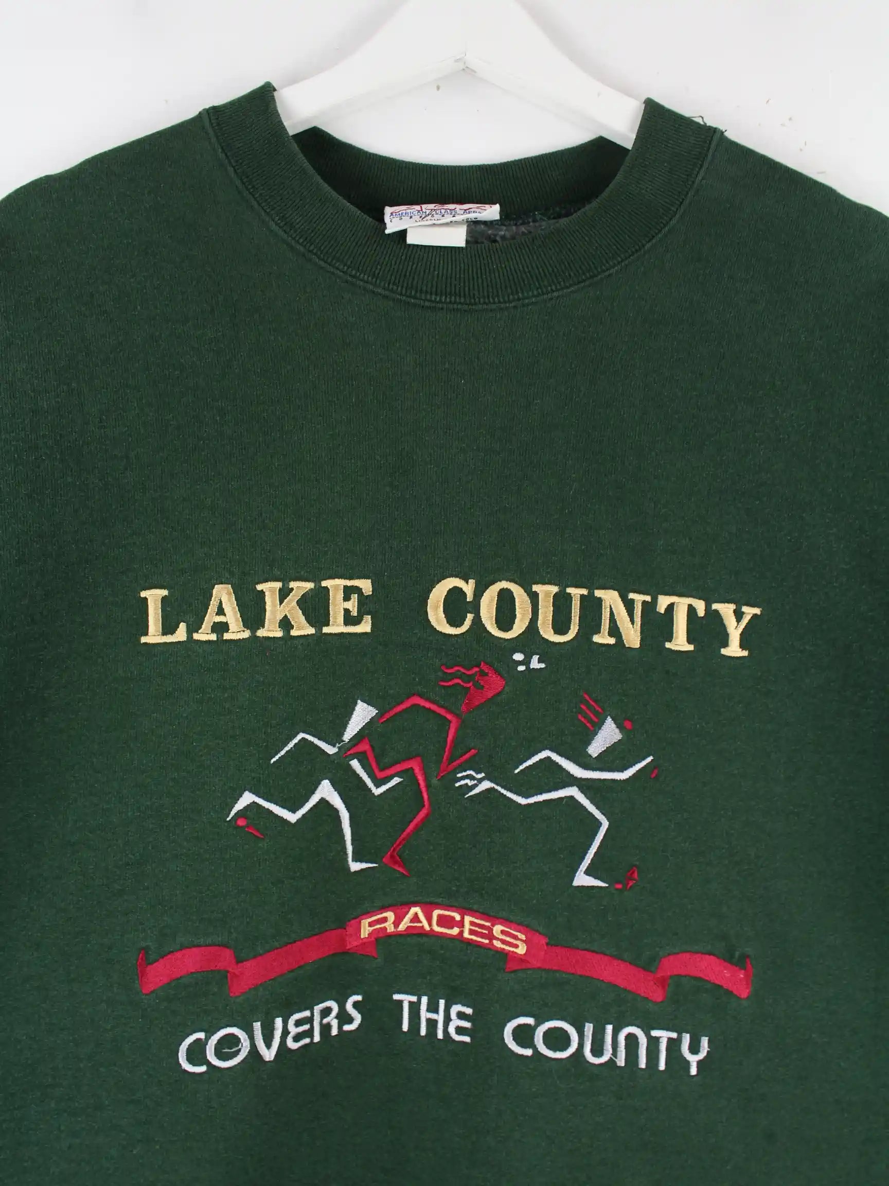 Vintage 90s Lake Race Embroidered Heavy Sweater Grün XXL