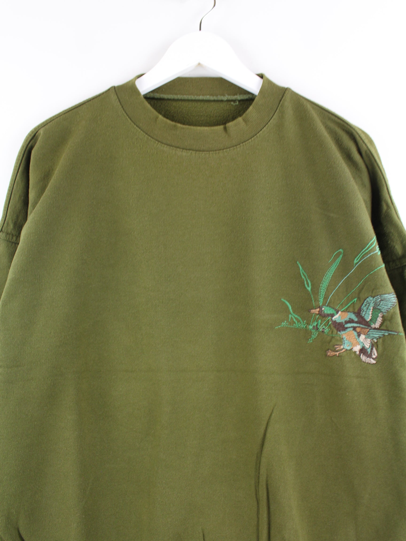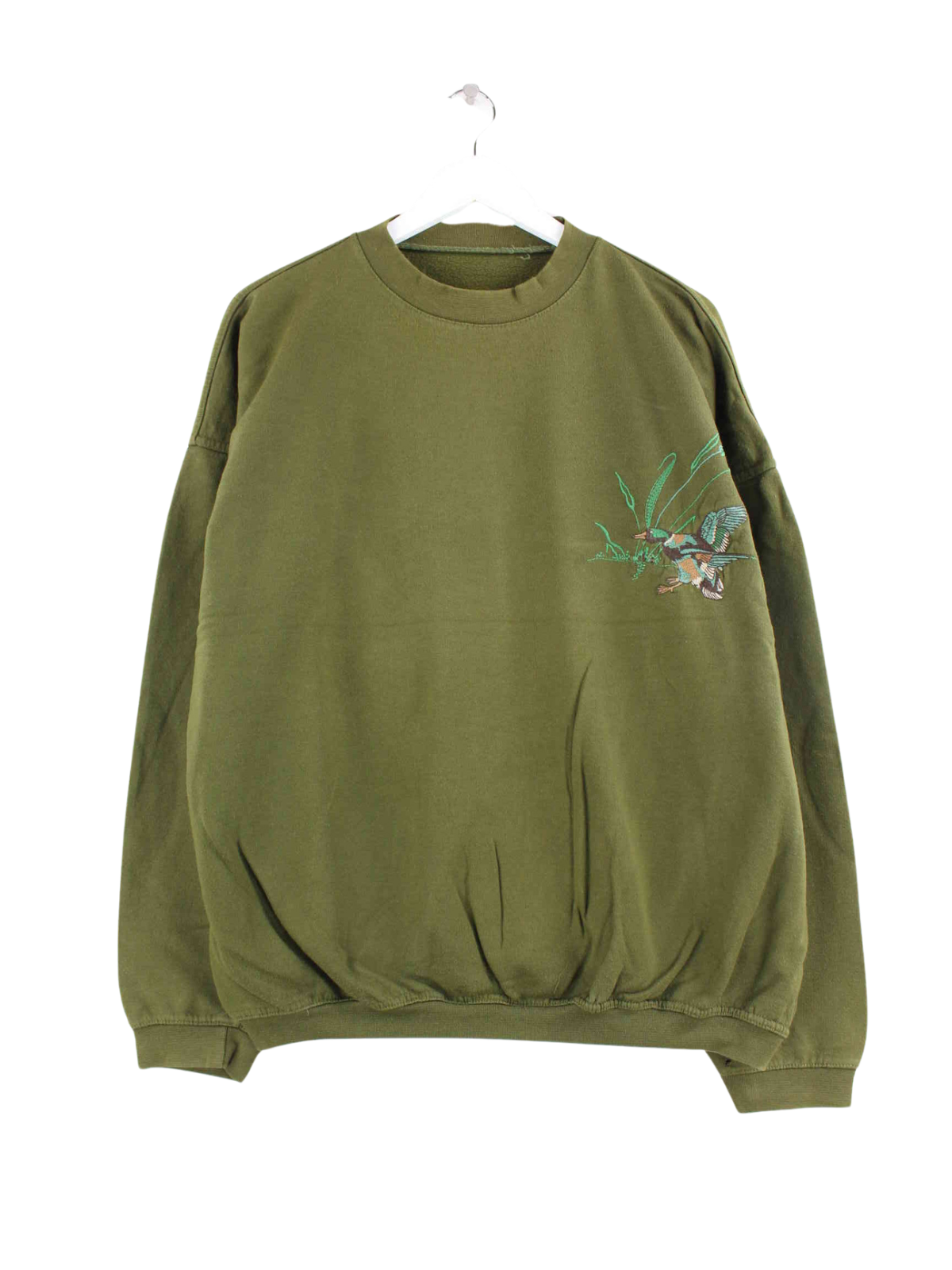 Vintage sweater with embroidery in size XXL from the 90s. It is made from a cotton blend and is available in green.