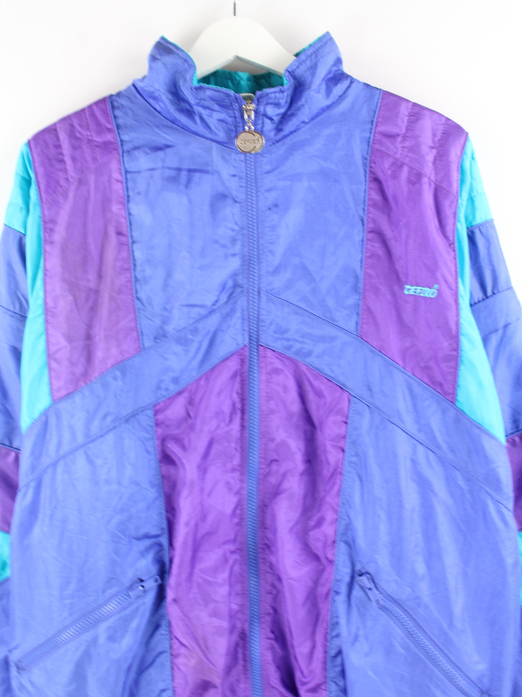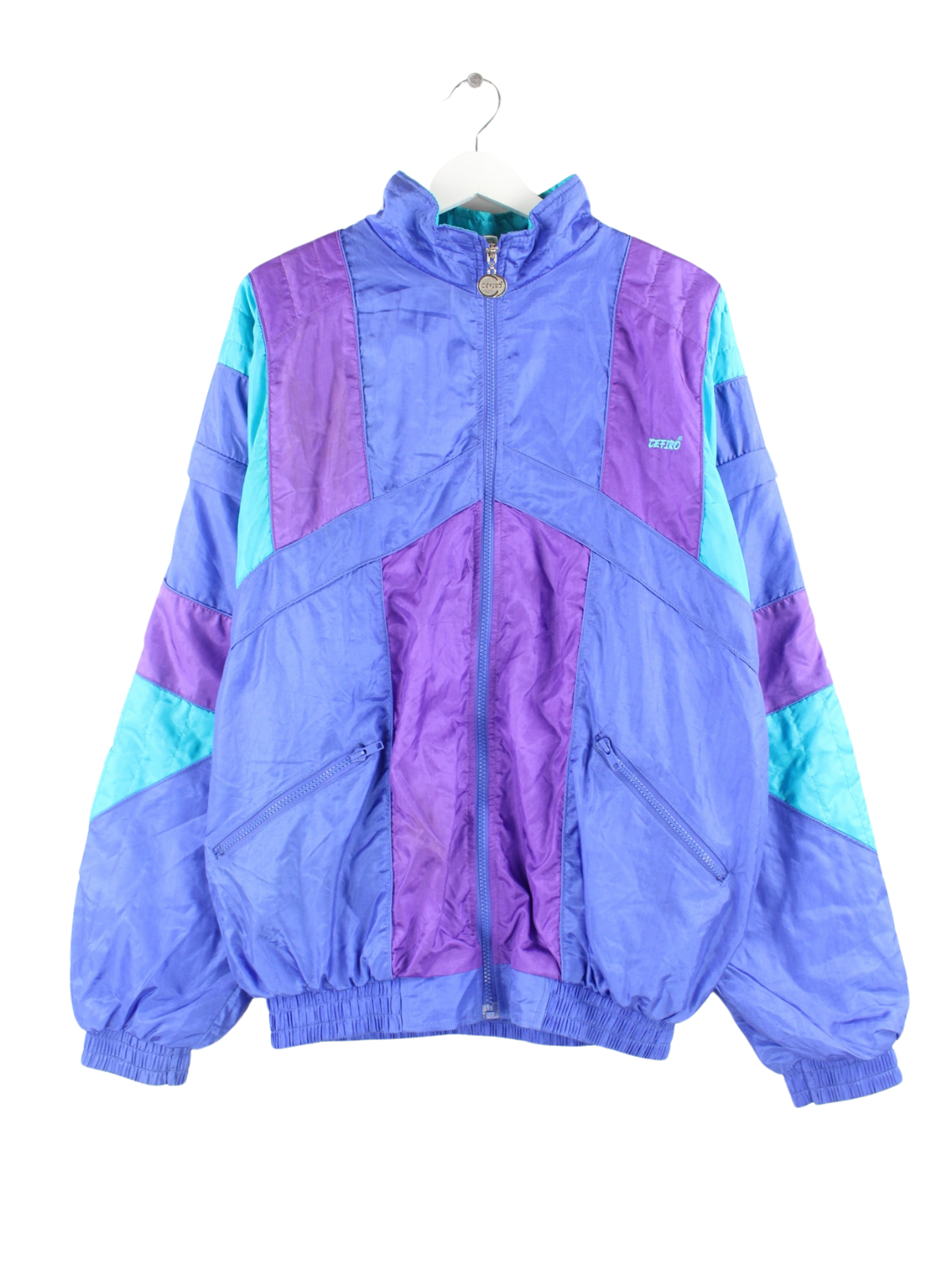 Blue vintage training jacket with embroidery from the 90s in size XL. It is made of synthetic material and is available in very good condition.