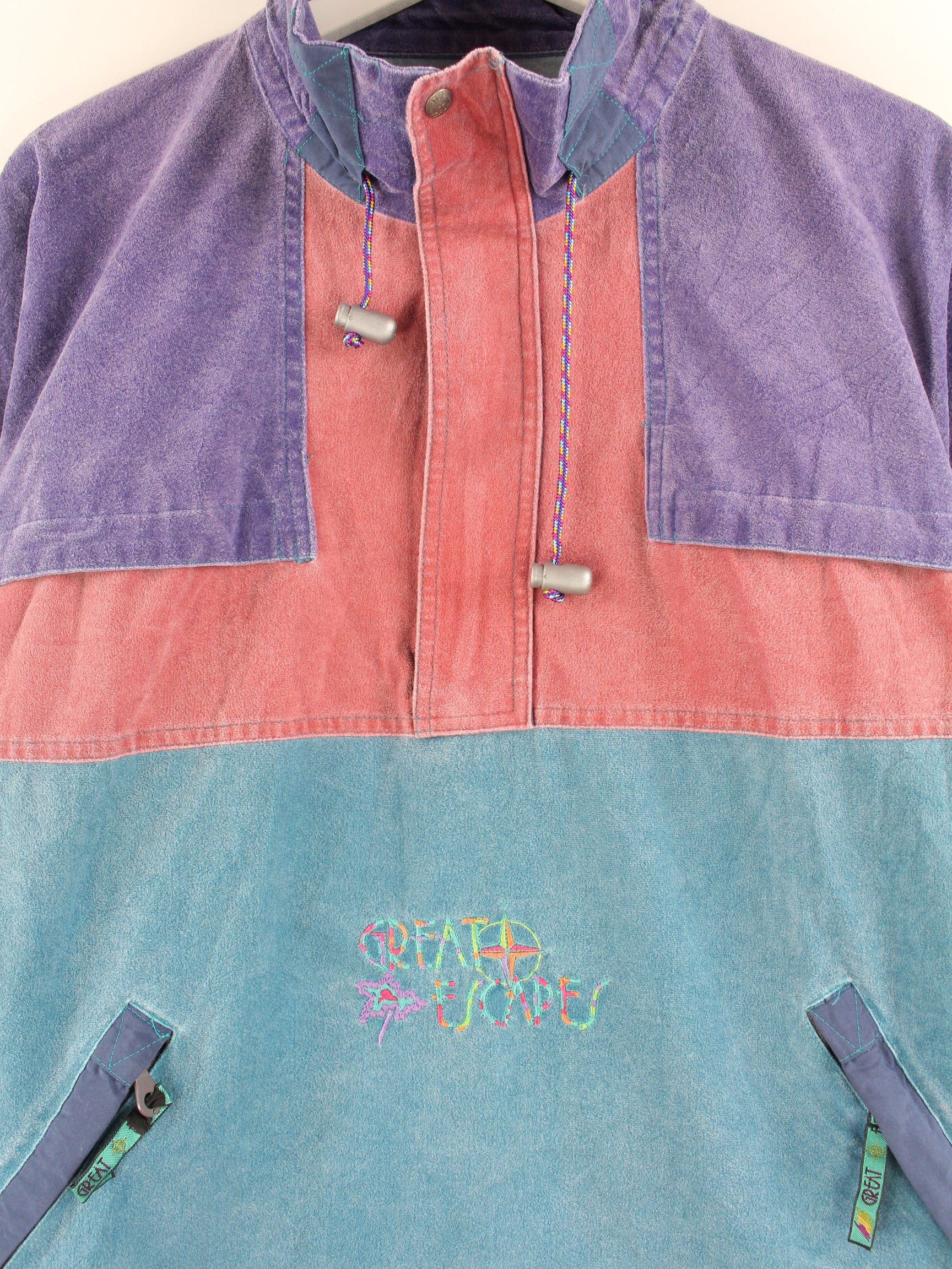 Vintage 90s Embroidered Velor Half Zip Track Jacket Multicolored L