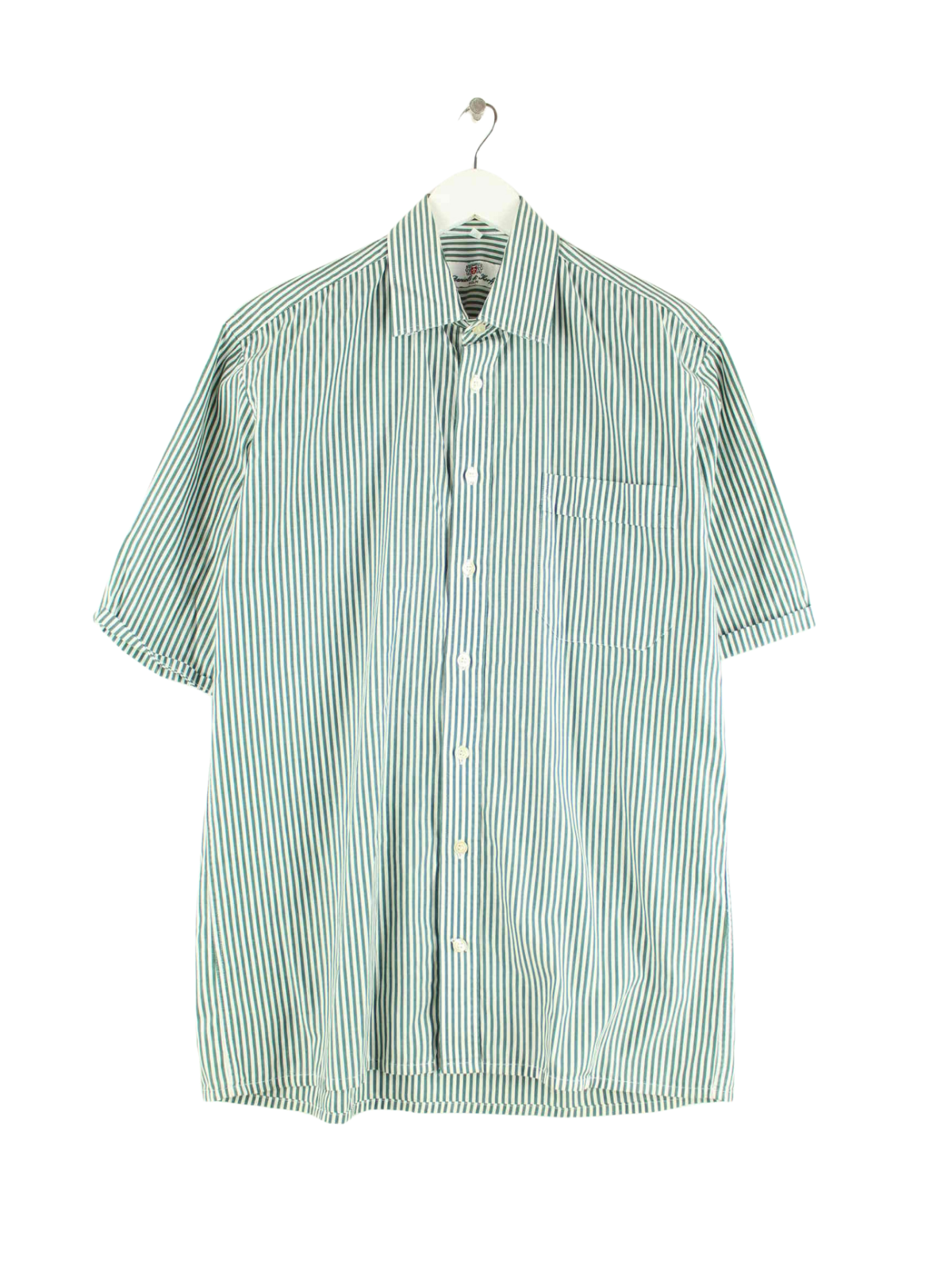 Vintage 90s Striped Short Sleeve Shirt Green L