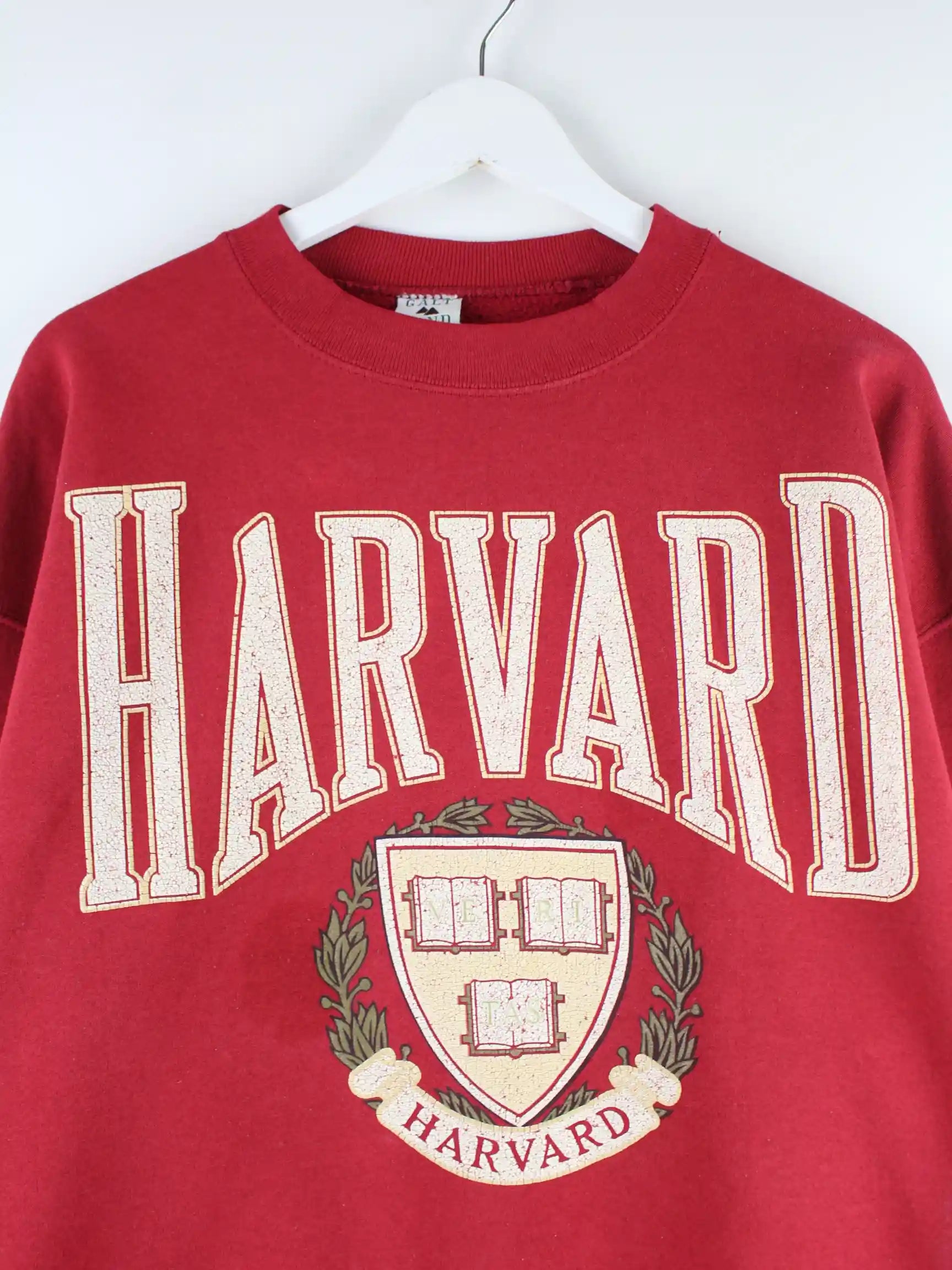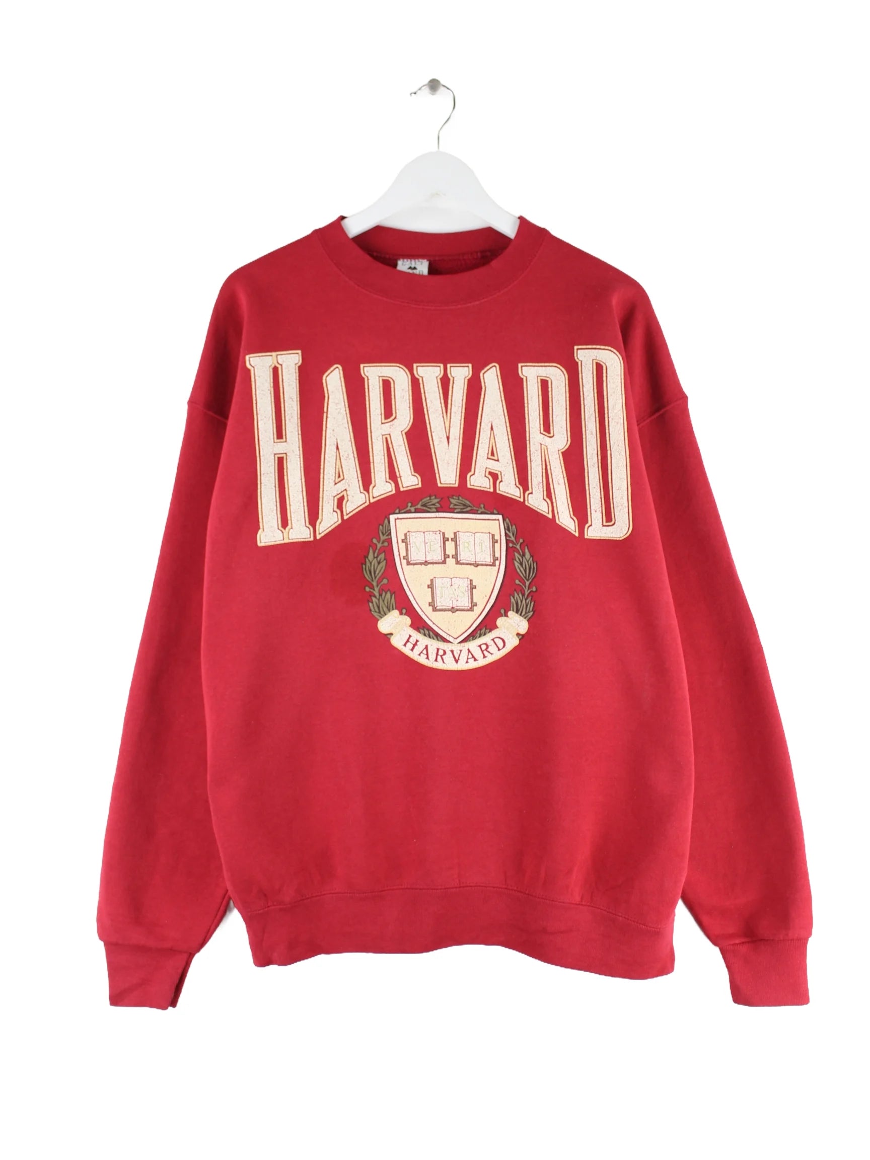 Roter Vintage Sweater aus den 90'ern in Größe XL. Er ist aus einer Baumwollmischung gefertigt und in gutem Zustand im Angebot. Mit schönem Harvard Print.
