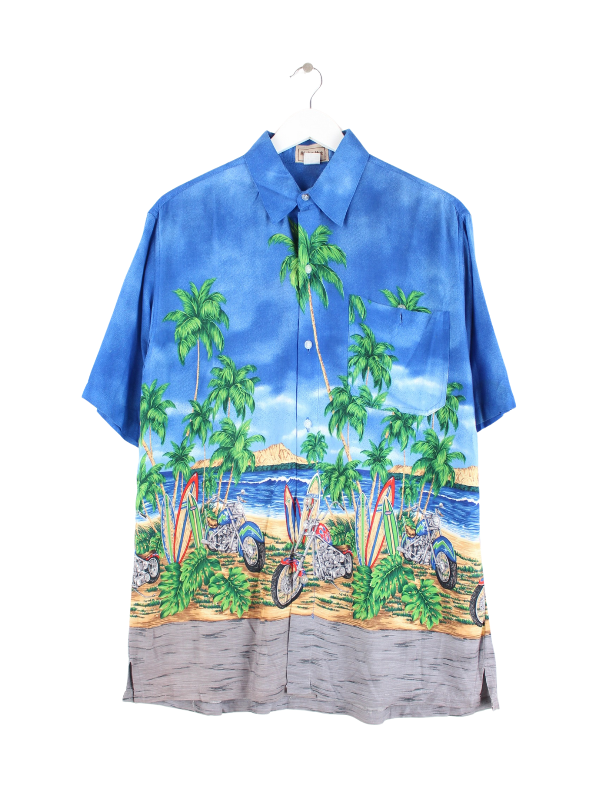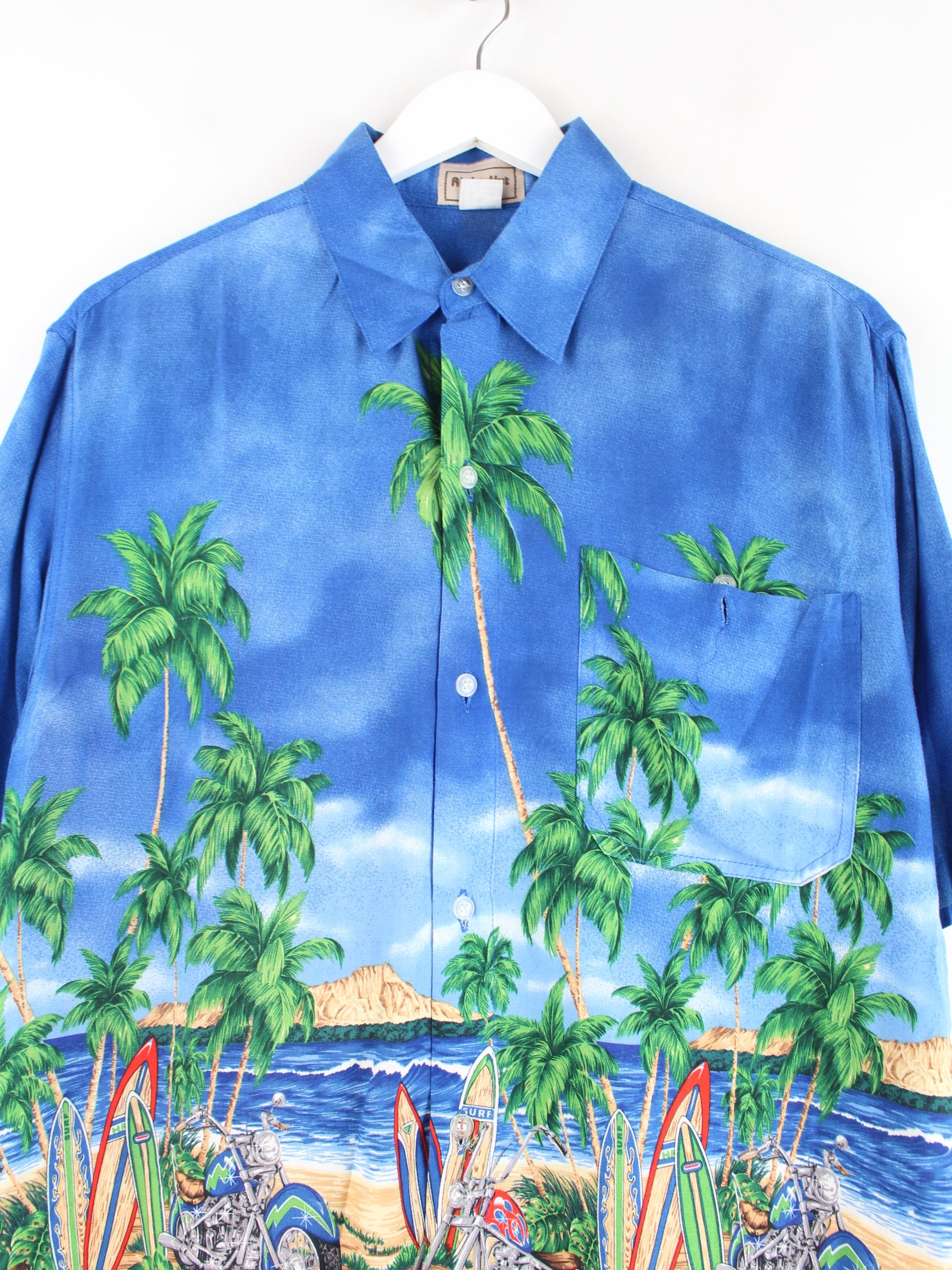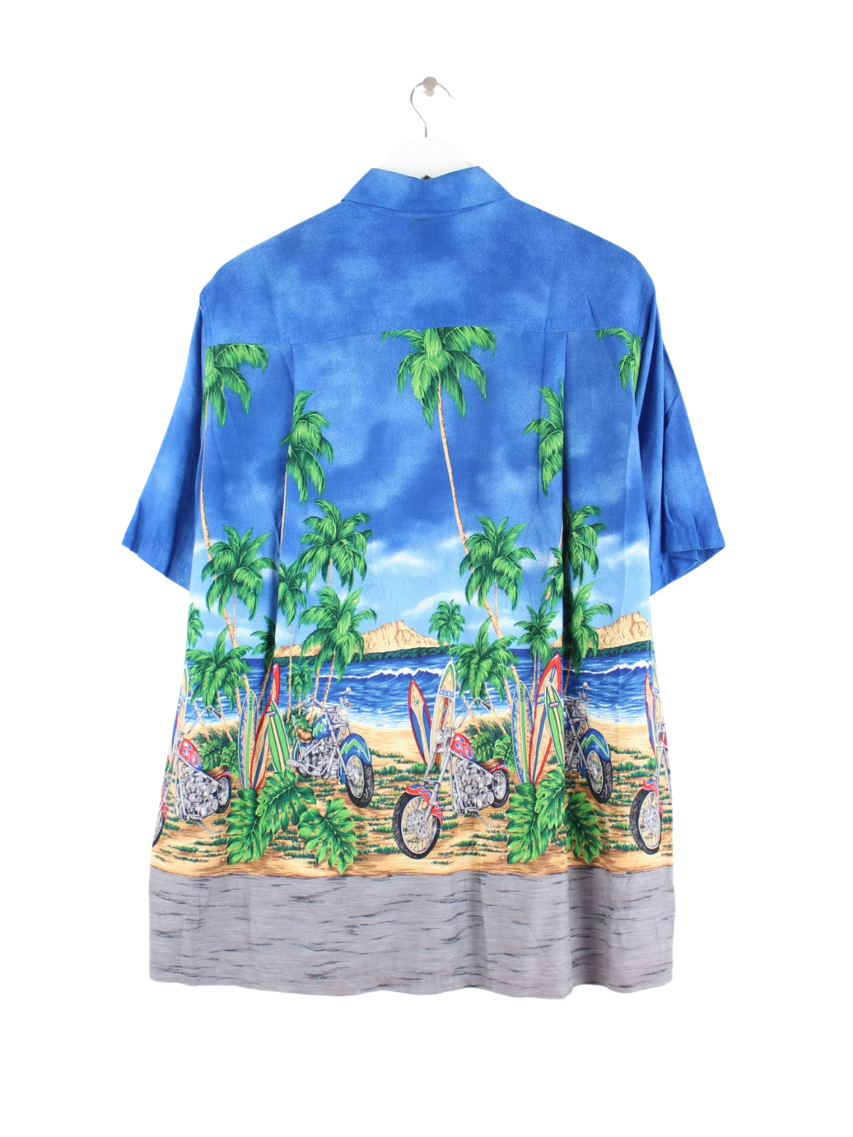 Vintage 90s Hawaii Motocycle & Surfing Motifs Shirt Blue M