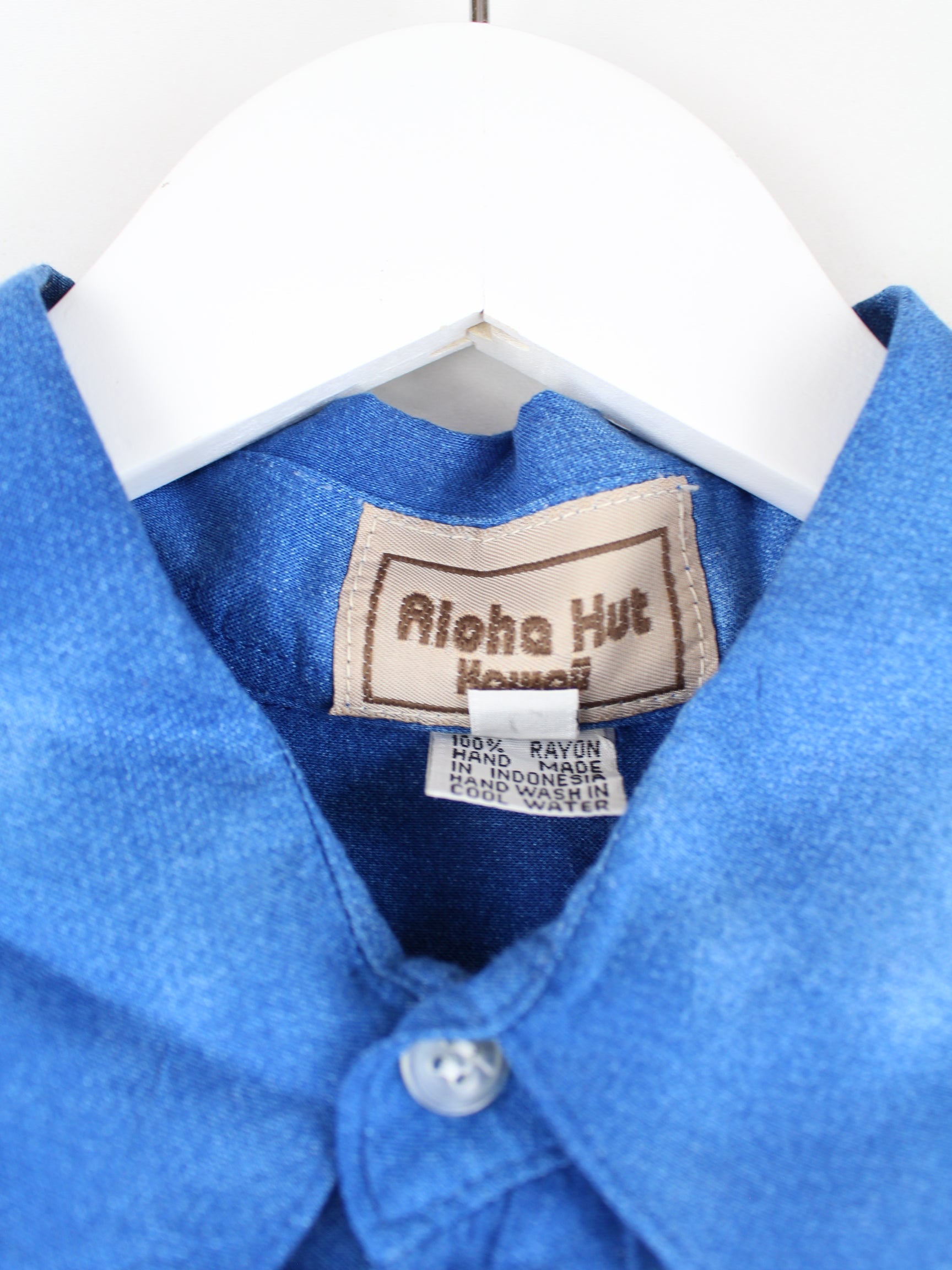 Vintage leisure shirt in size M from the 90's. It is made of synthetic material and is available from us in blue.