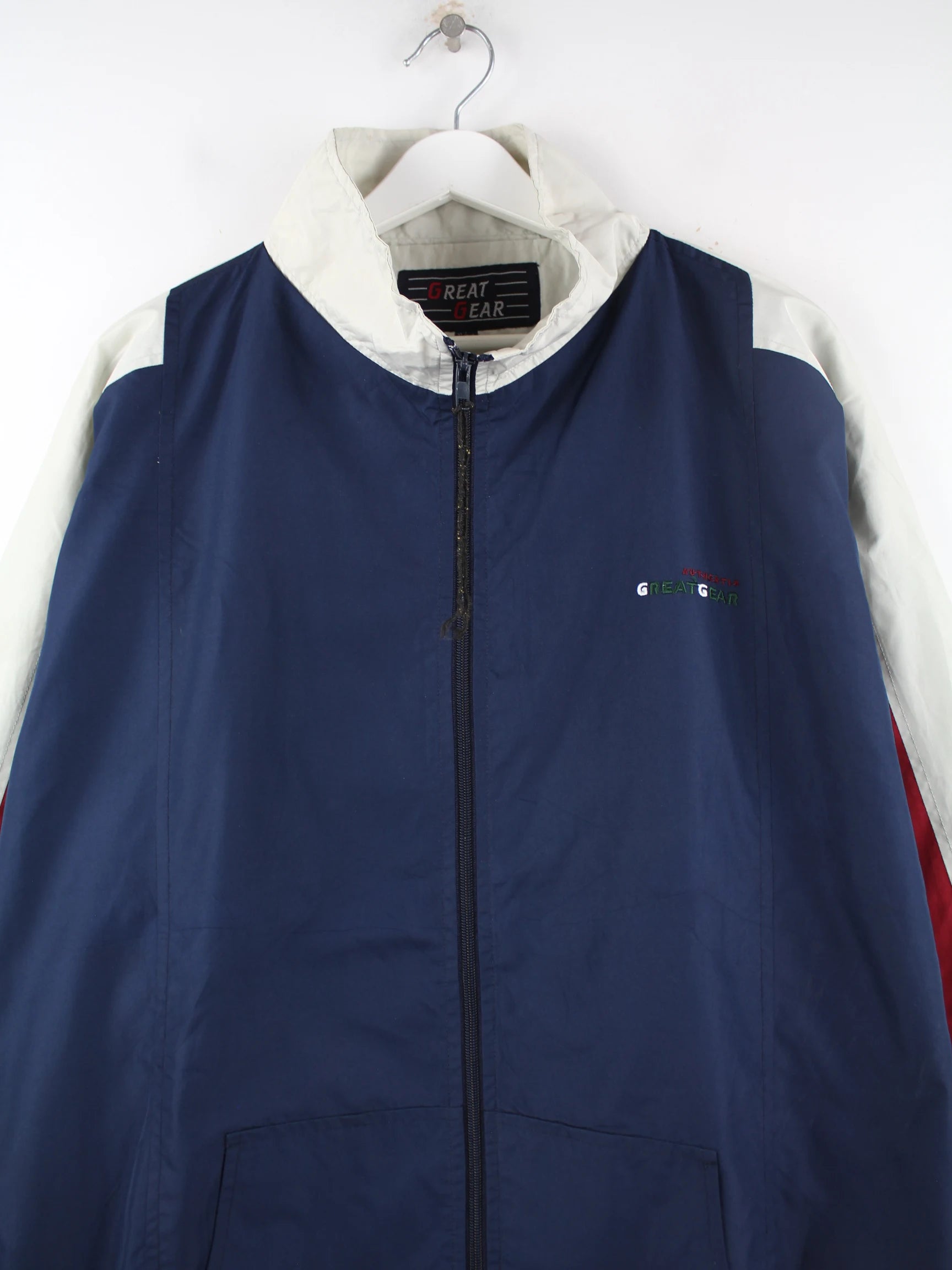 Vintage Leichte Jacke in Größe XL aus den 90'ern. Sie ist aus Synthetik hergestellt und in Blau in Stock.