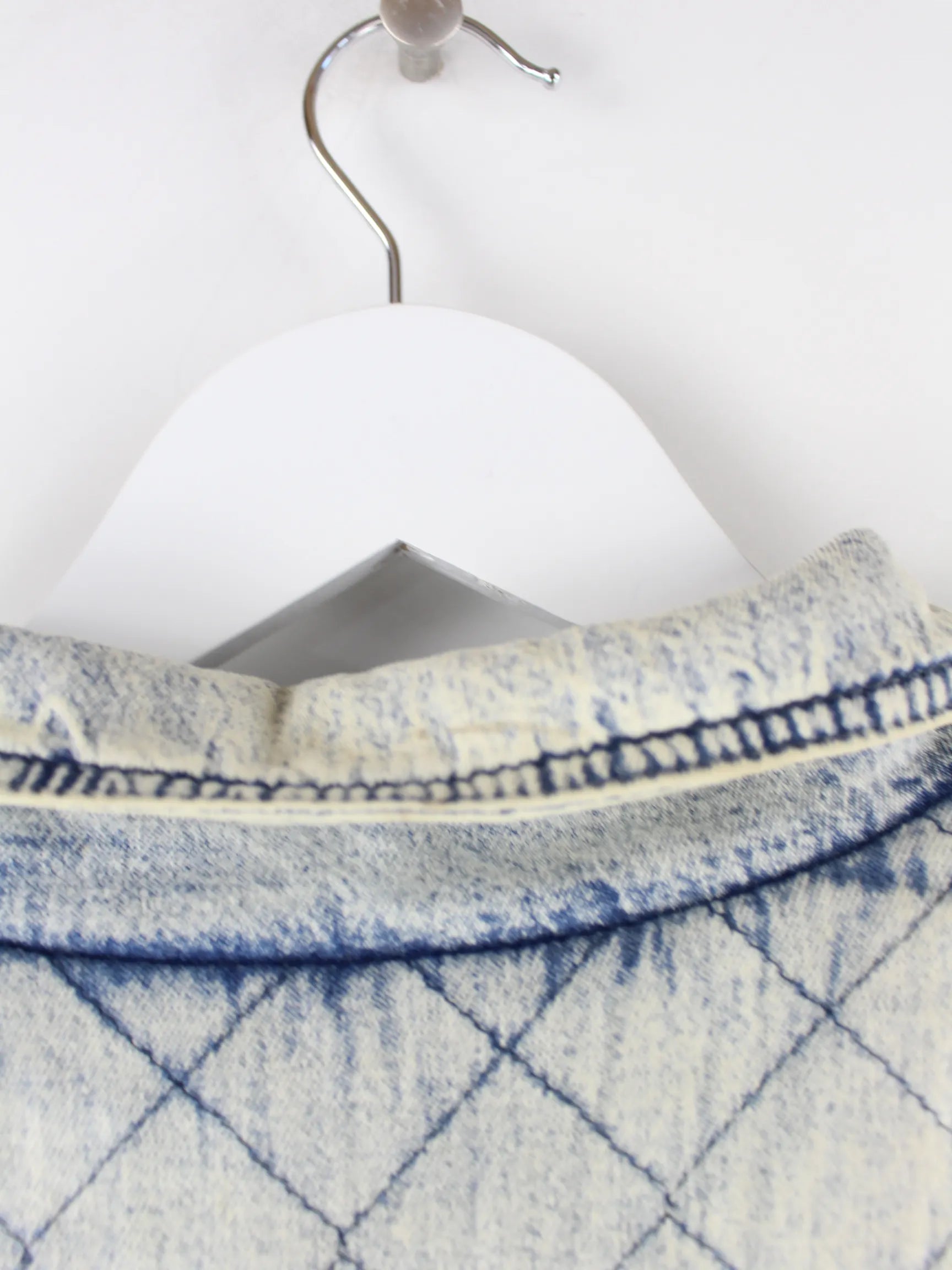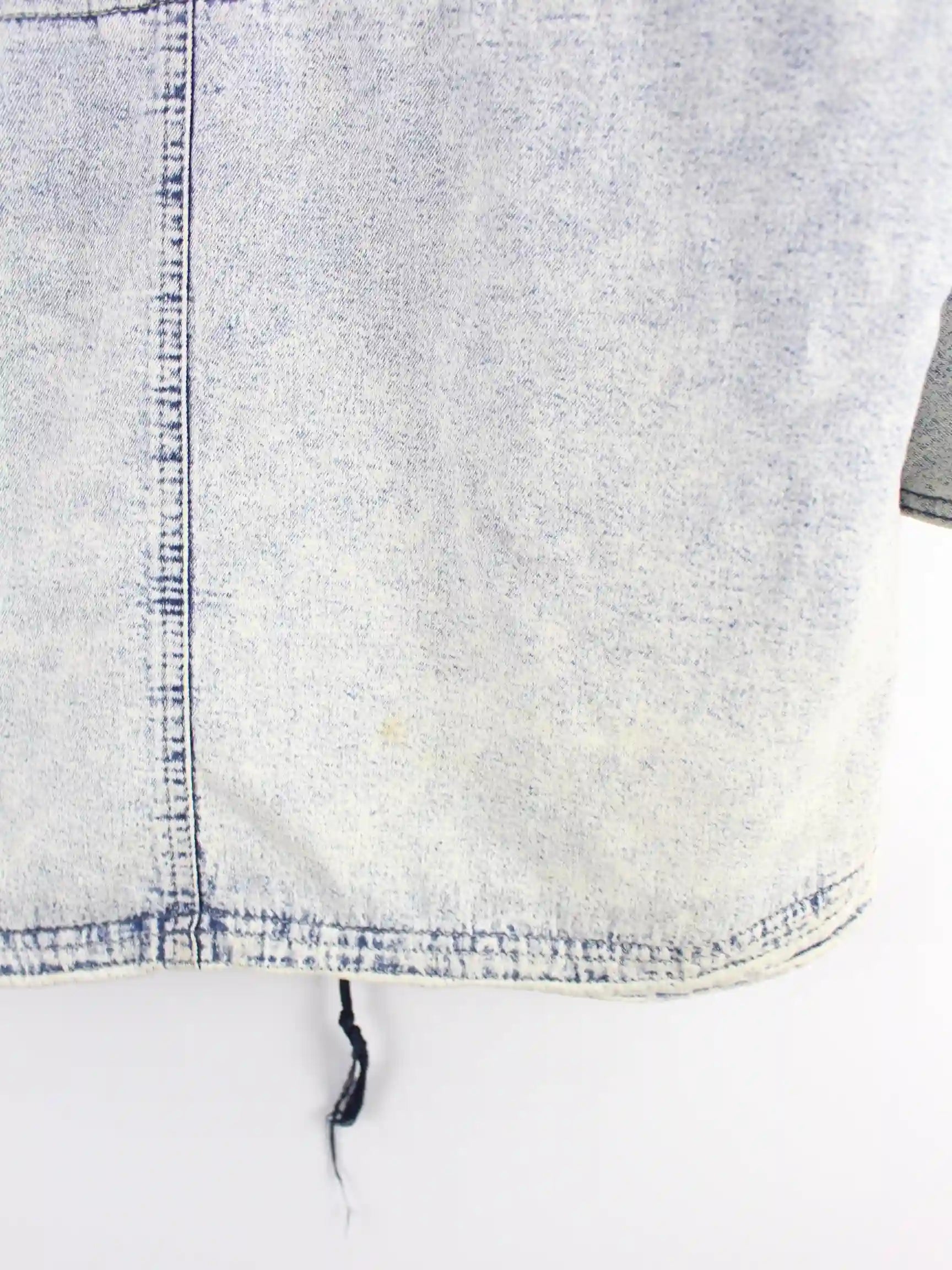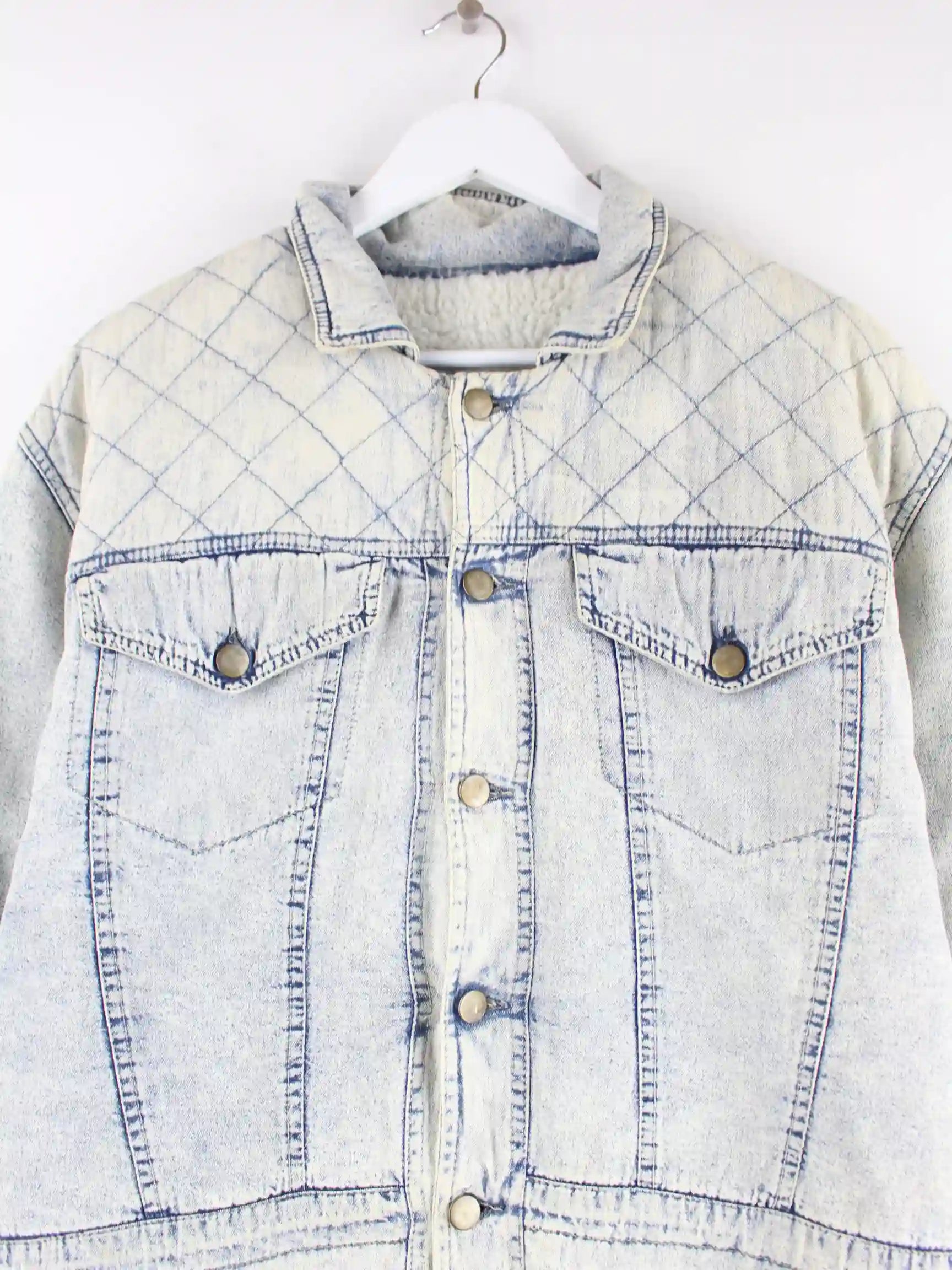 Blaue Vintage Jacke aus den 90'ern in Größe M. Sie ist aus Baumwolle . Den Zustand würden wir als 'In Ordnung' bezeichnen (vergl. Bilder).