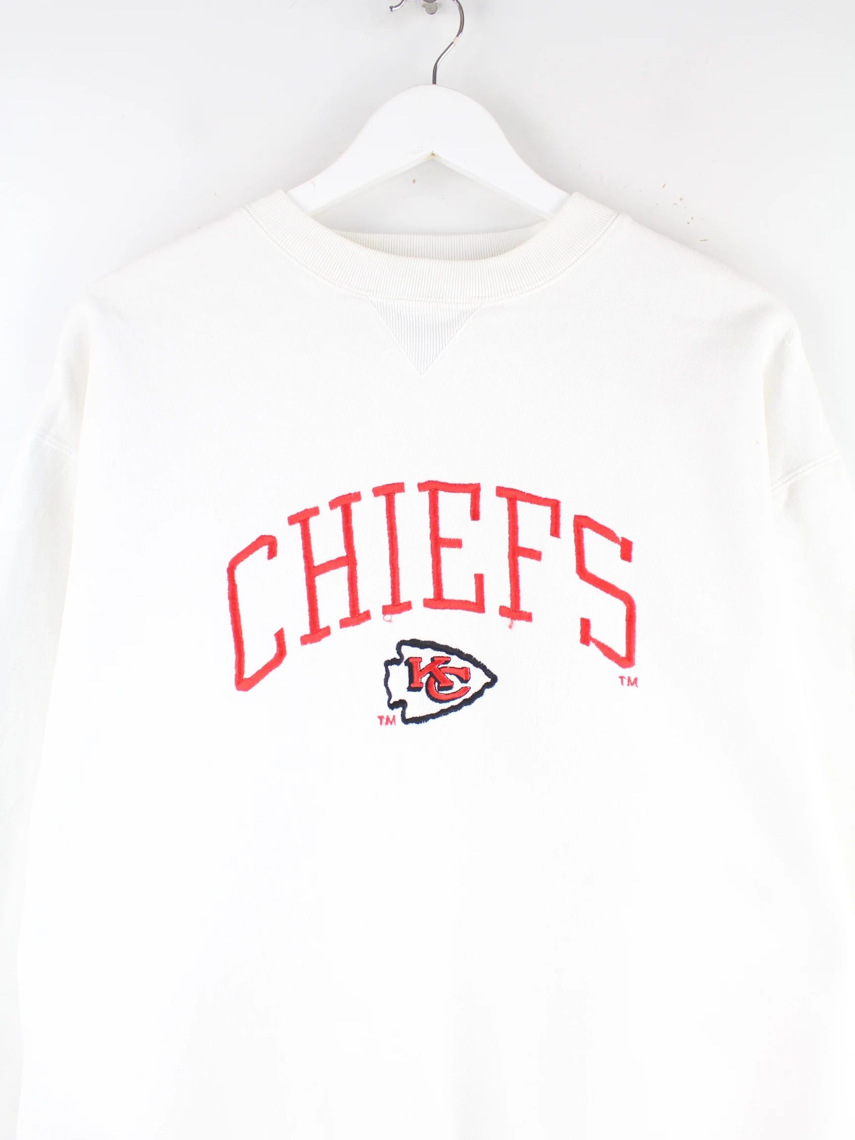Vintage 90s Kensas Chiefs Embroidered Heavy Sweater Weiß XL
