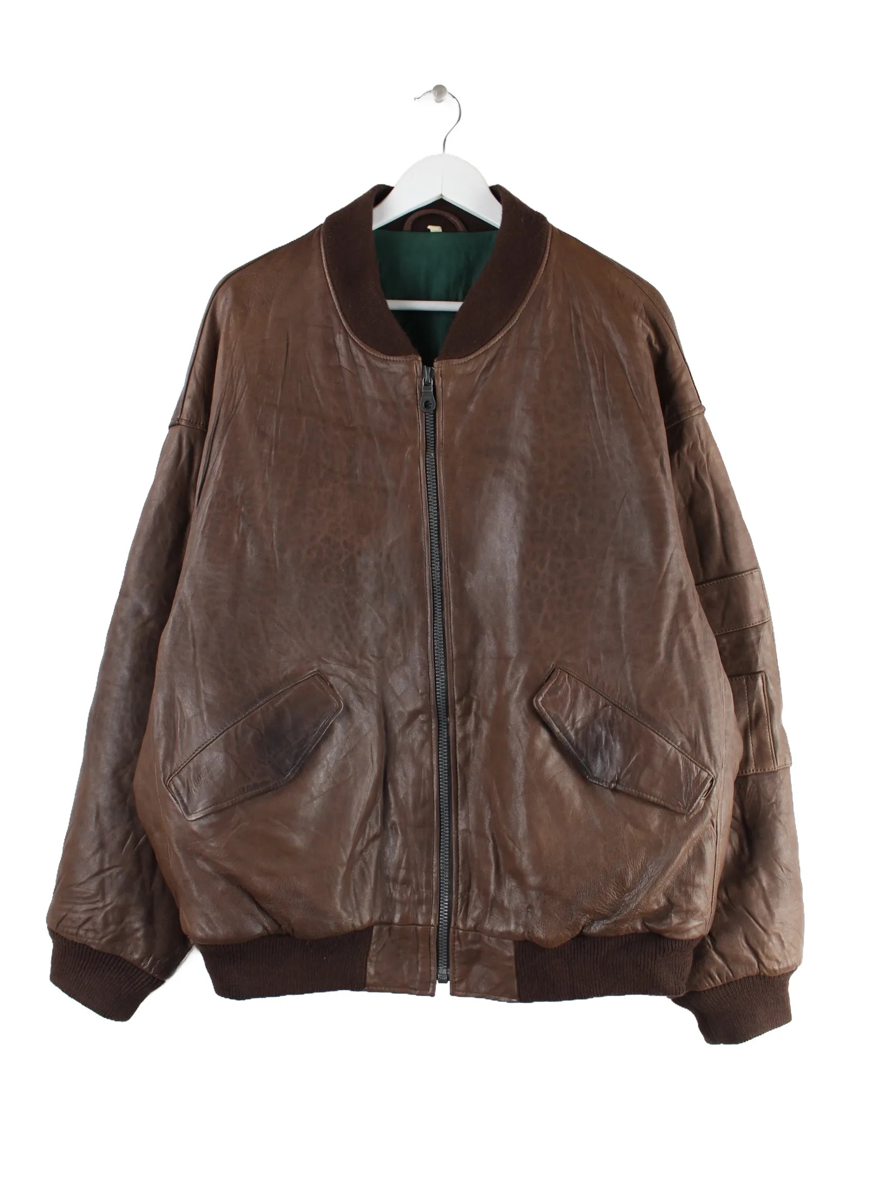 Vintage 90s Leder Bomber Jacke Braun XXL