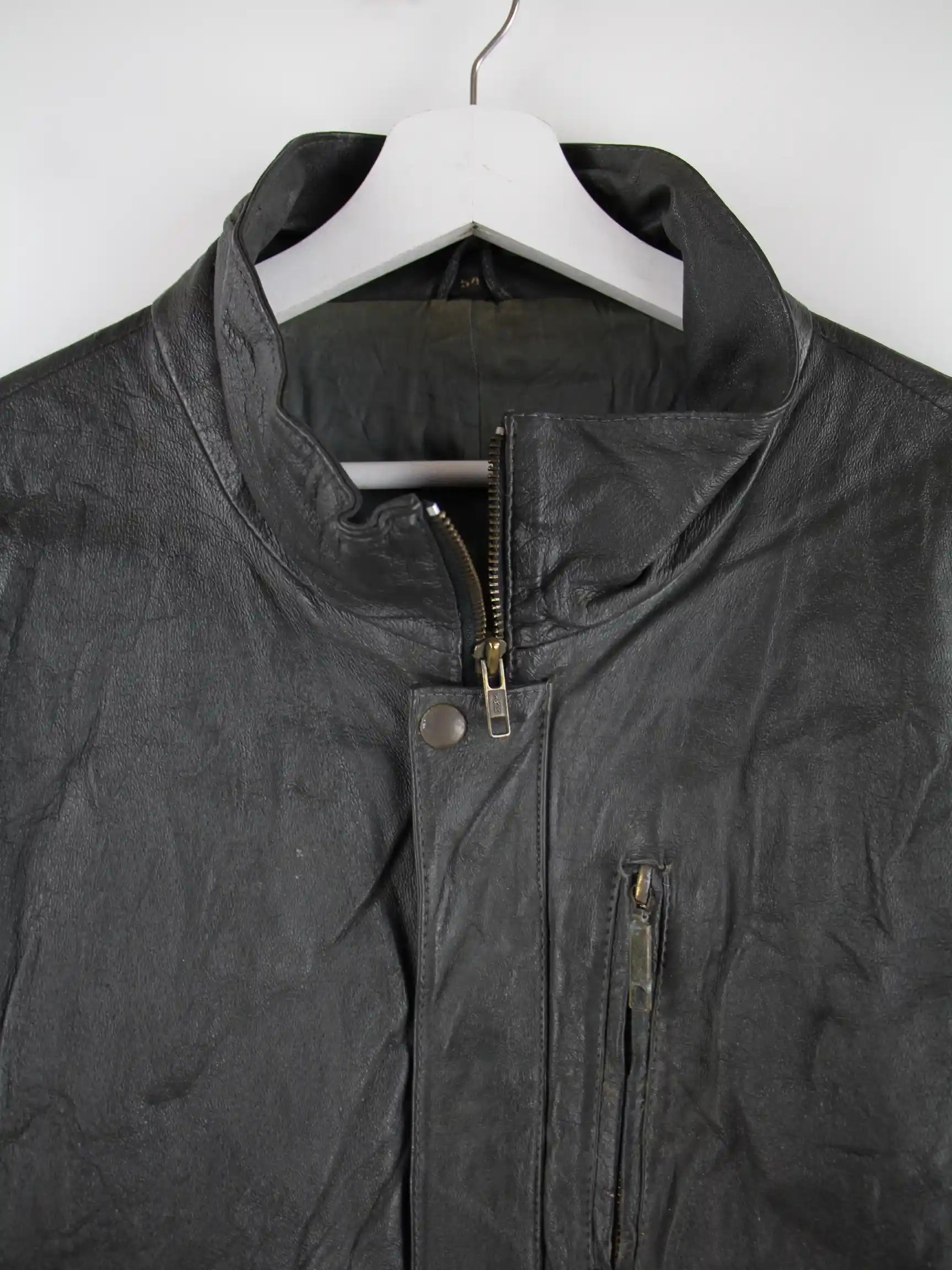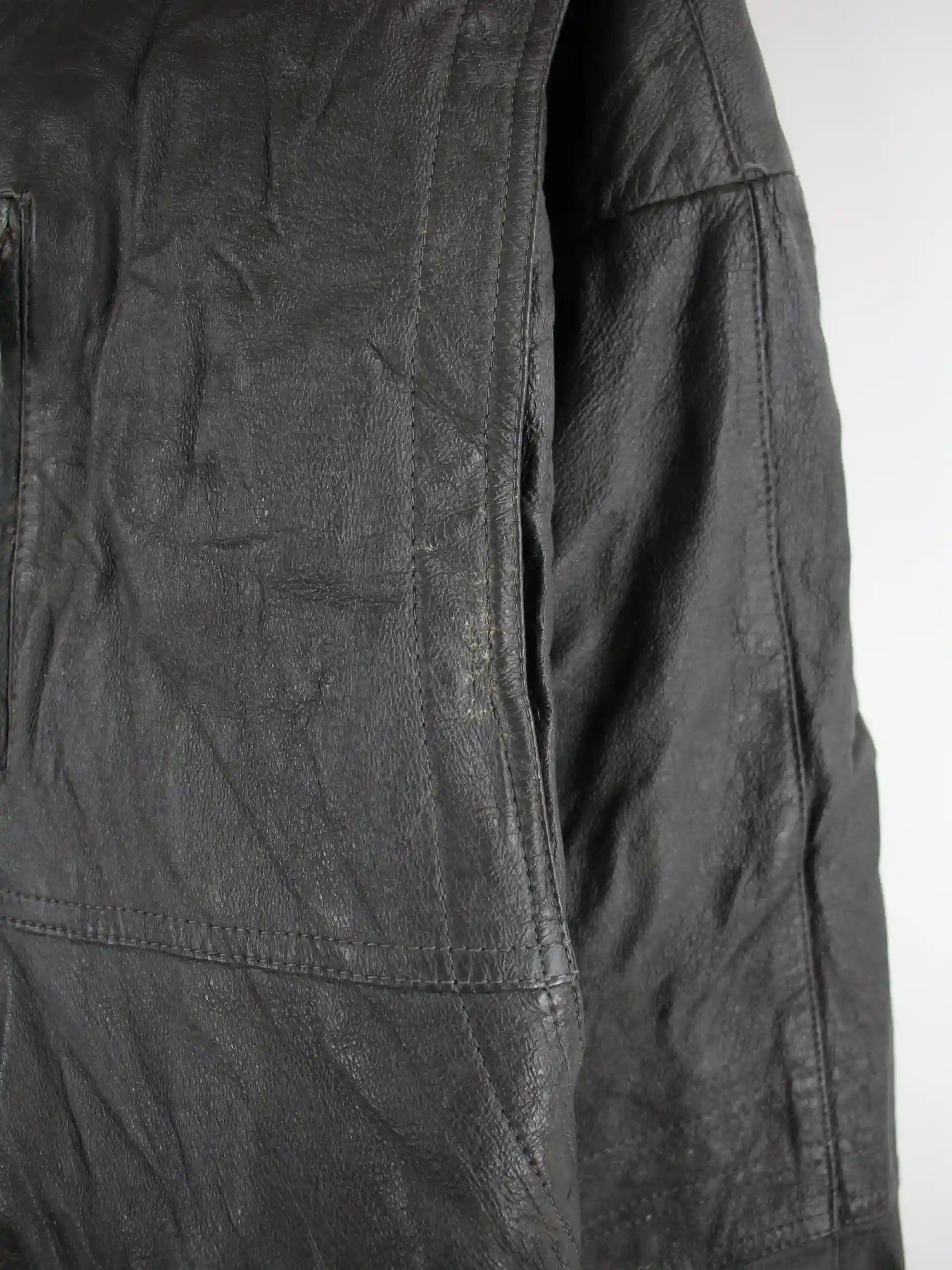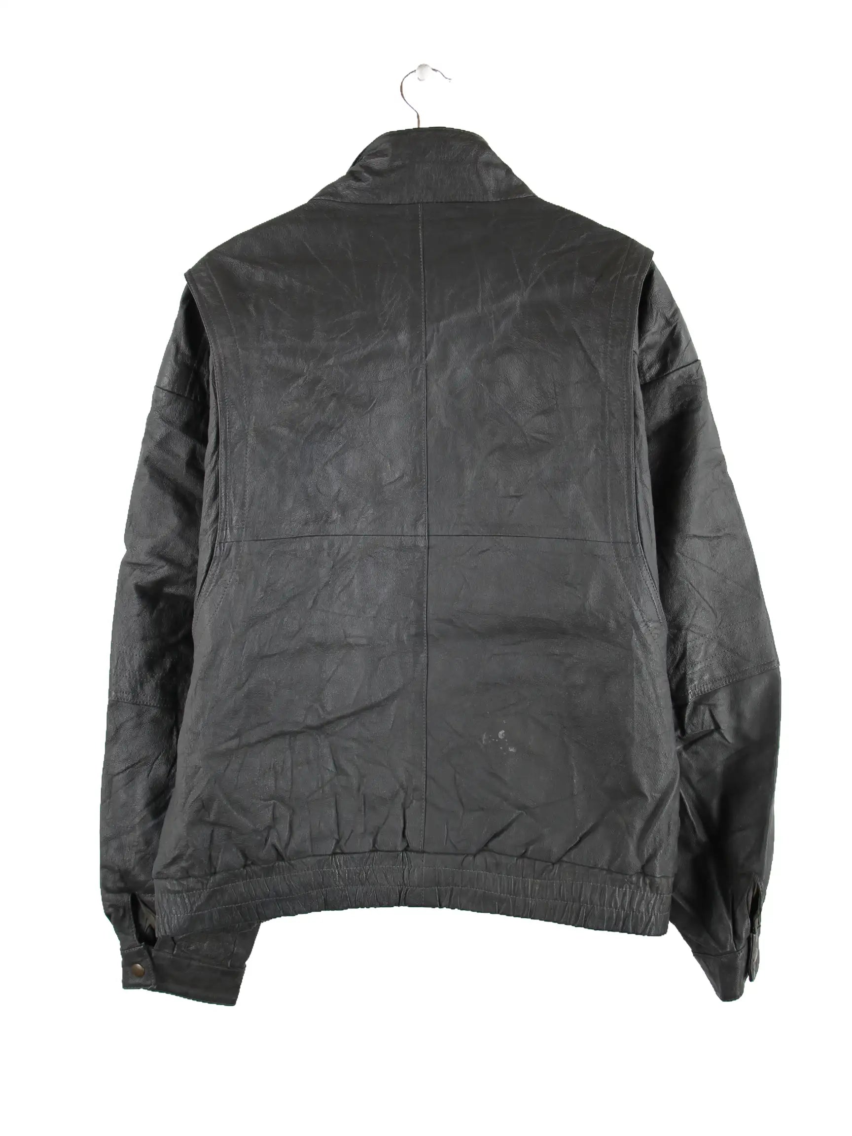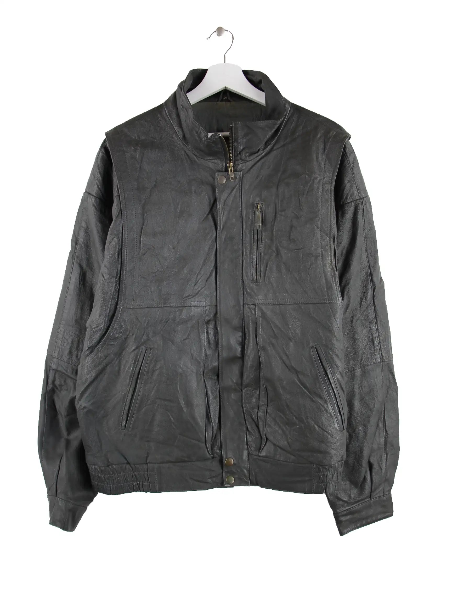 Vintage Jacke in Größe XL aus den 90'ern. Sie ist aus Leder gemacht und in Grau zu bekommen.