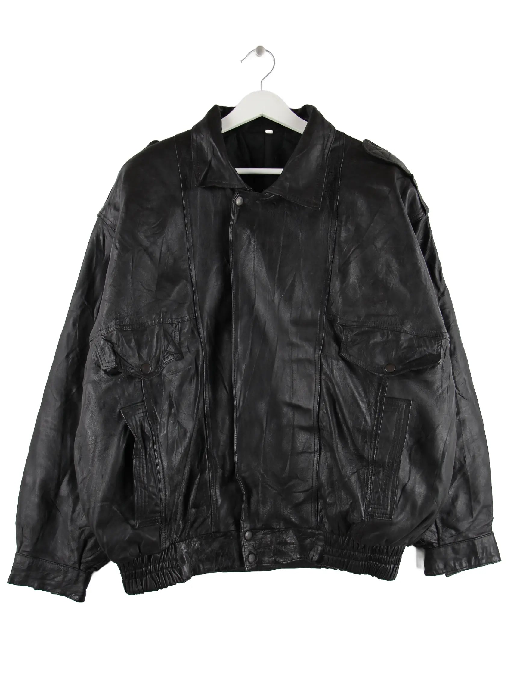 Schwarze Vintage Jacke aus den 90'ern in Größe M. Sie ist aus Leder angefertigt und in gutem Zustand im Bestand.