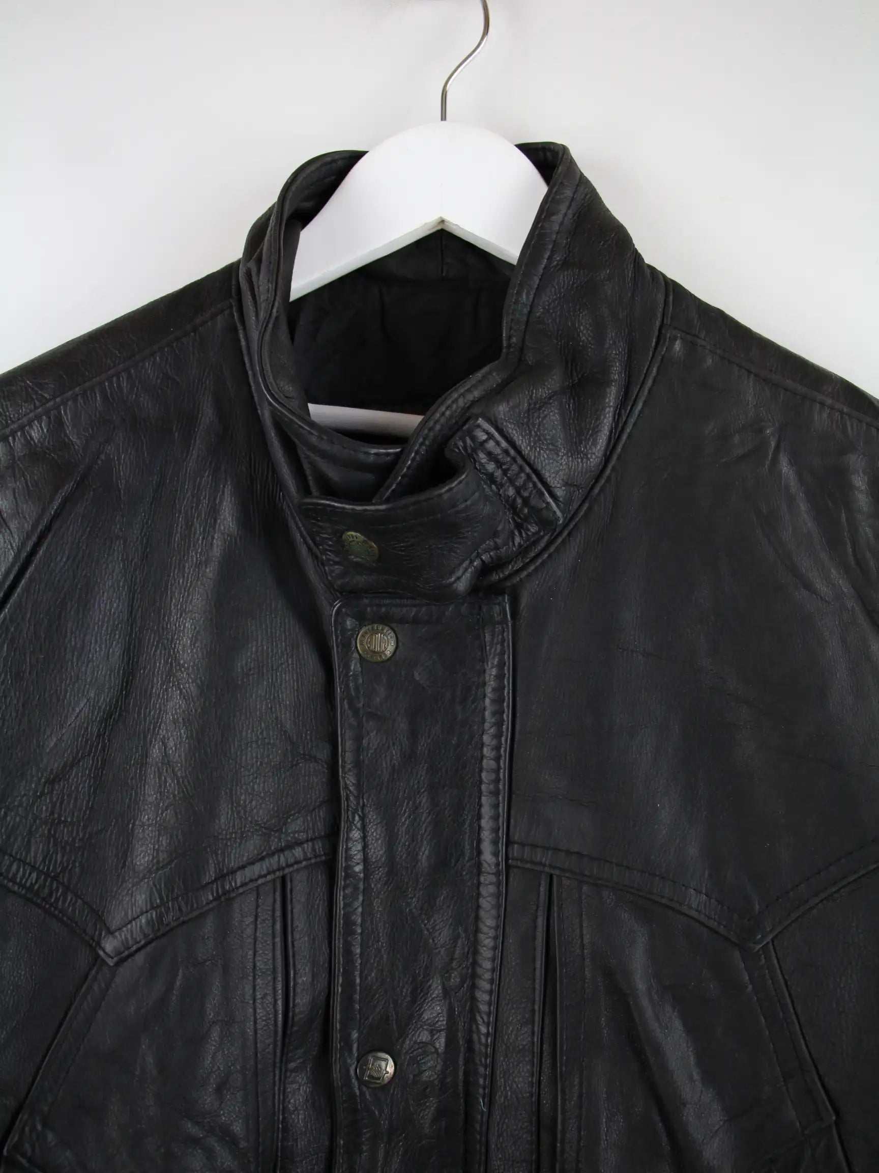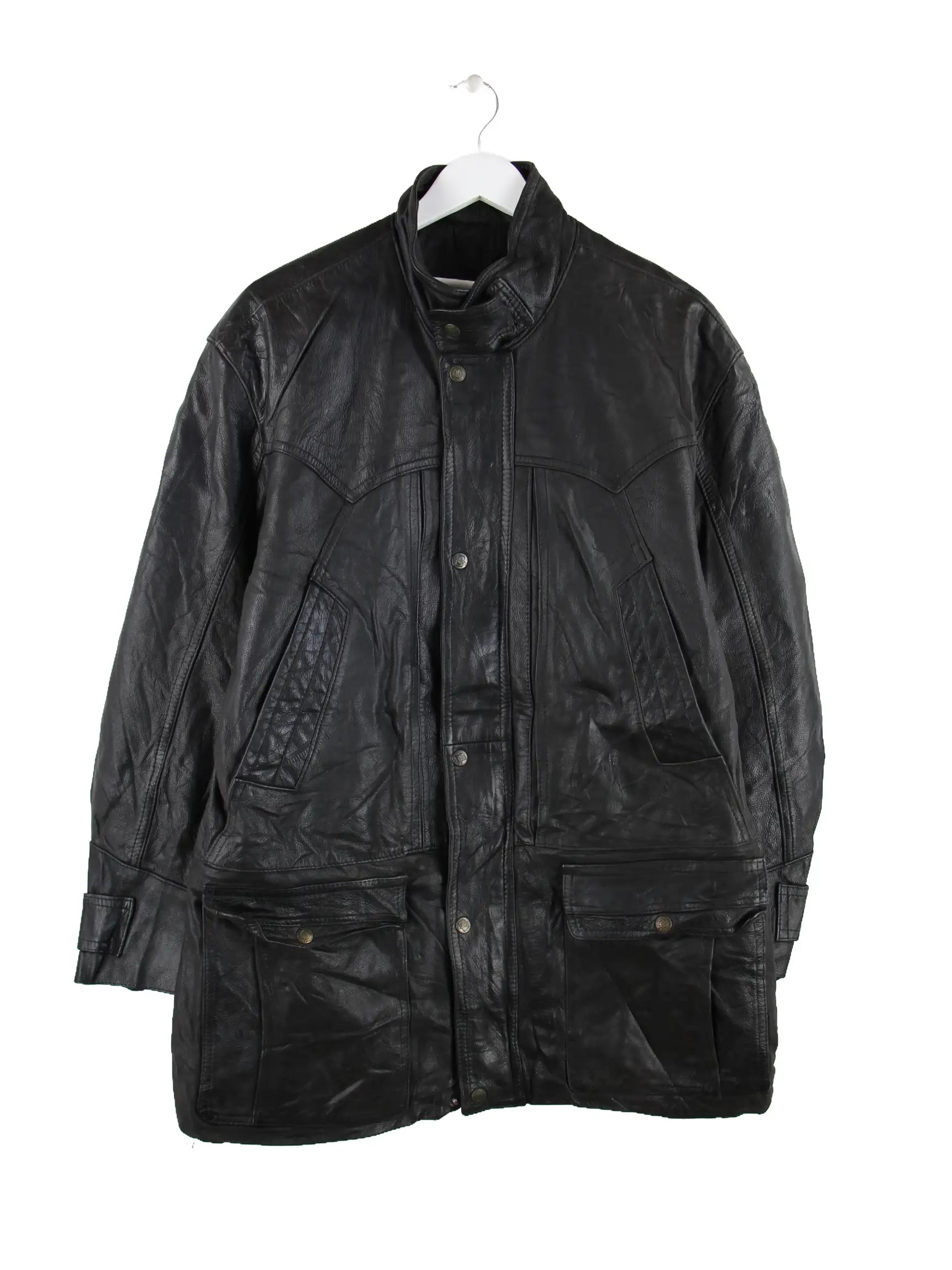 Schwarze Vintage Jacke aus den 90'ern in Größe M. Sie ist aus Leder hergestellt und in sehr gutem Zustand lieferbar.