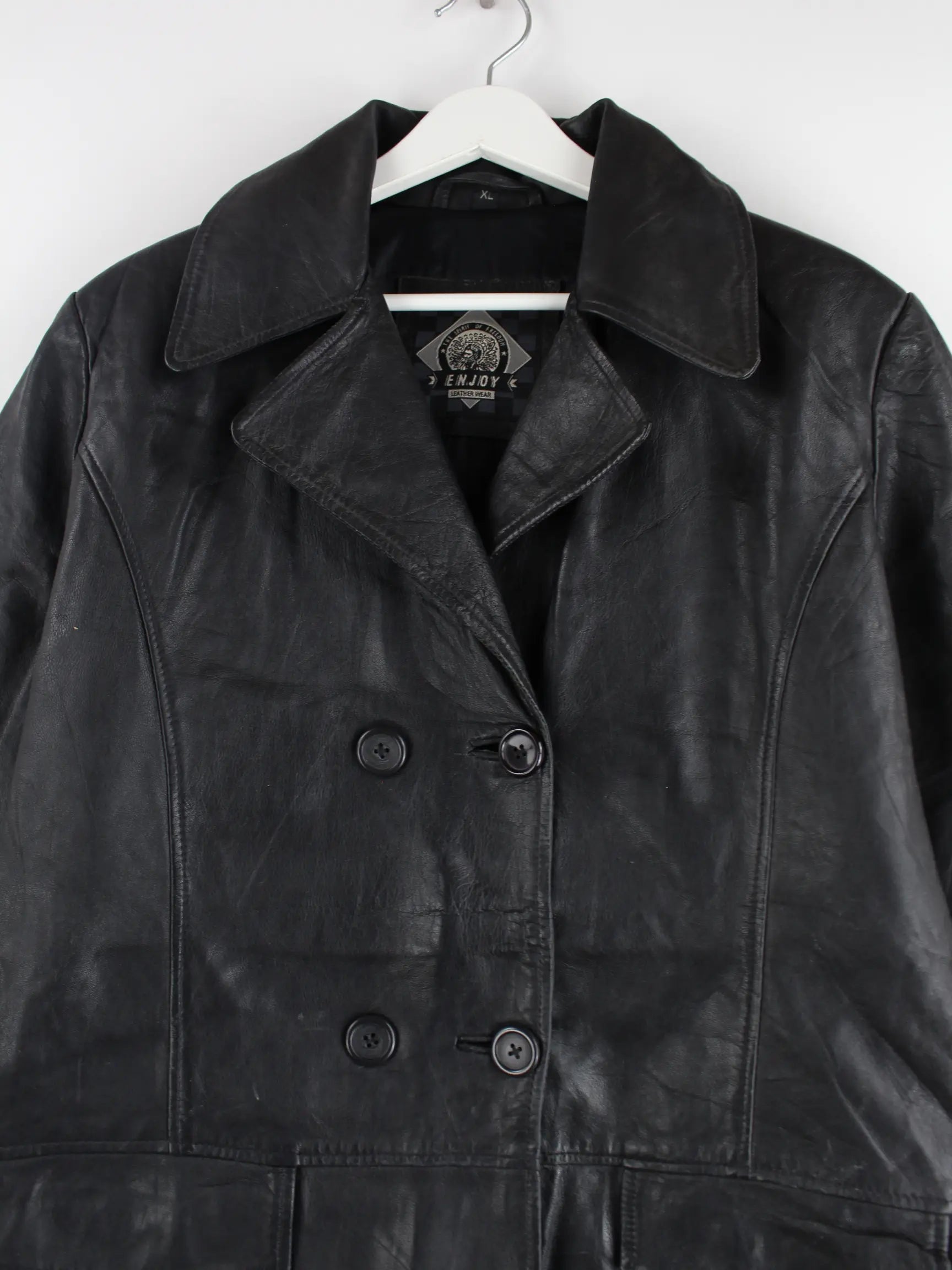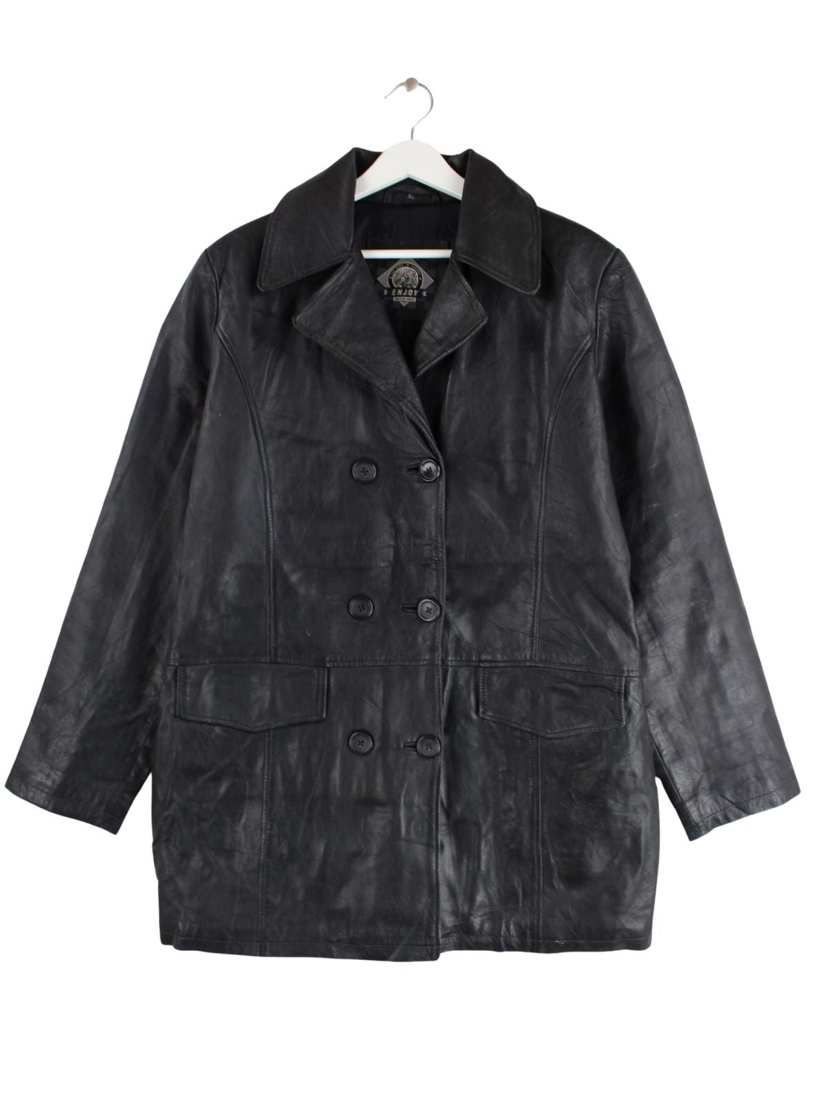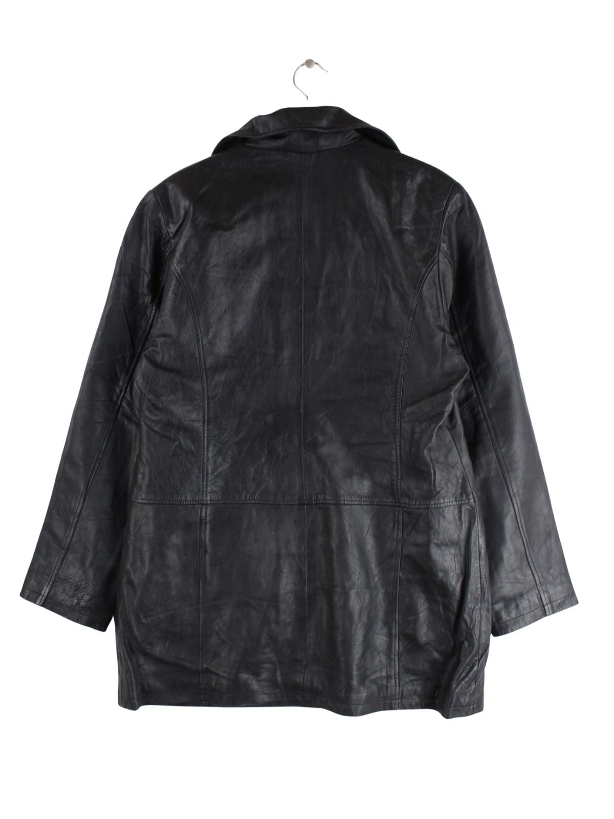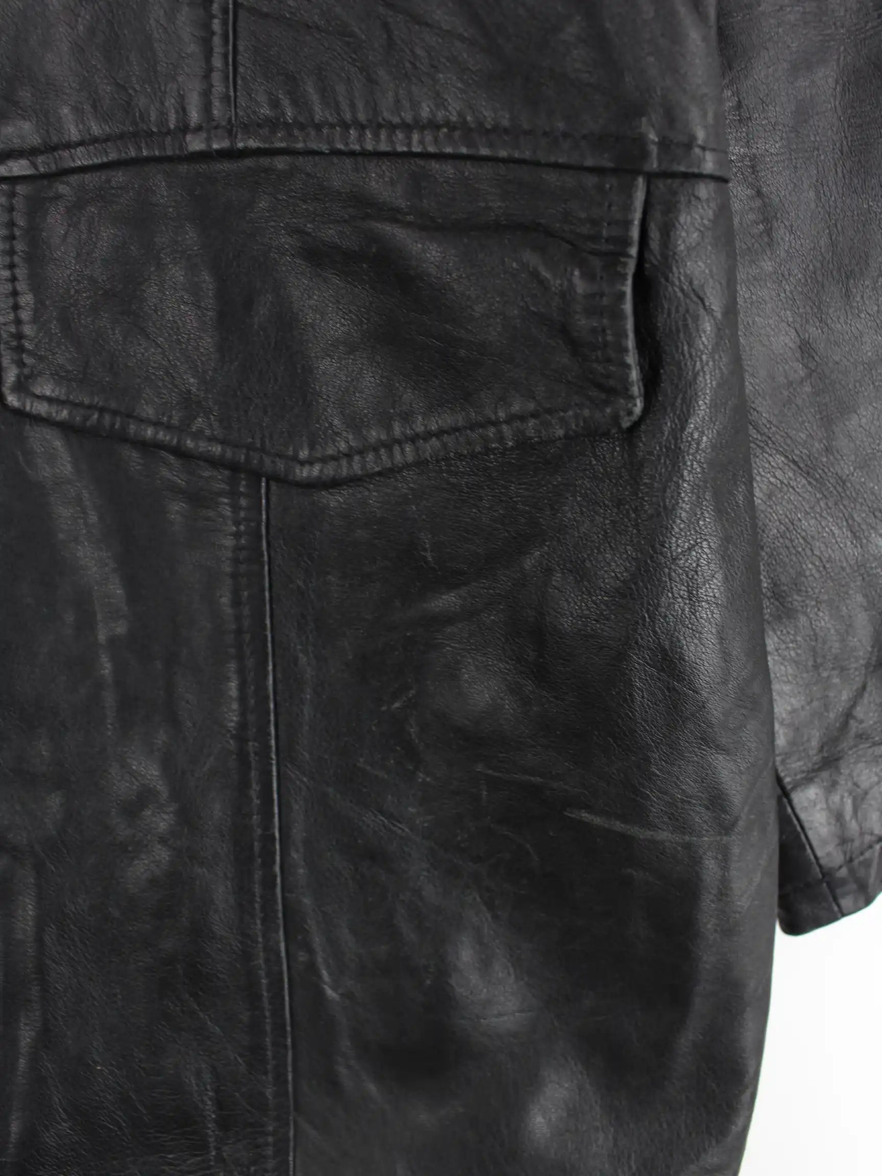Schwarze Vintage Jacke aus den 90'ern in Größe XL. Sie ist aus Leder gemacht und in gutem Zustand im Bestand.