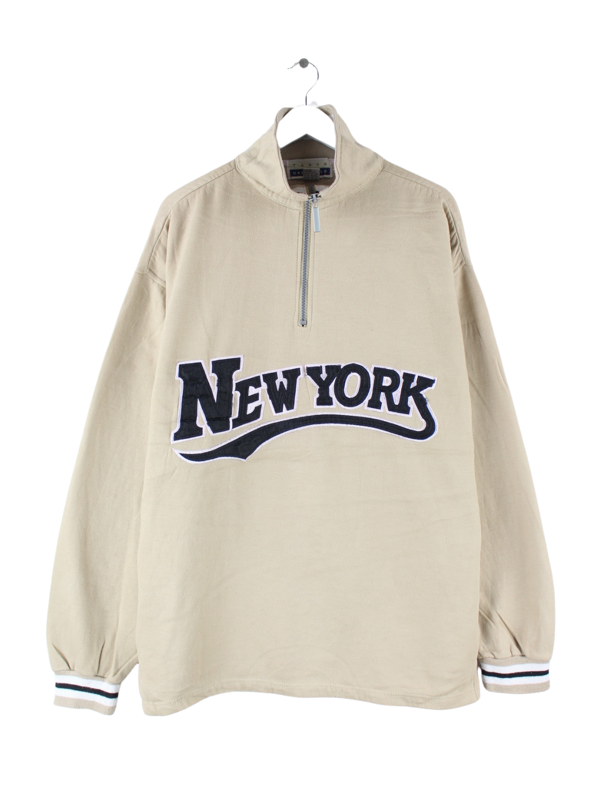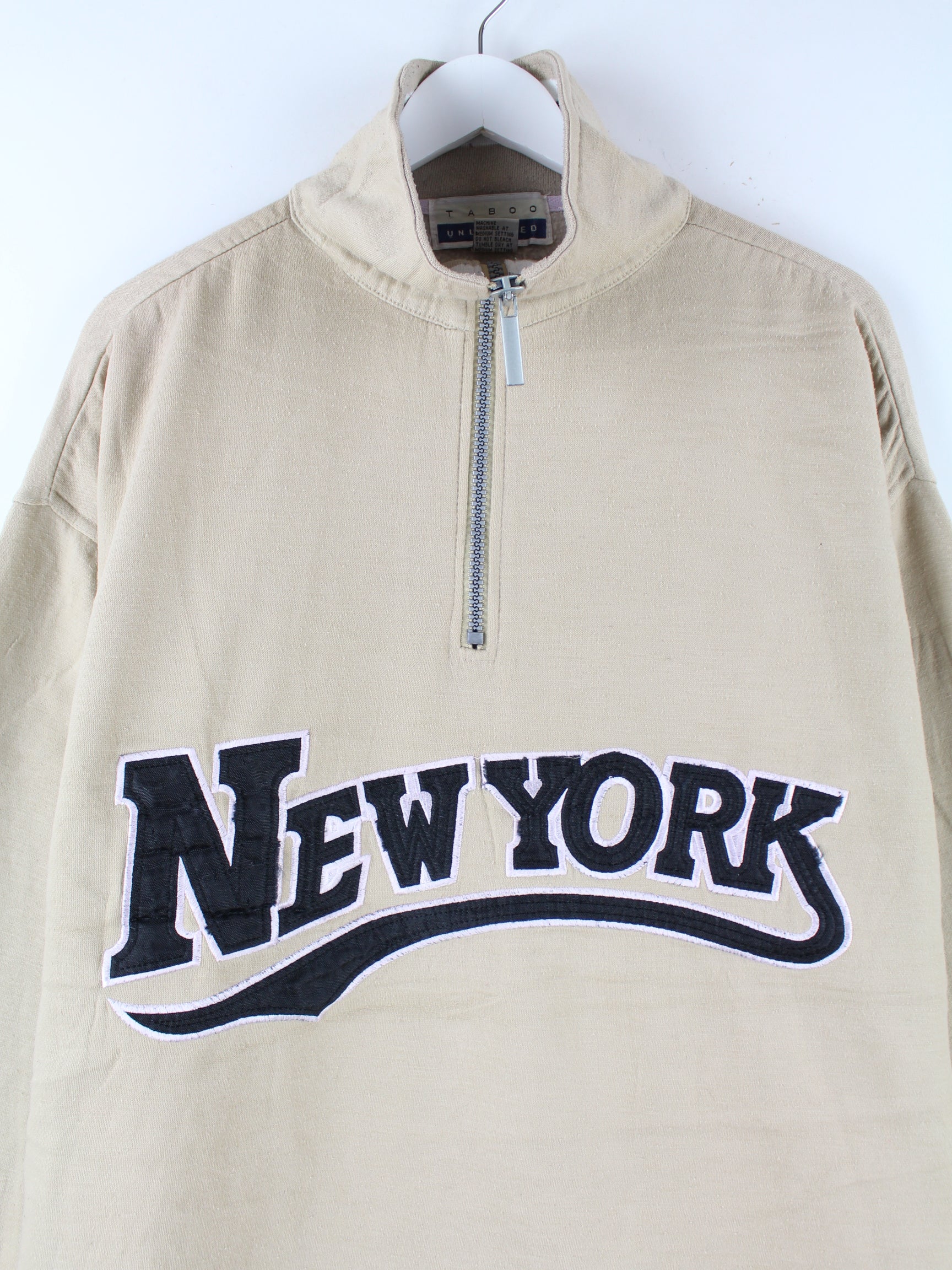 Vintage 90s New York Embroidered Half Zip Sweater Beige XXL