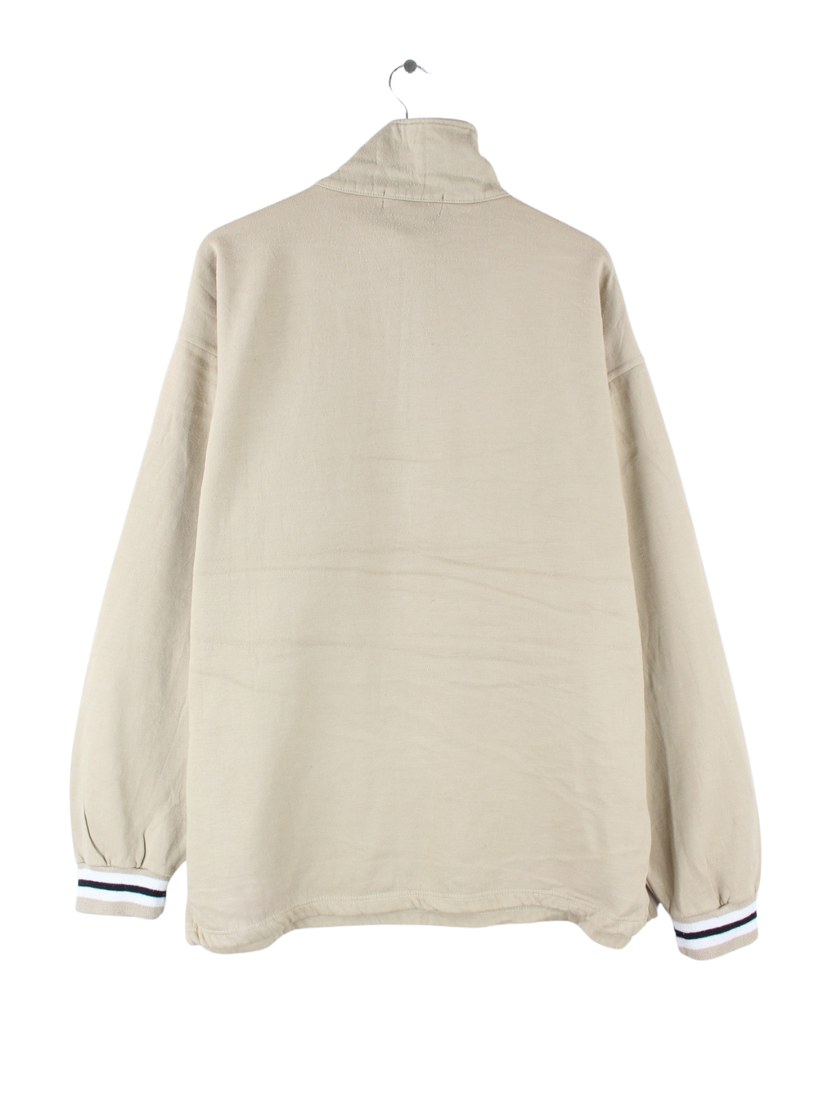 Beigefarbener Vintage Sweater mit Stick und kurzem Reißverschluß aus den 90'ern in Größe XXL. Er ist aus einer Baumwollmischung und in sehr gutem Zustand auf Lager.