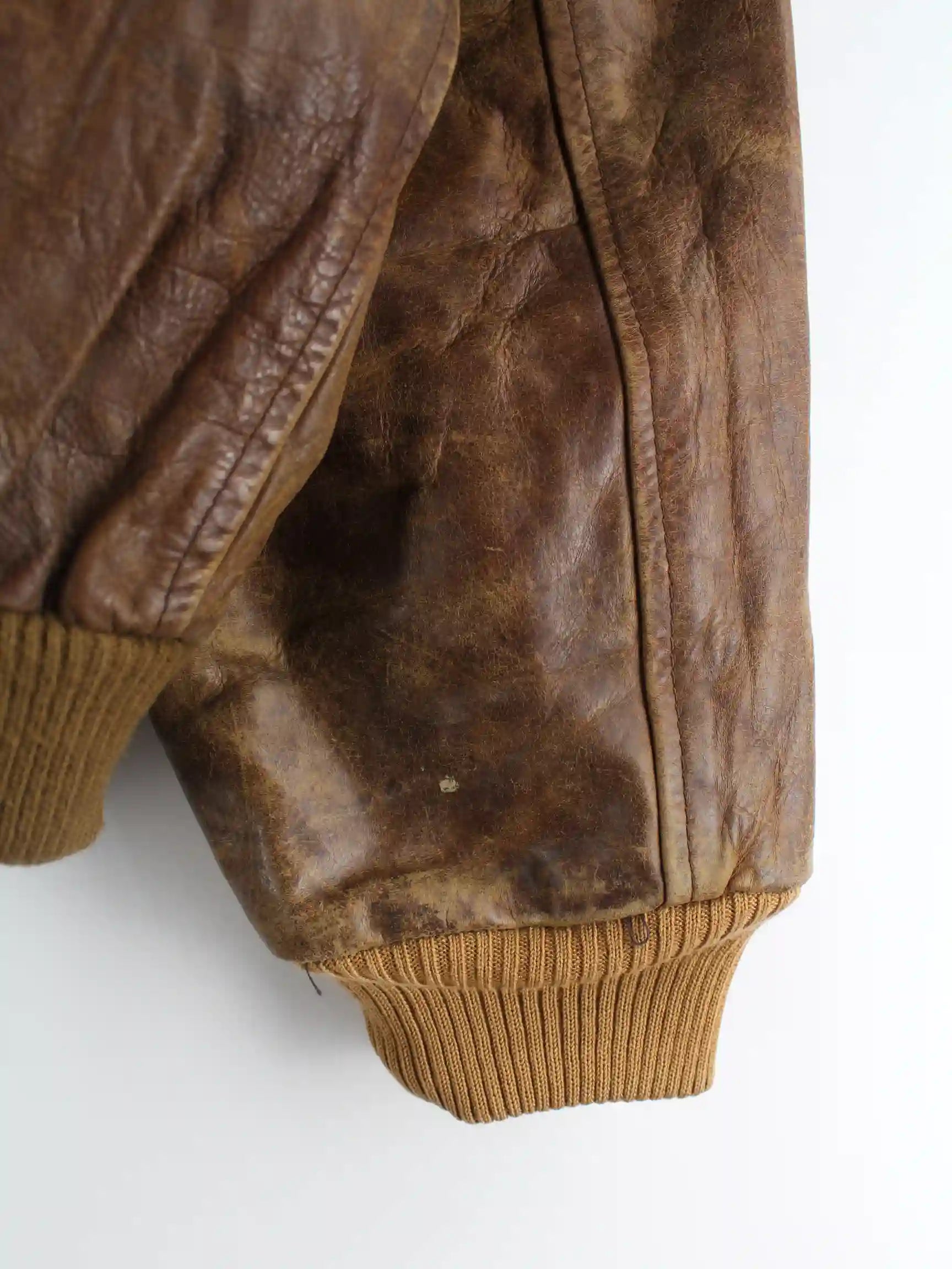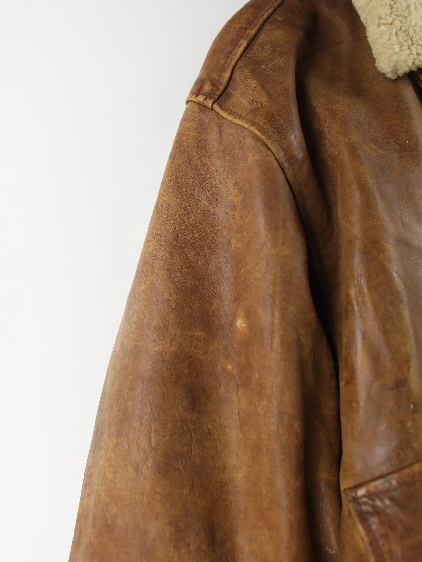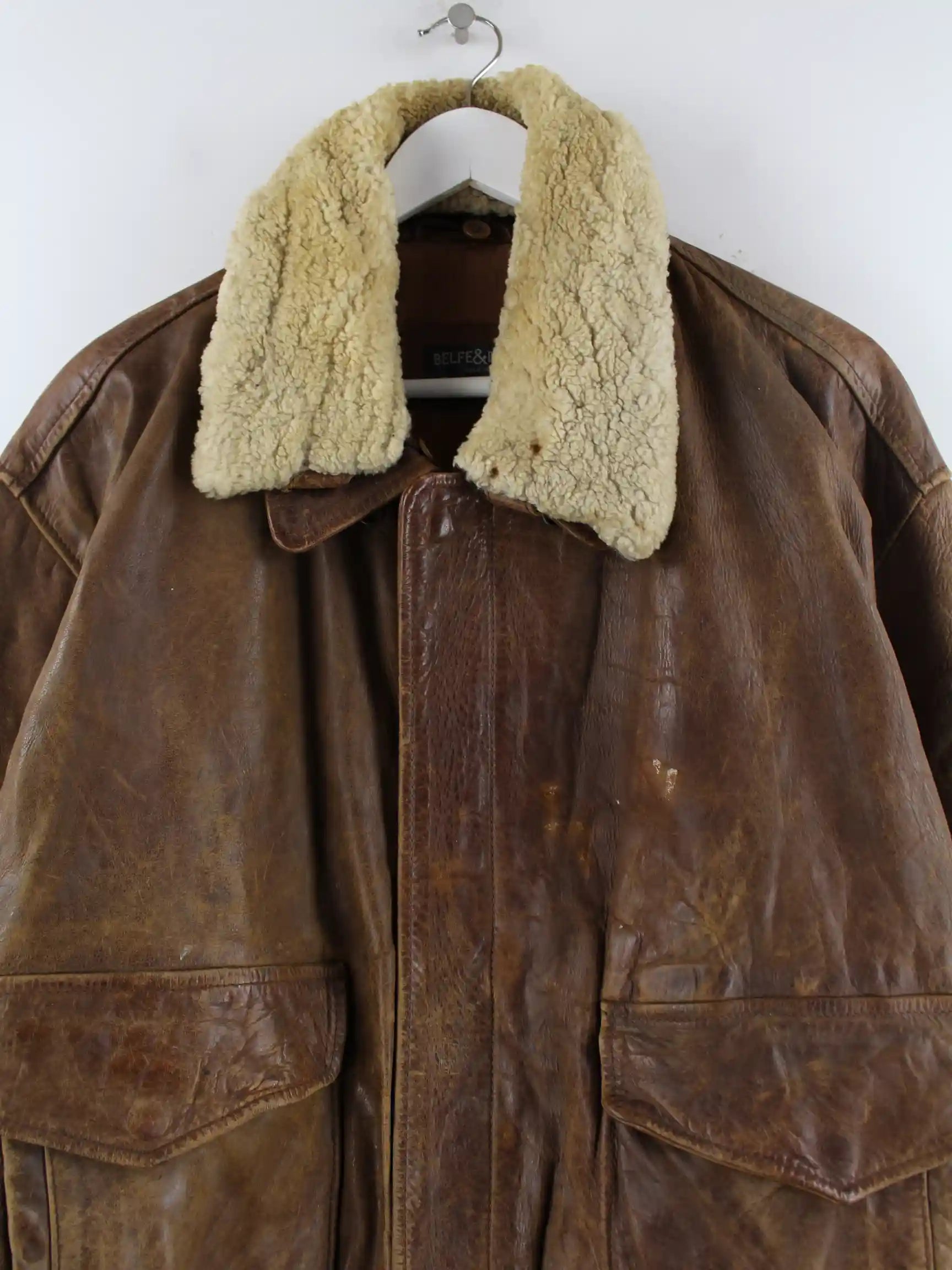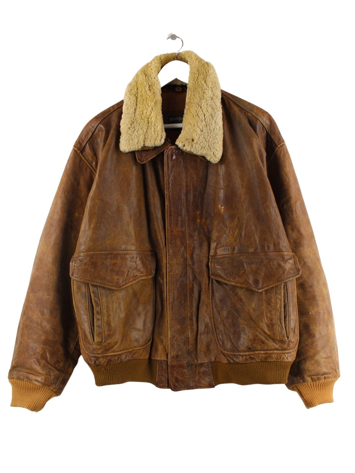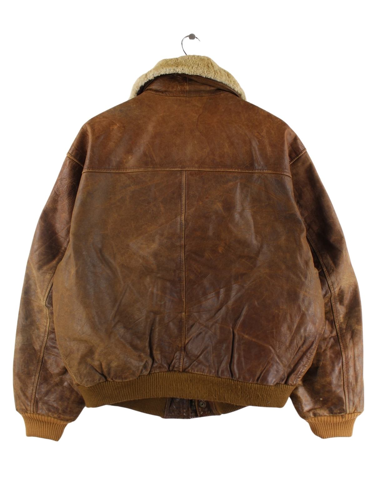 Braune Vintage Jacke aus den 90'ern in Größe XL. Sie ist aus Leder . Den Zustand würden wir als 'In Ordnung' bezeichnen (vergl. Bilder).
