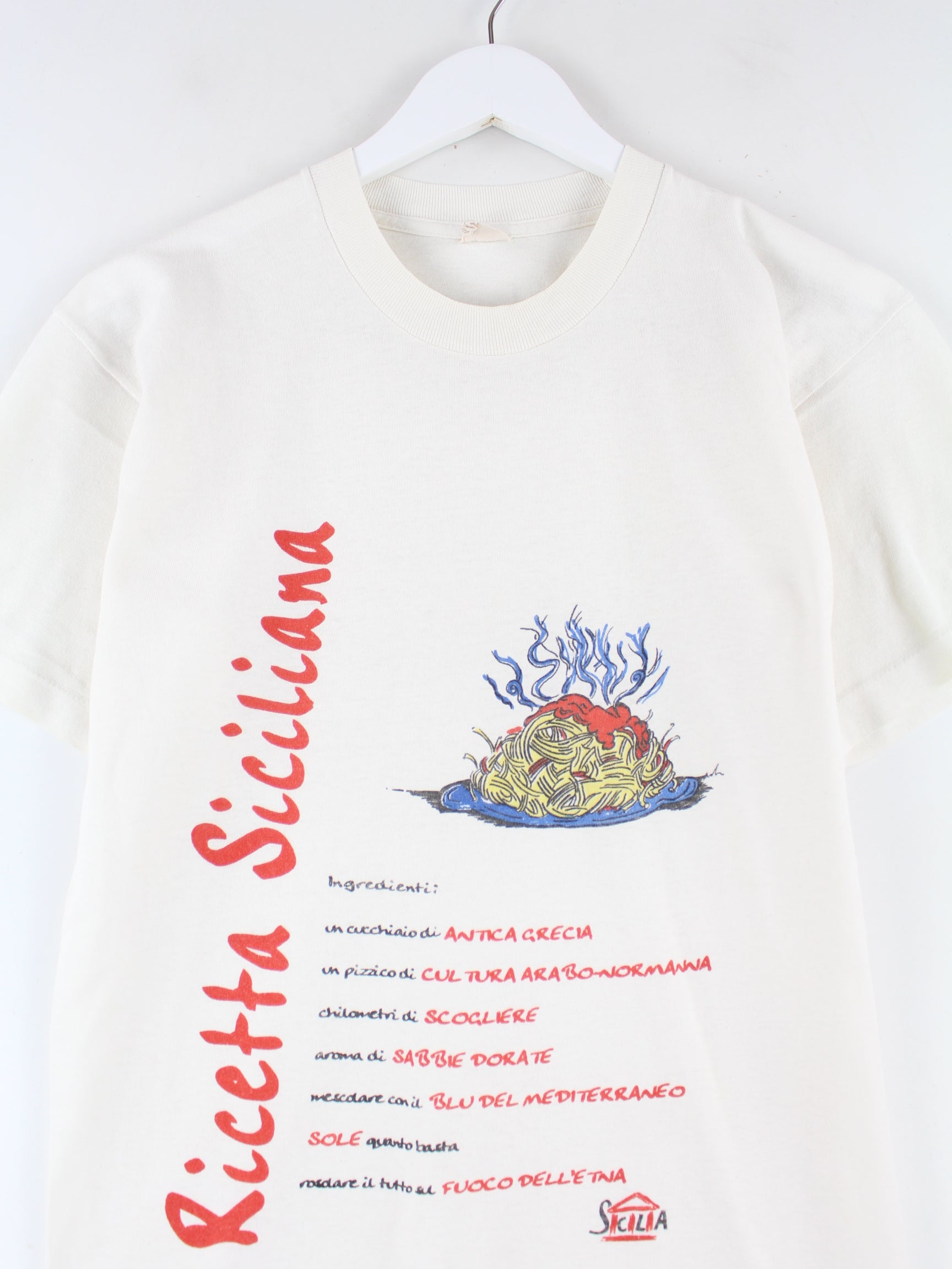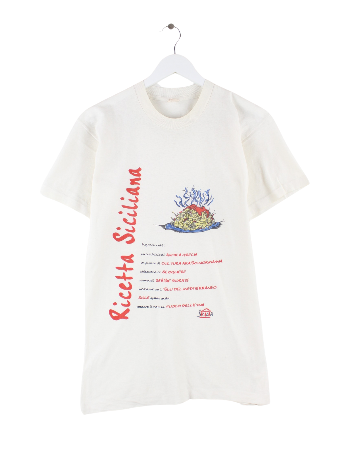 White vintage T-shirt from the 90's in size M. It is made of cotton and in very good condition. With a chic 90's print.