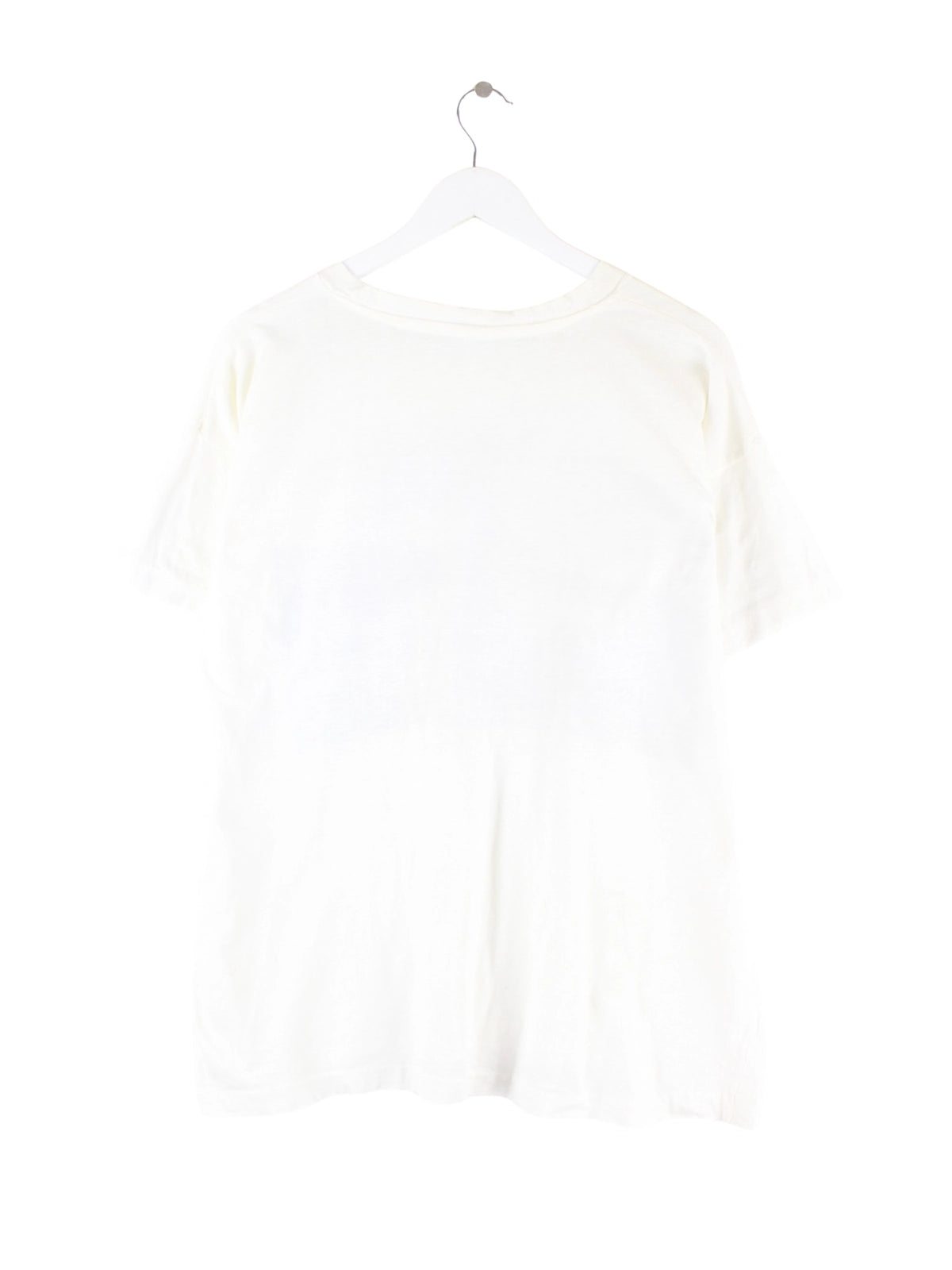 Vintage T-Shirt in Größe L aus den 90'ern. Es ist aus Baumwolle hergestellt und in Weiß in Stock.