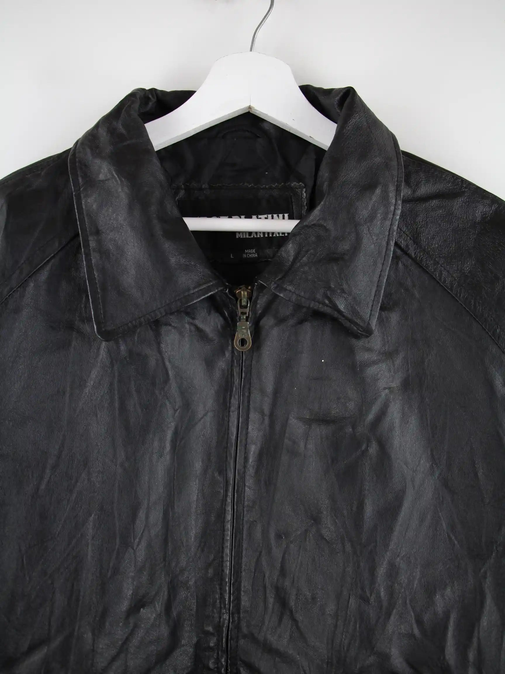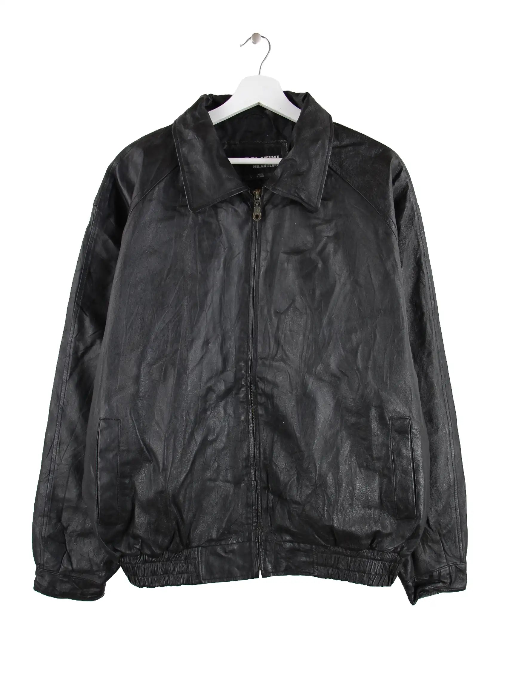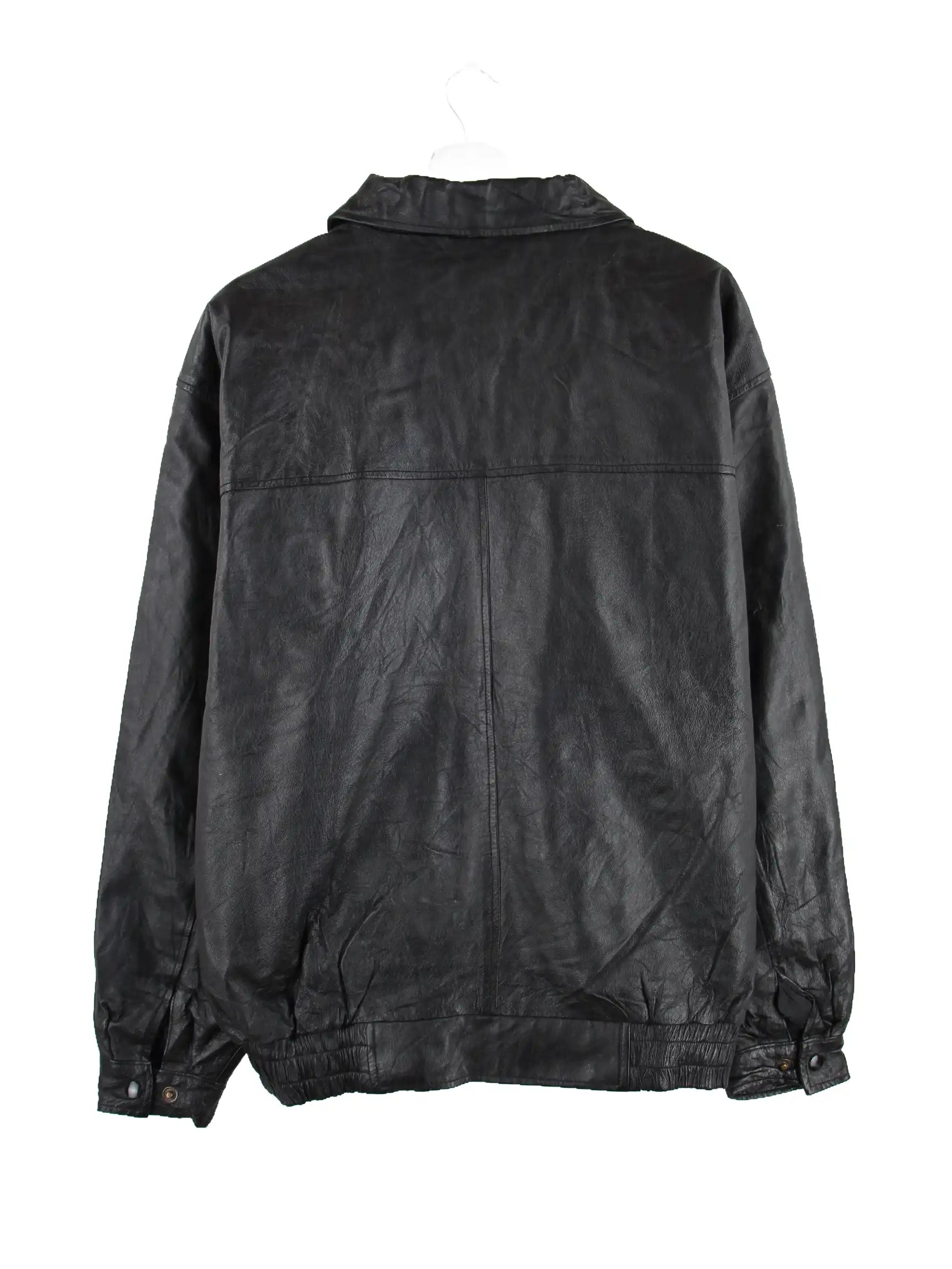 Schwarze Vintage Jacke aus den 90'ern in Größe L. Sie ist aus Leder gefertigt und in gutem Zustand im Bestand.