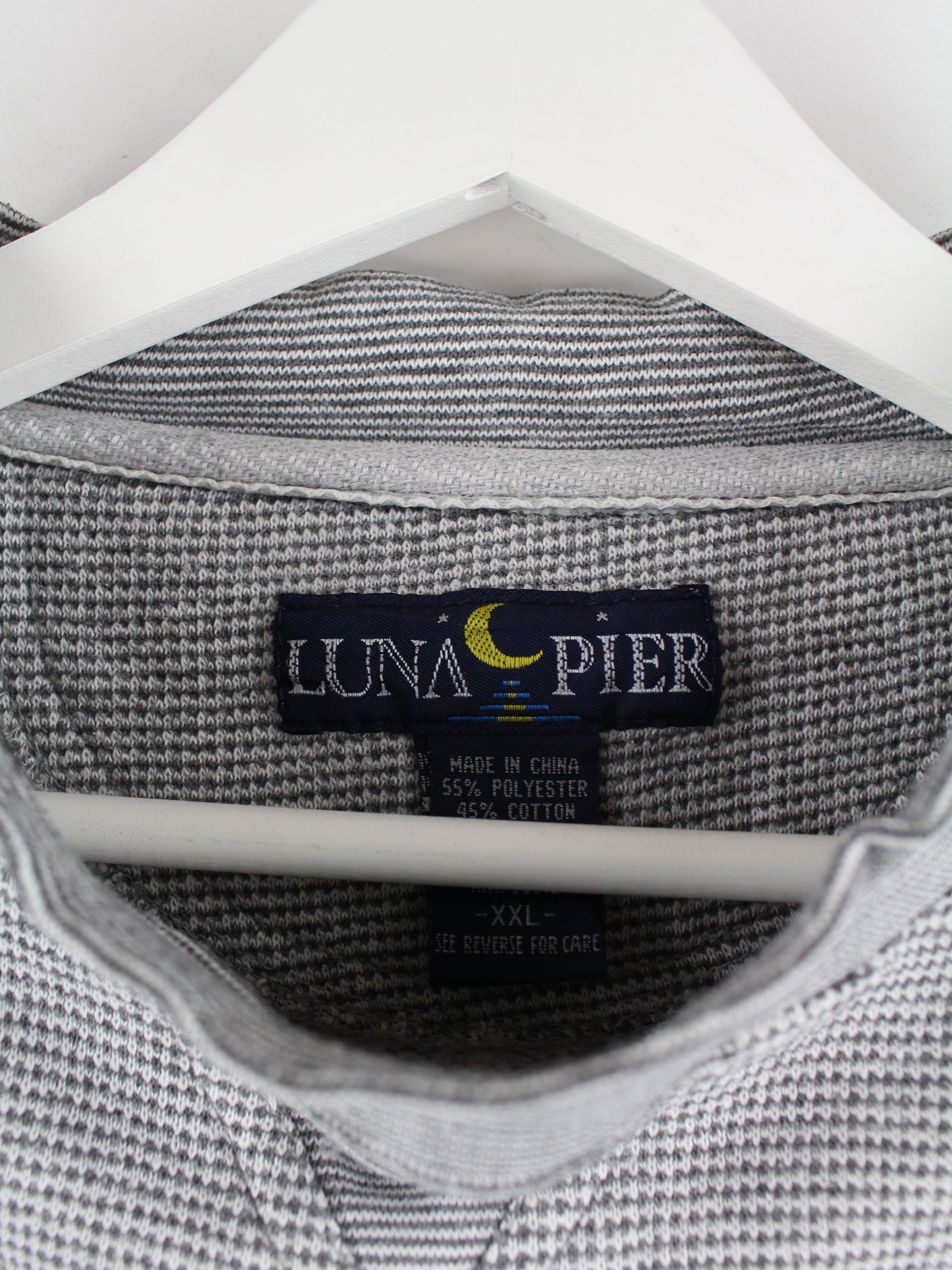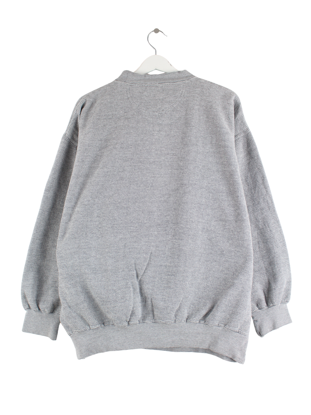 Grey vintage sweater with embroidery from the 90's in size XL. It is made of a cotton blend and in good condition in stock.