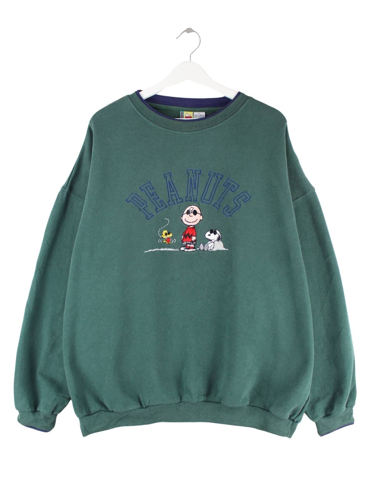 Vintage 90s Snoopy Peanuts Embroidered Sweater Grün 3XL