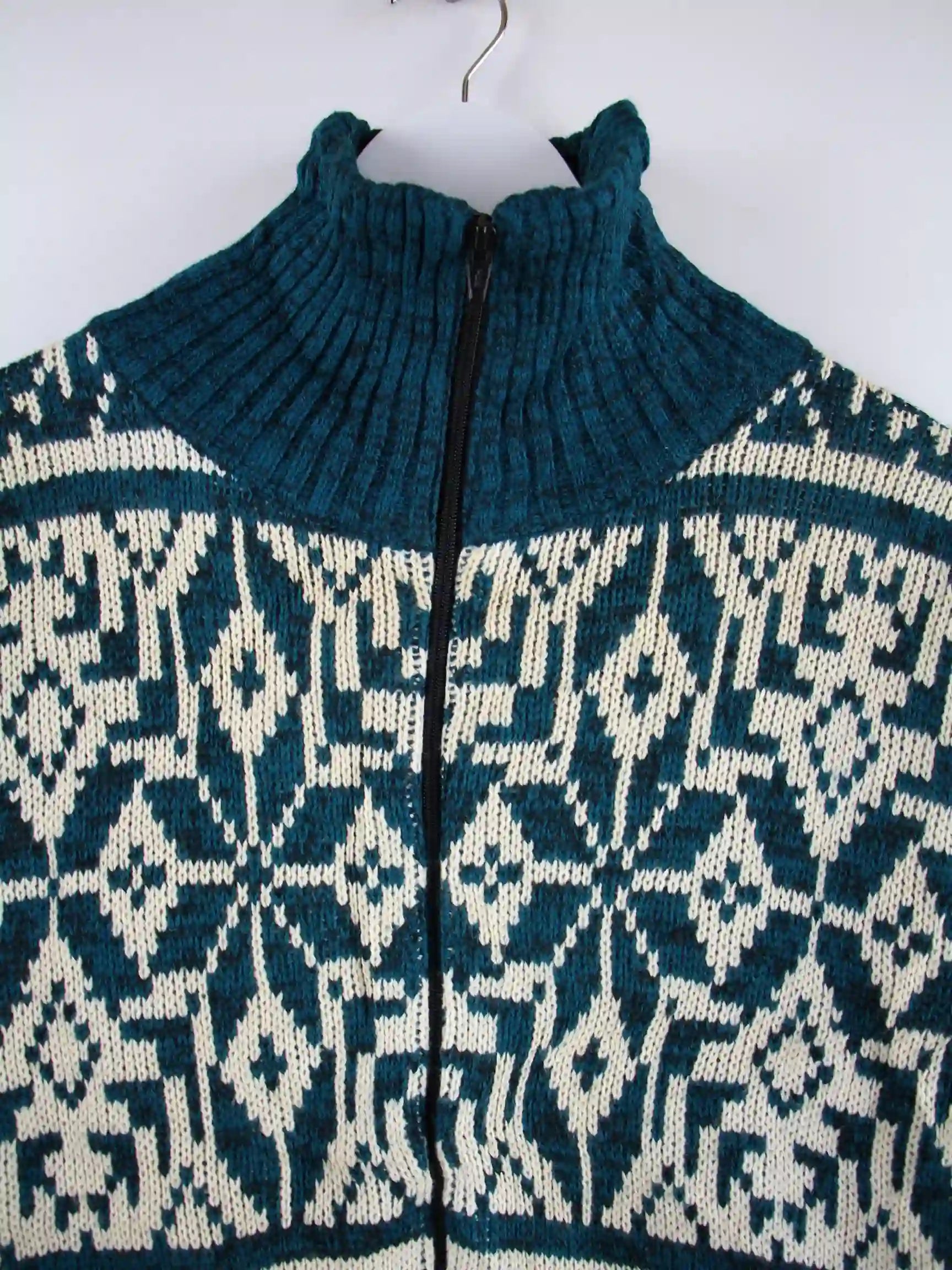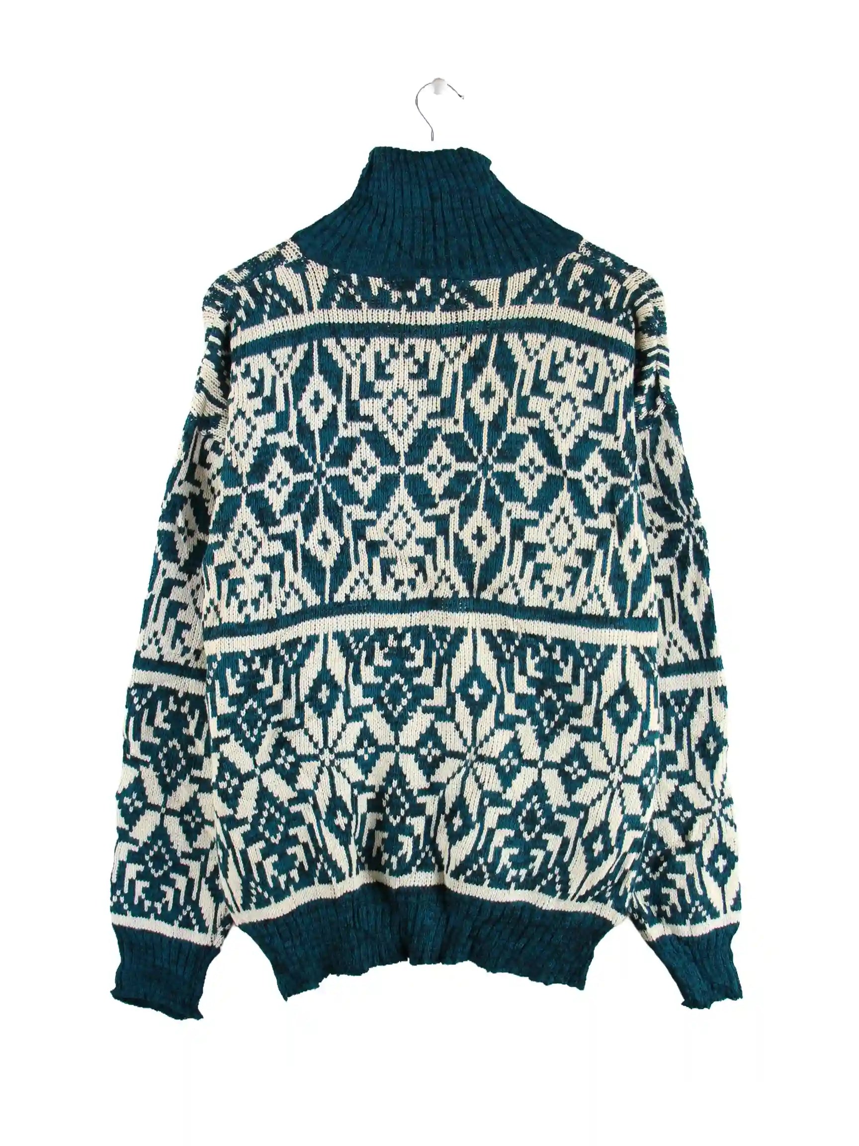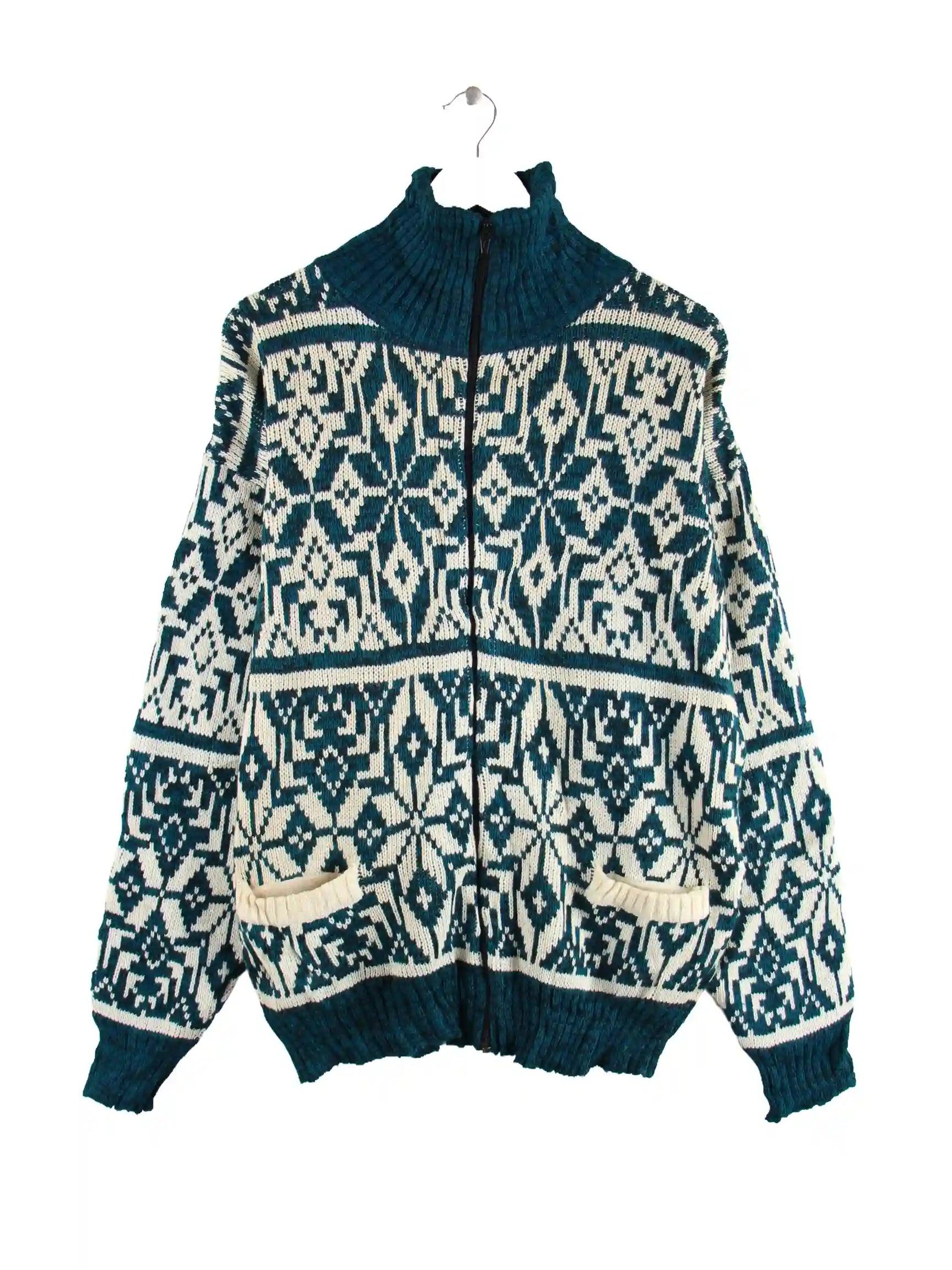 Vintage Strickjacke in Größe L aus den 90'ern. Sie ist aus Acryl angefertigt und in Grün in Stock.