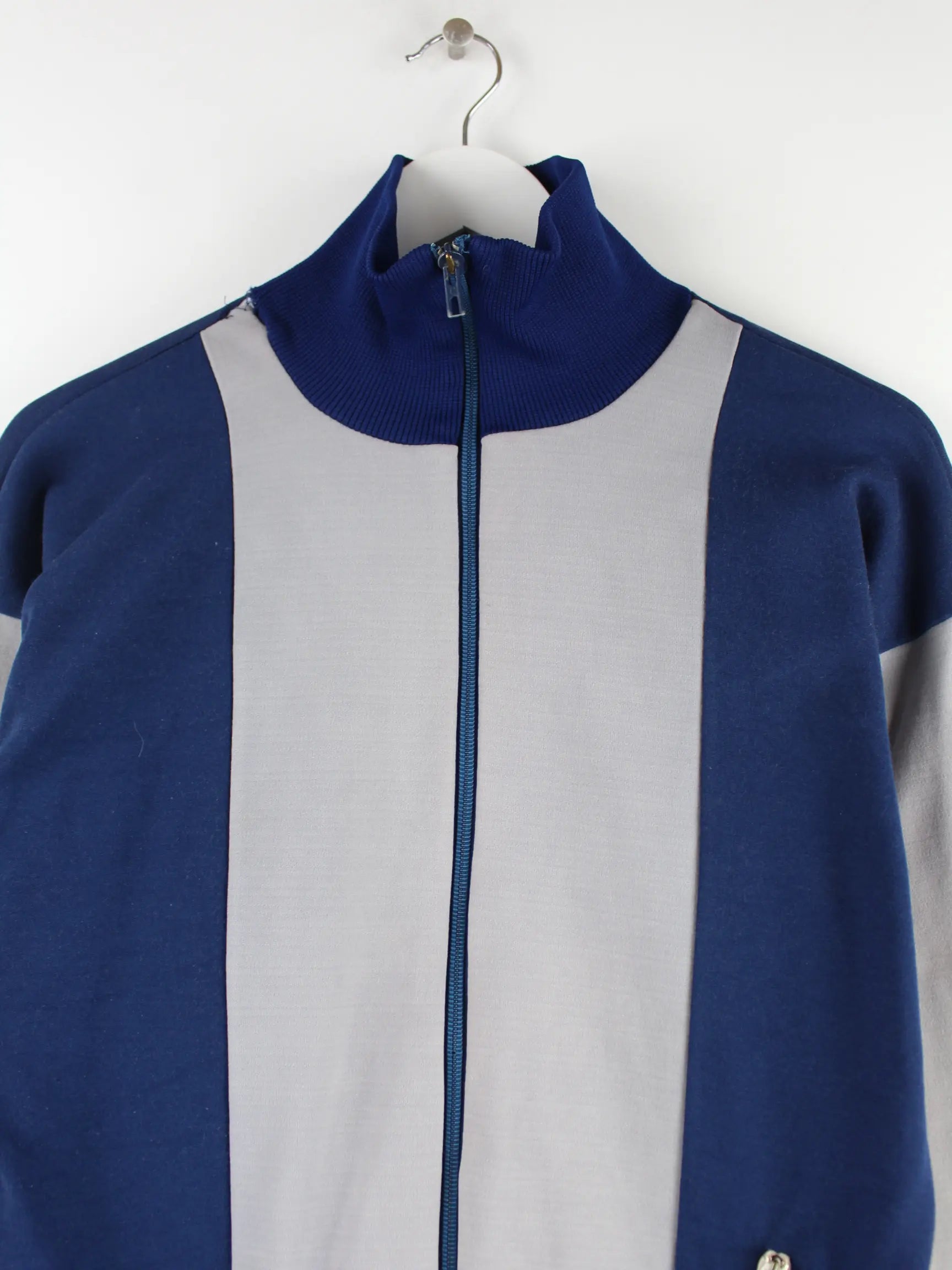 Vintage Trainingsjacke in Größe S aus den 90'ern. Sie ist aus Synthetik produziert und in Blau bei uns zu bekommen.