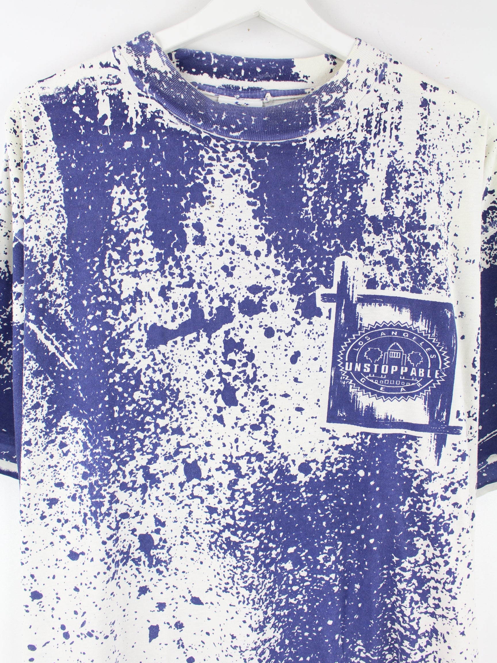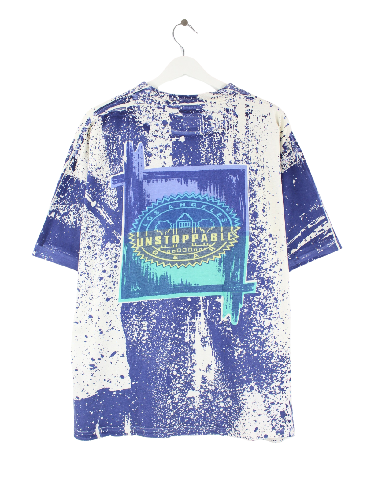 Vintage 90s Unstoppable Colour Splash Print T-Shirt Blau L