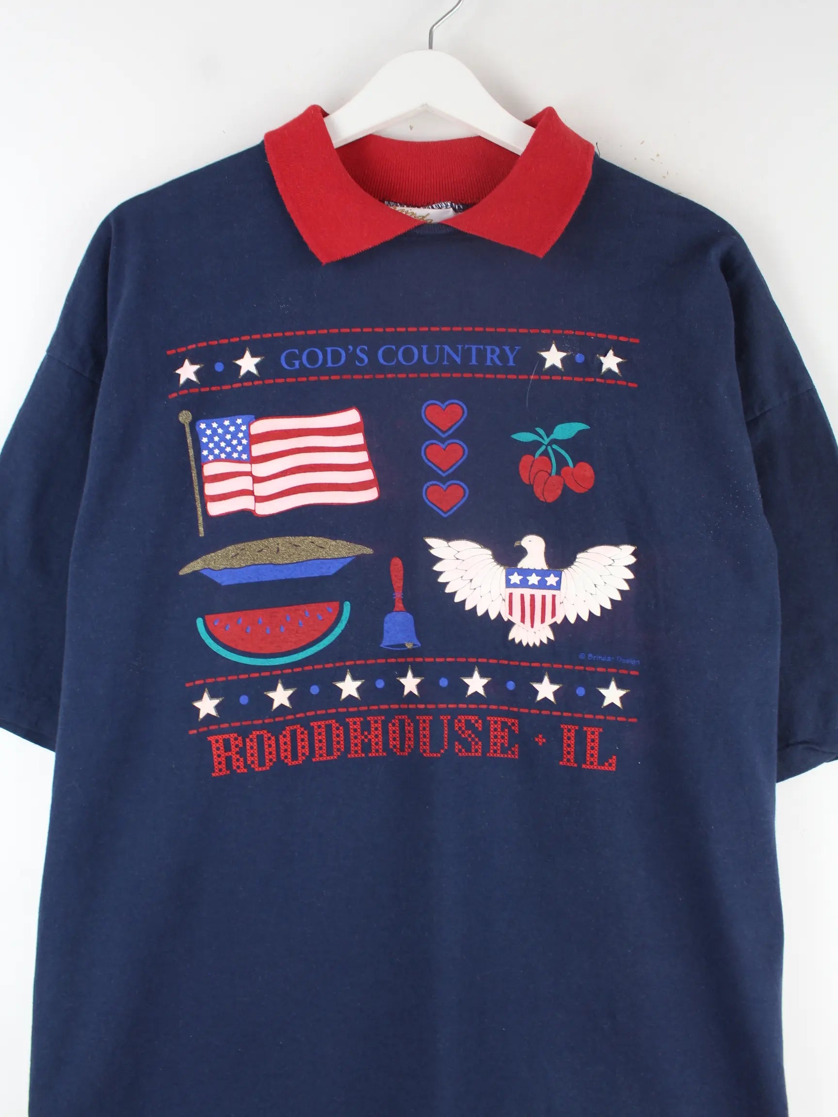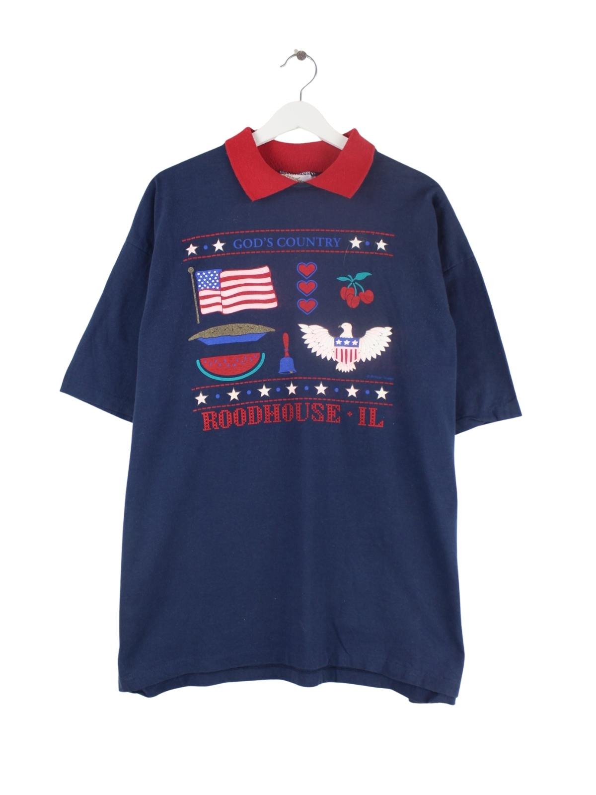 Vintage T-Shirt in Größe XL aus den 90'ern. Es ist aus Baumwolle und in Blau vorrätig. Mit schickem USA Print.