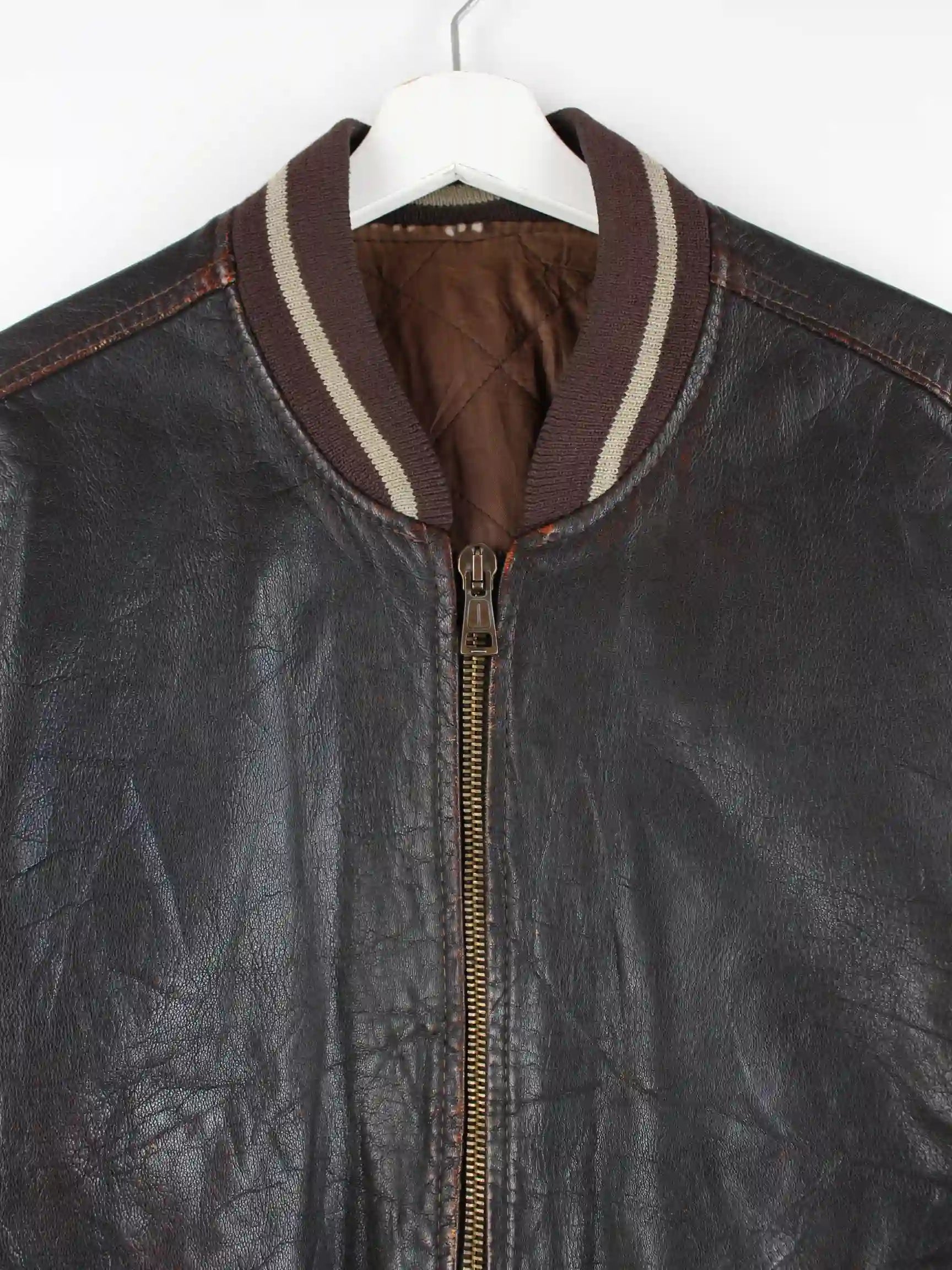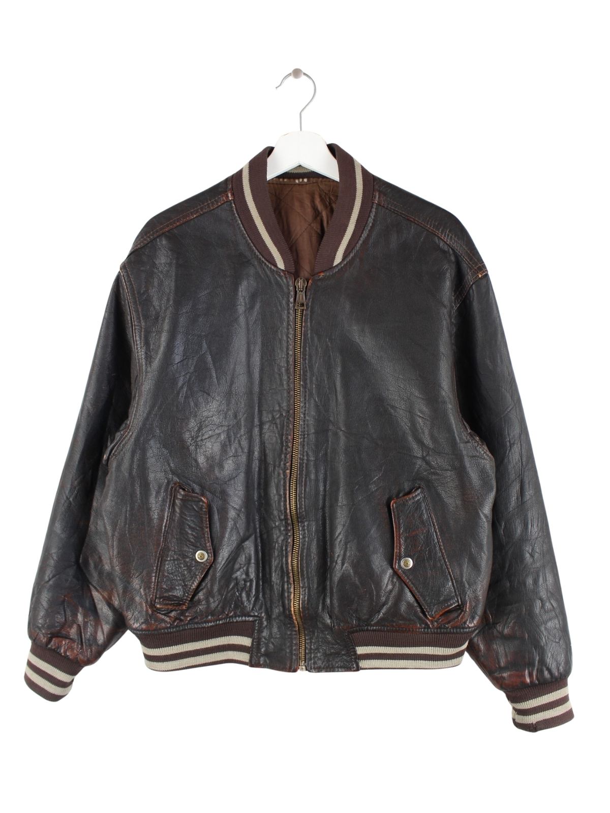 Vintage 90s Varsity Leder Jacke Braun M