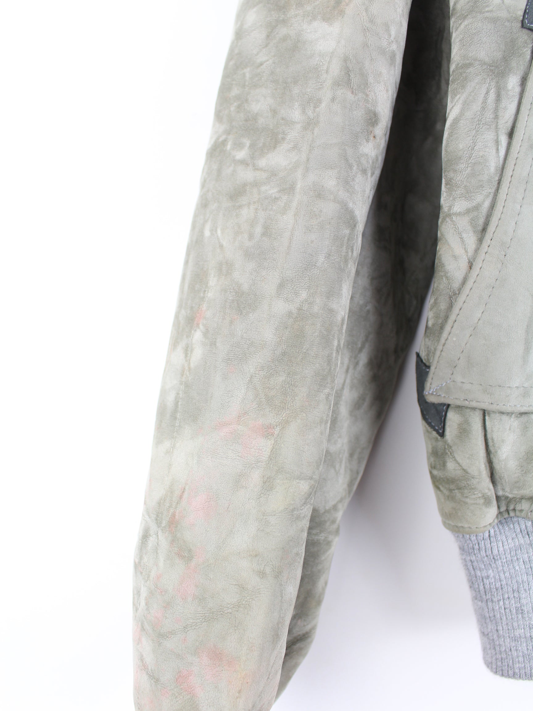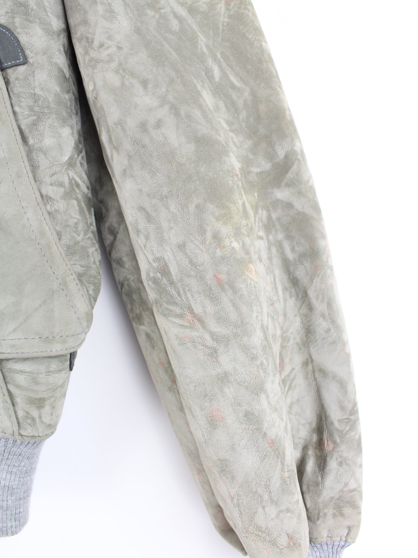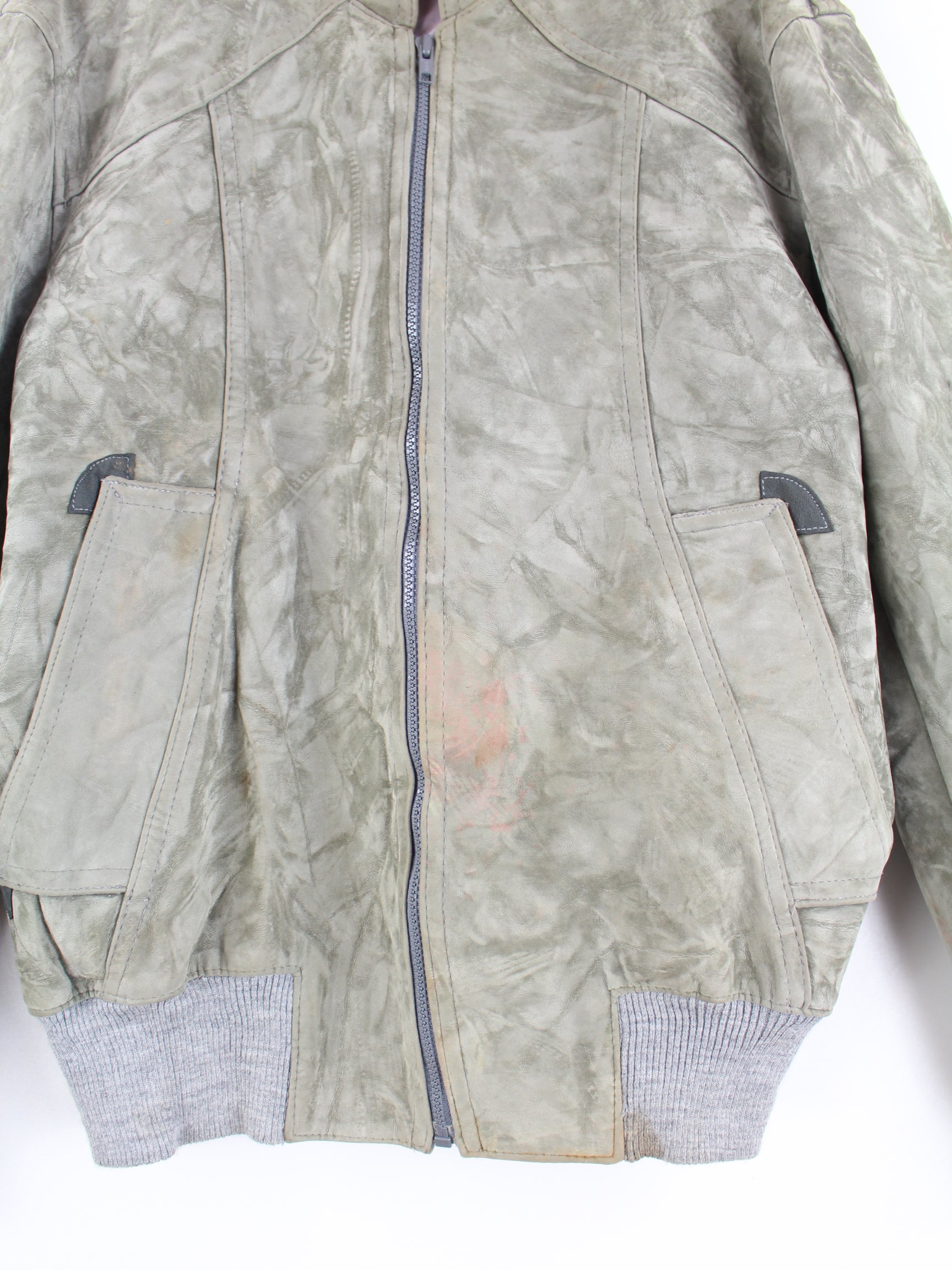 Grey vintage jacket with long zipper from the 90's in size S. It is made of leather and is available from us in good condition.