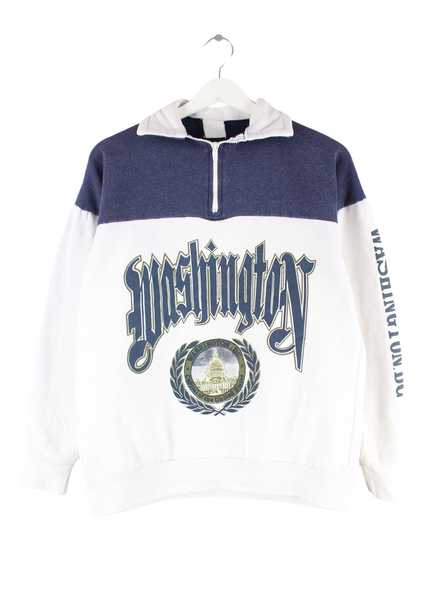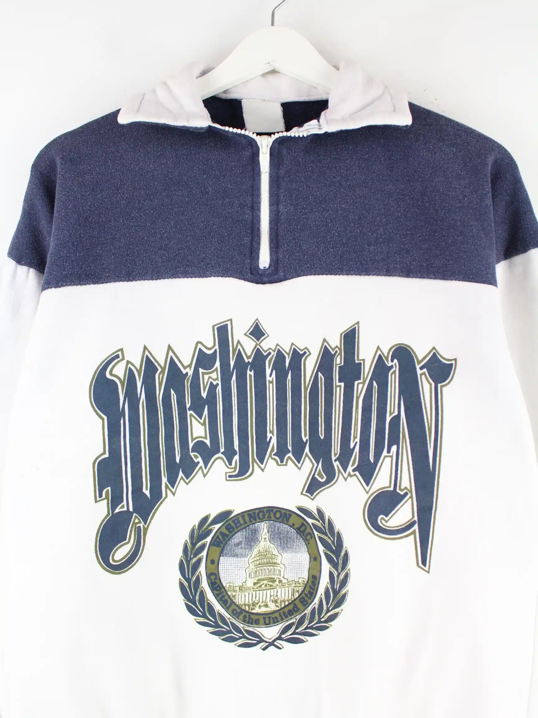 Vintage 90s Washington DC Print Half Zip Sweater Weiß S