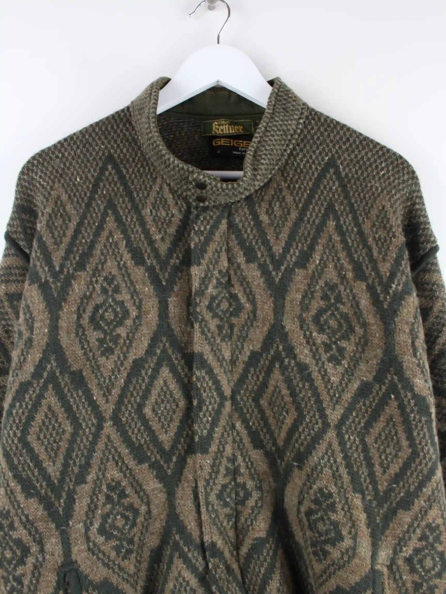 Grüne Vintage Strickjacke aus den 90'ern in Größe L. Sie ist aus Wolle hergestellt und in gutem Zustand auf Lager.