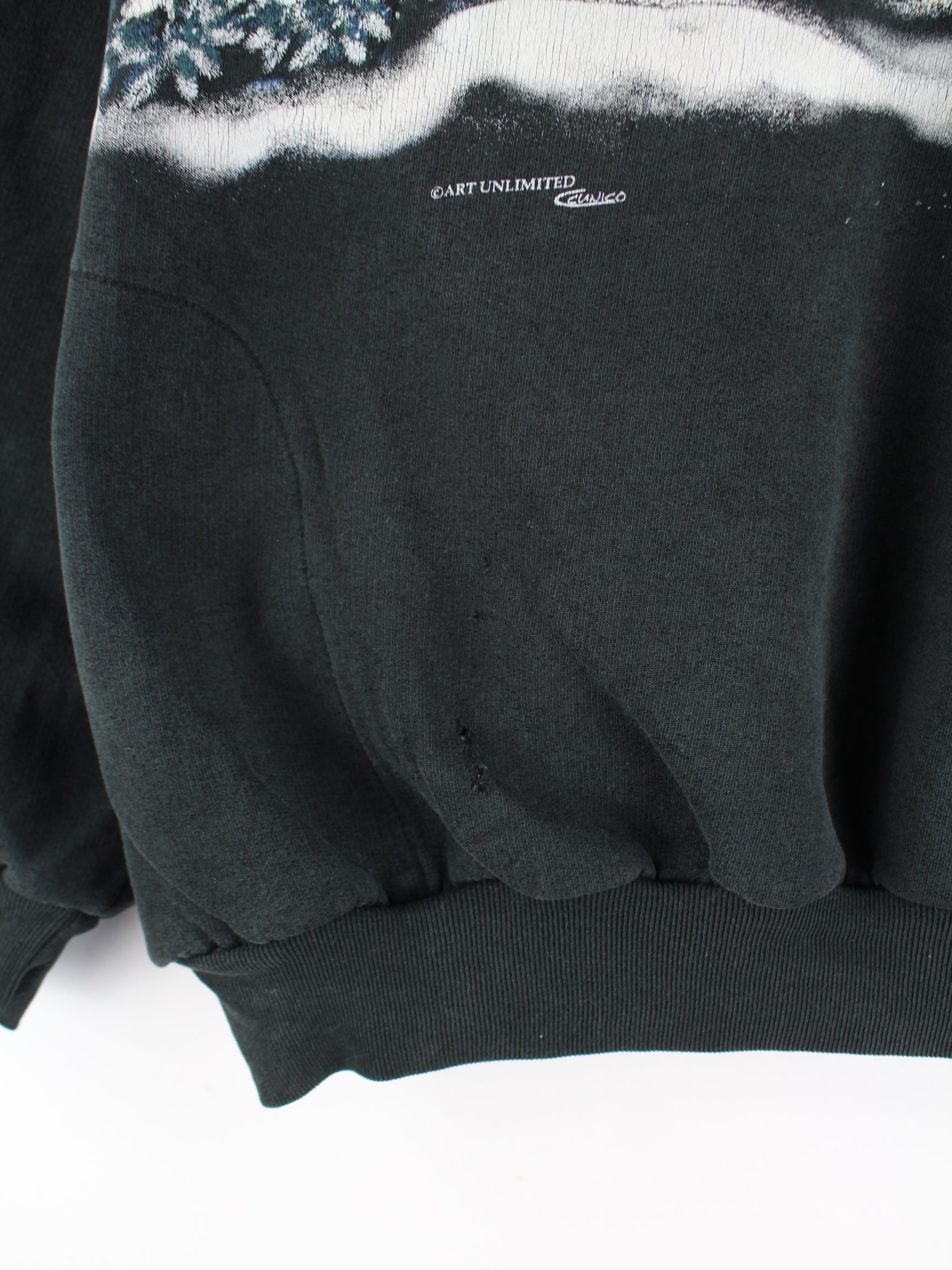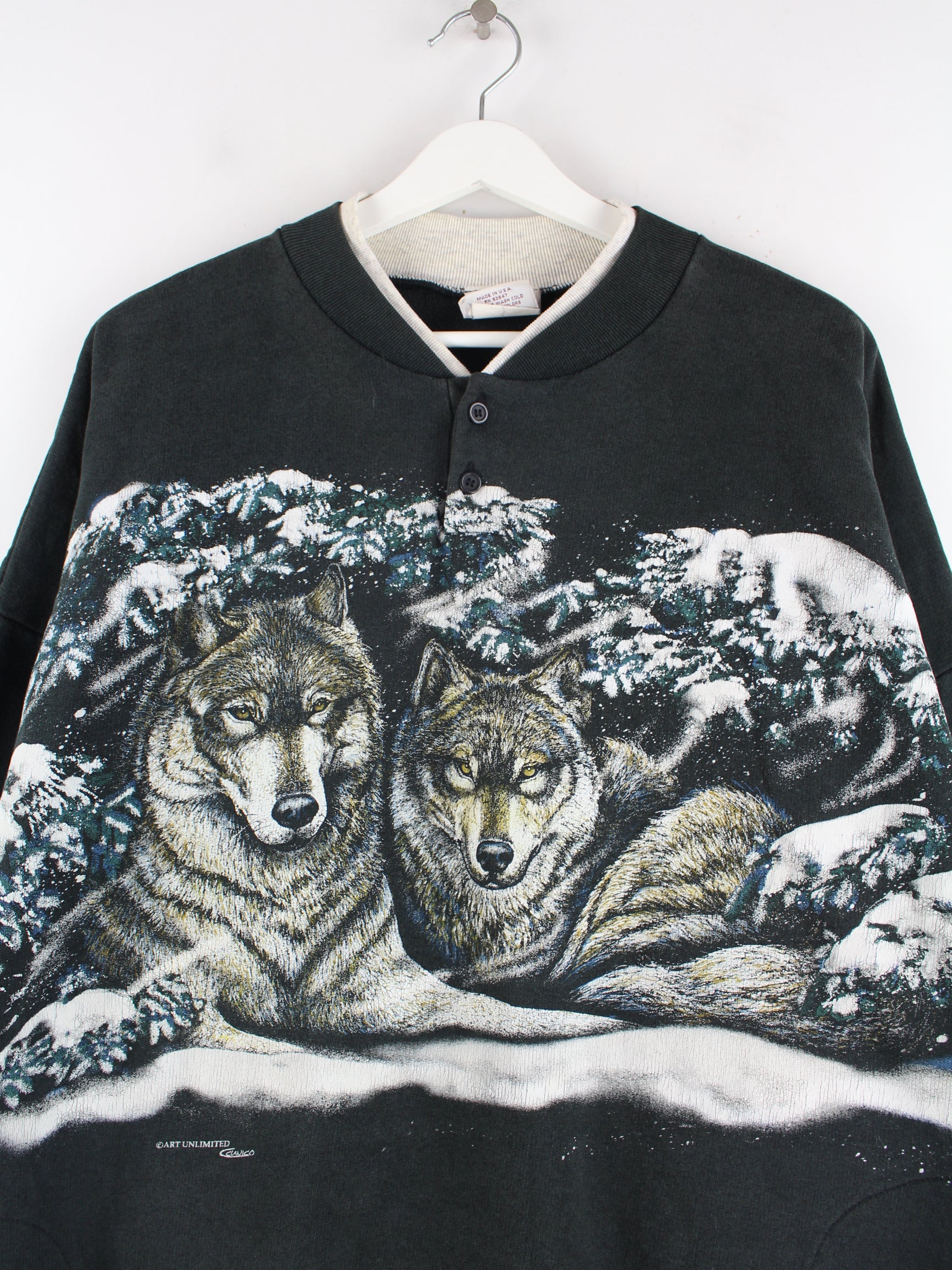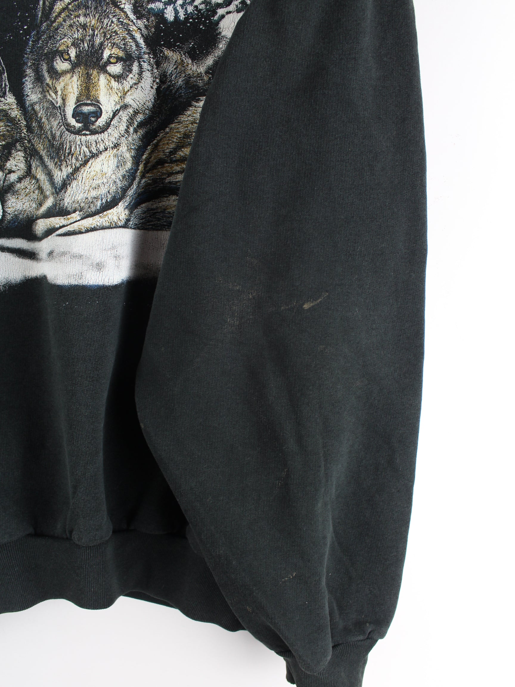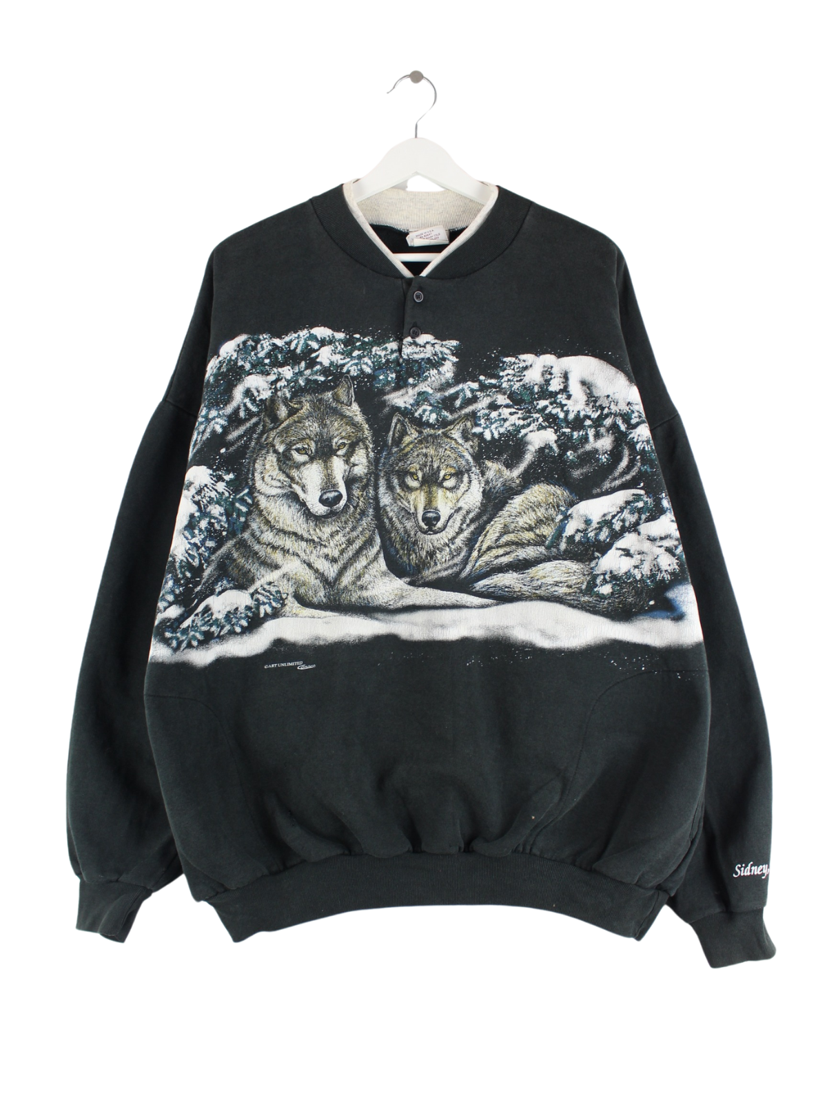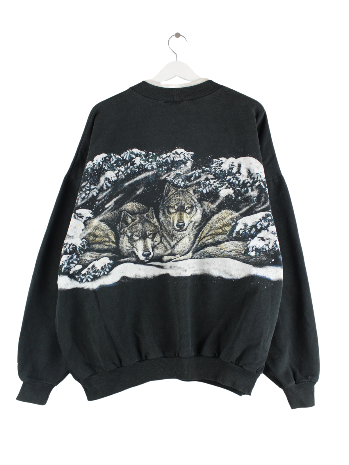Vintage 90s Wolve Animal Print Sweater Schwarz XXL