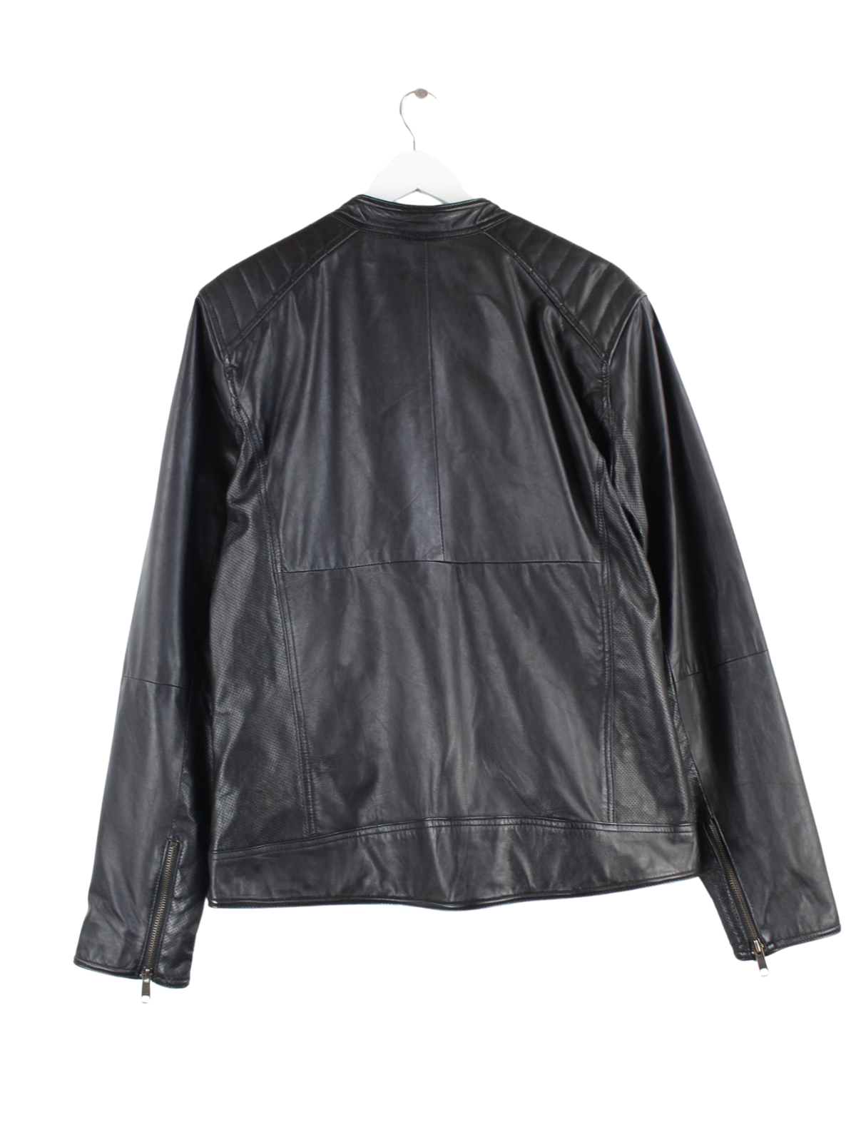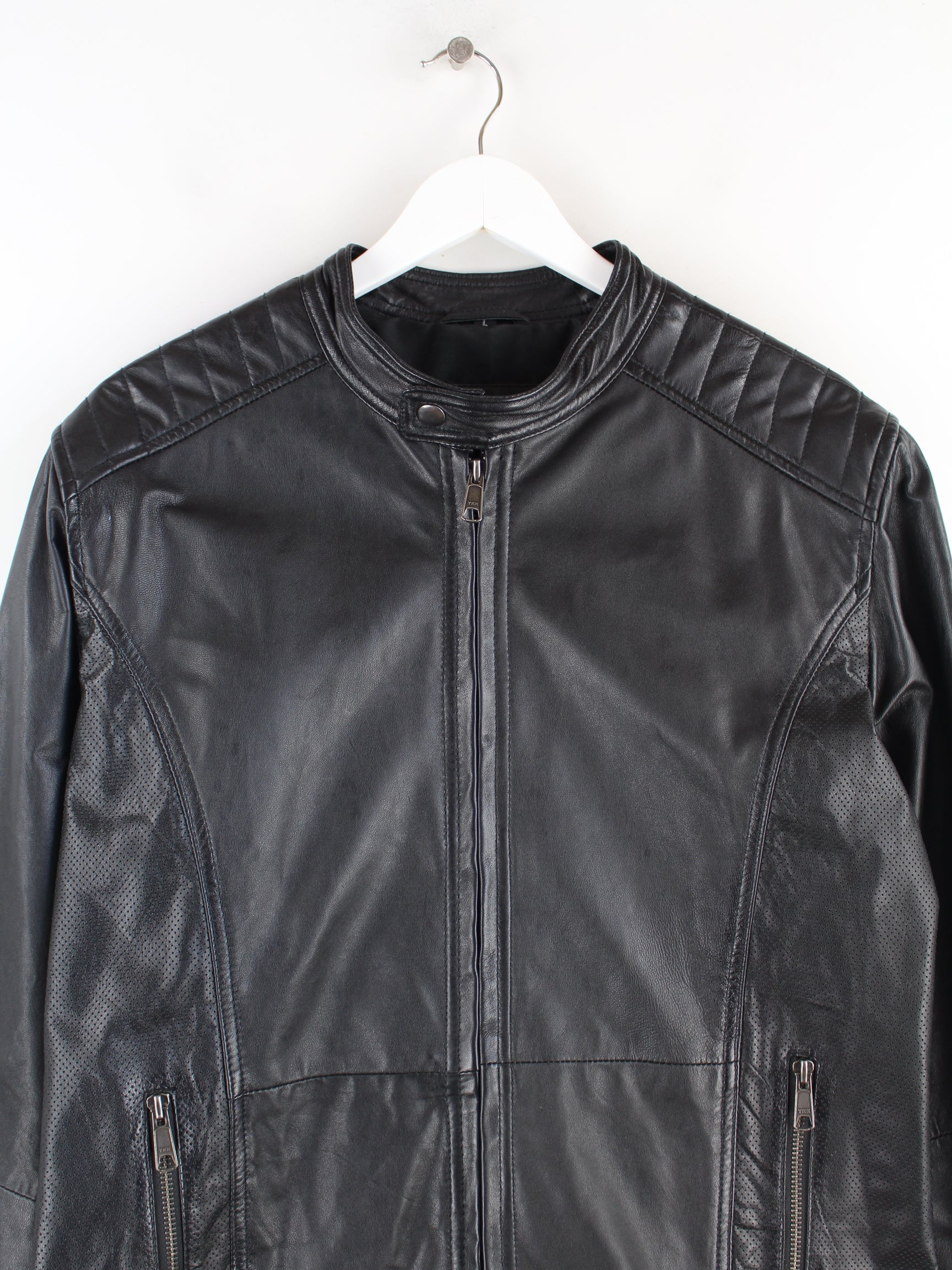 Vintage jacket in size L. It is made of leather and in black in stock.