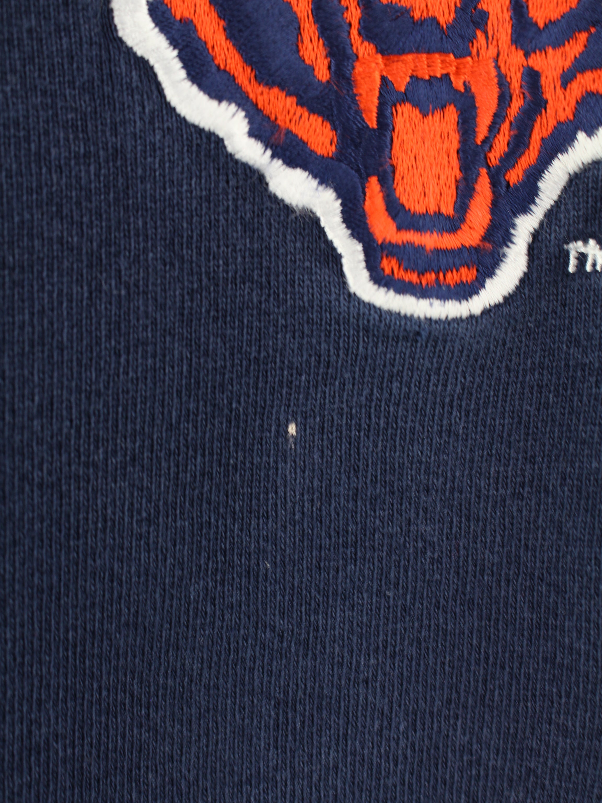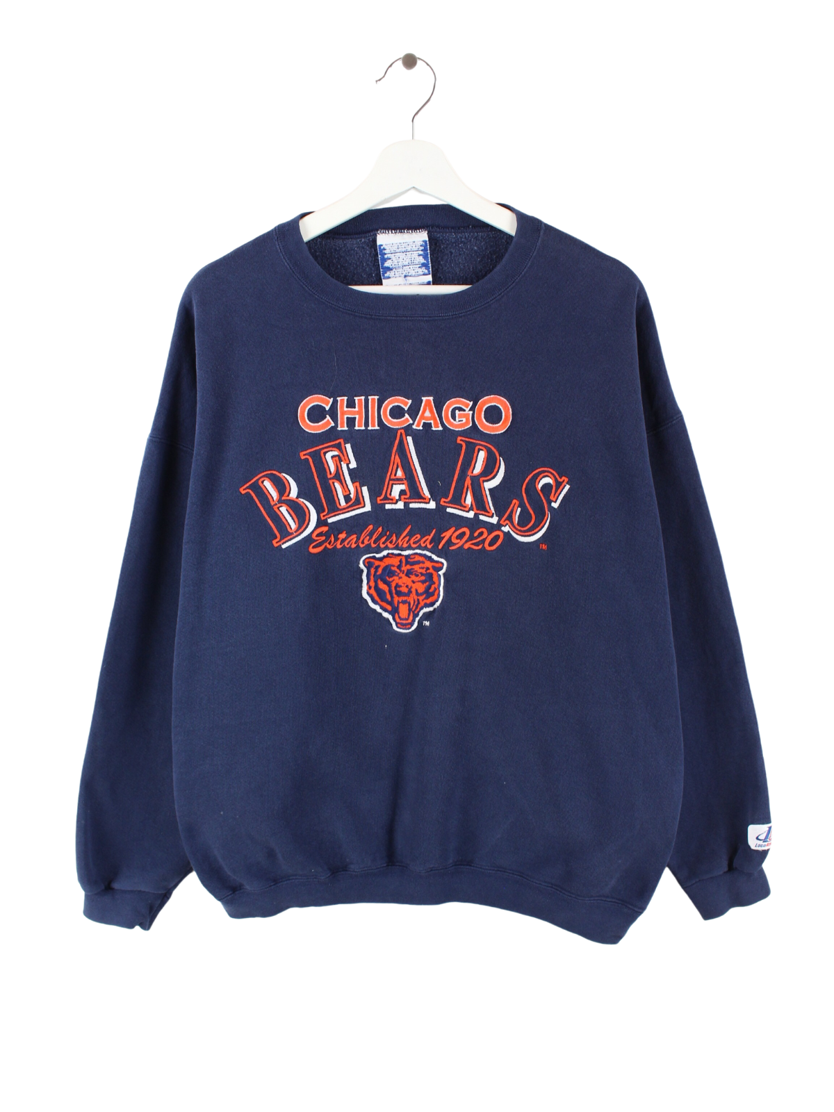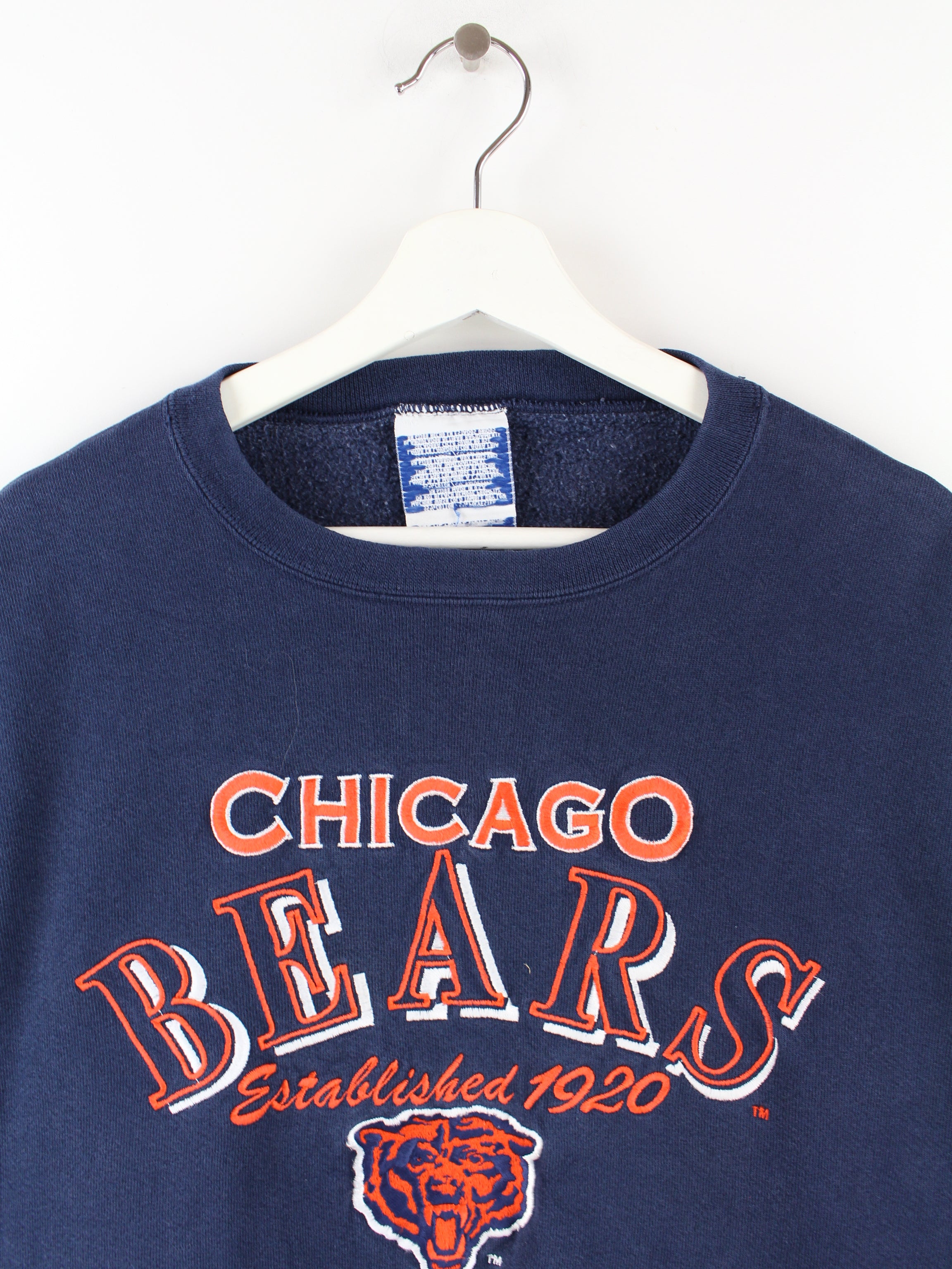 Blue vintage Chicago Bears sweater with large embroidery on the front.