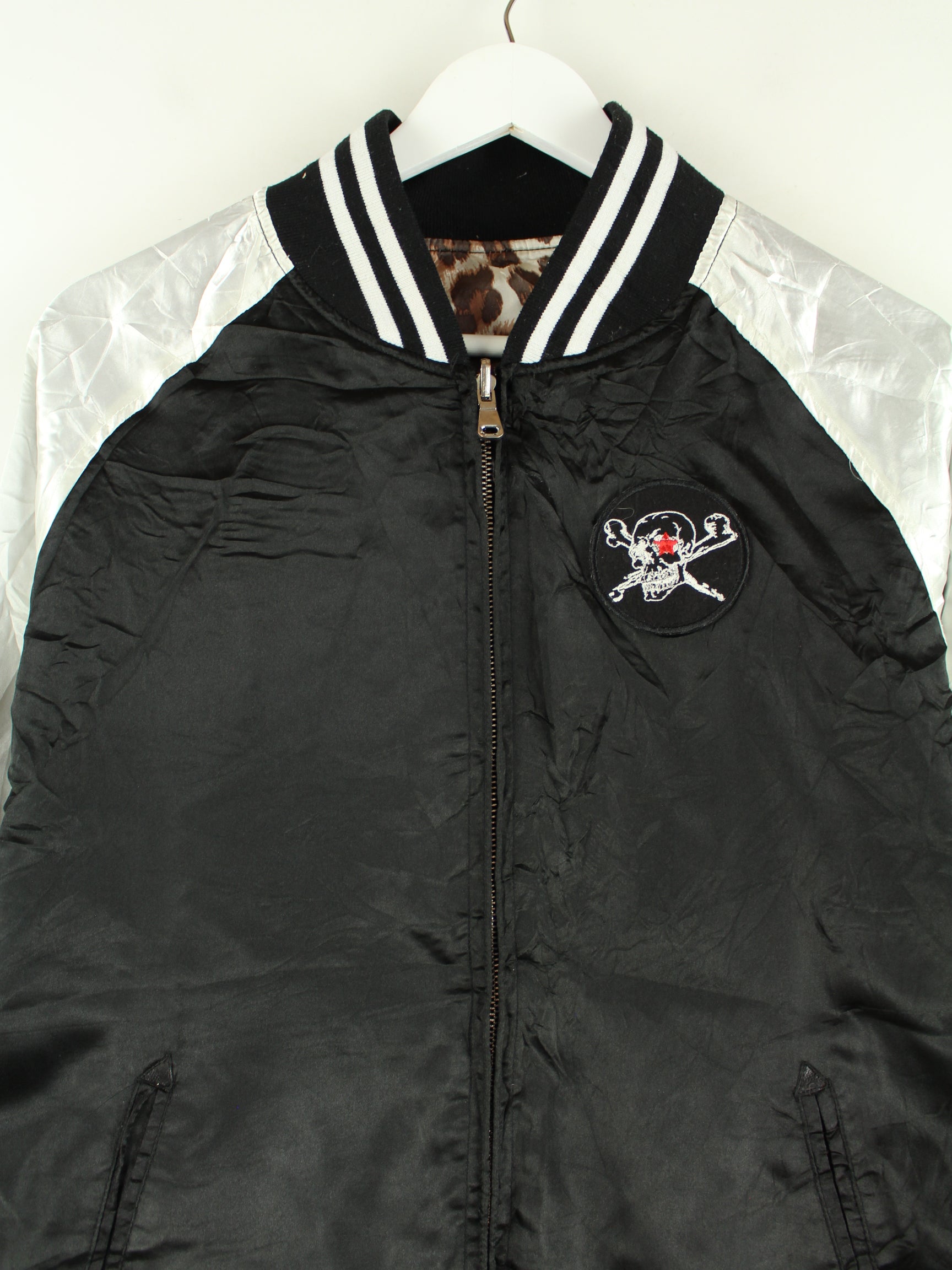 Black vintage lightweight jacket with embroidery in size L. It is made of synthetic material and is in very good condition.